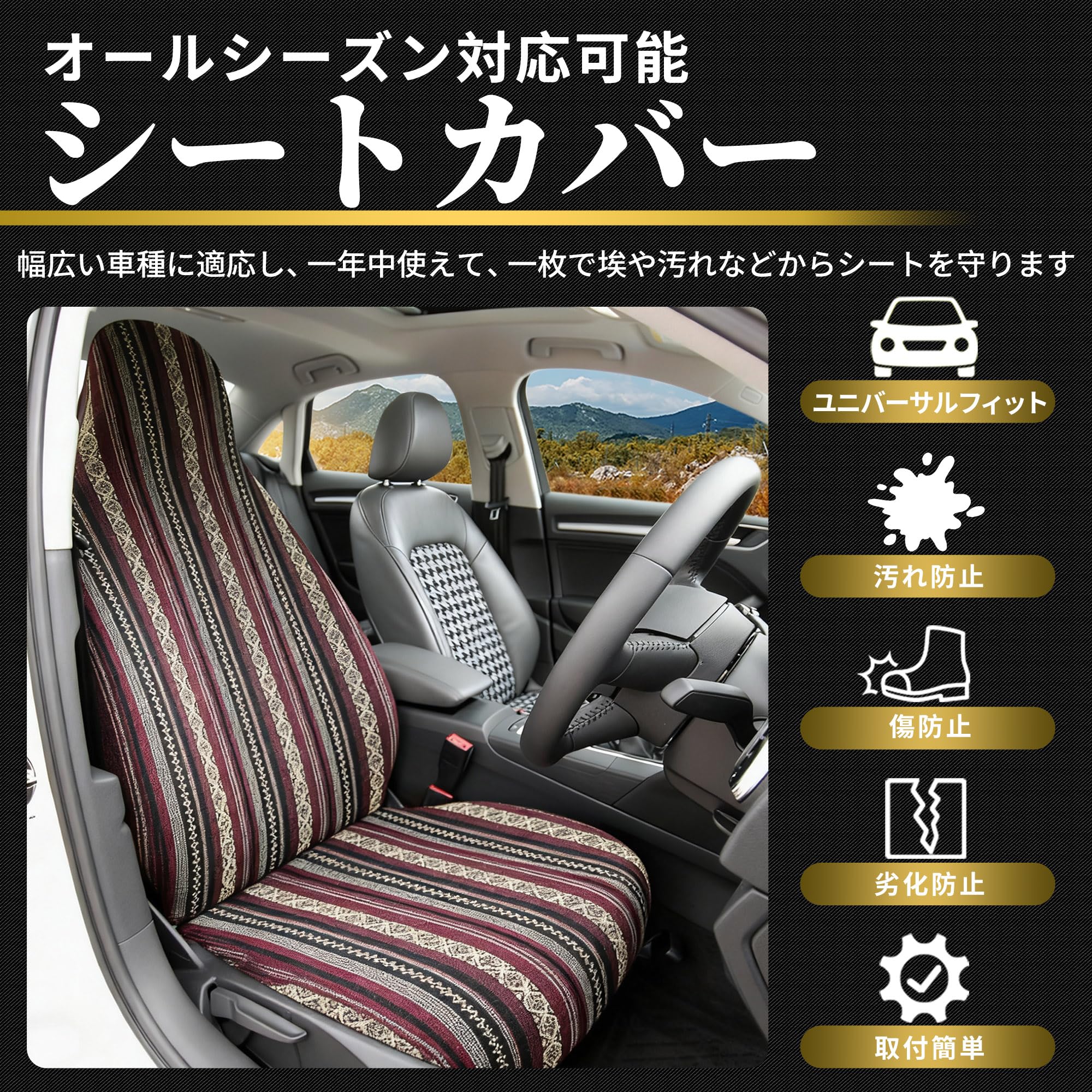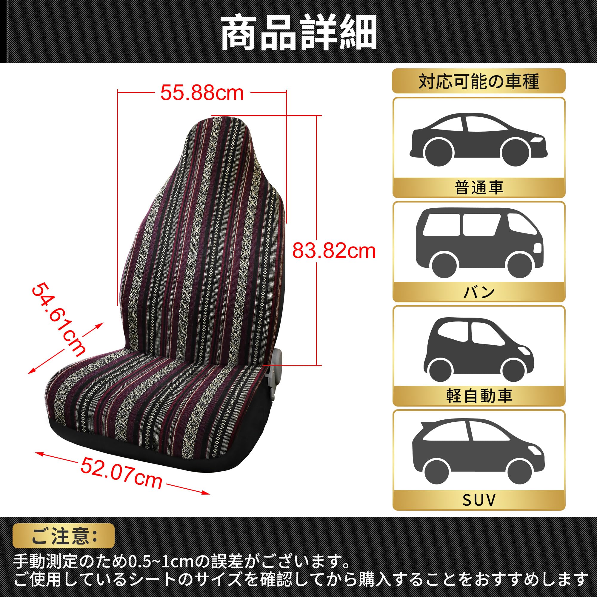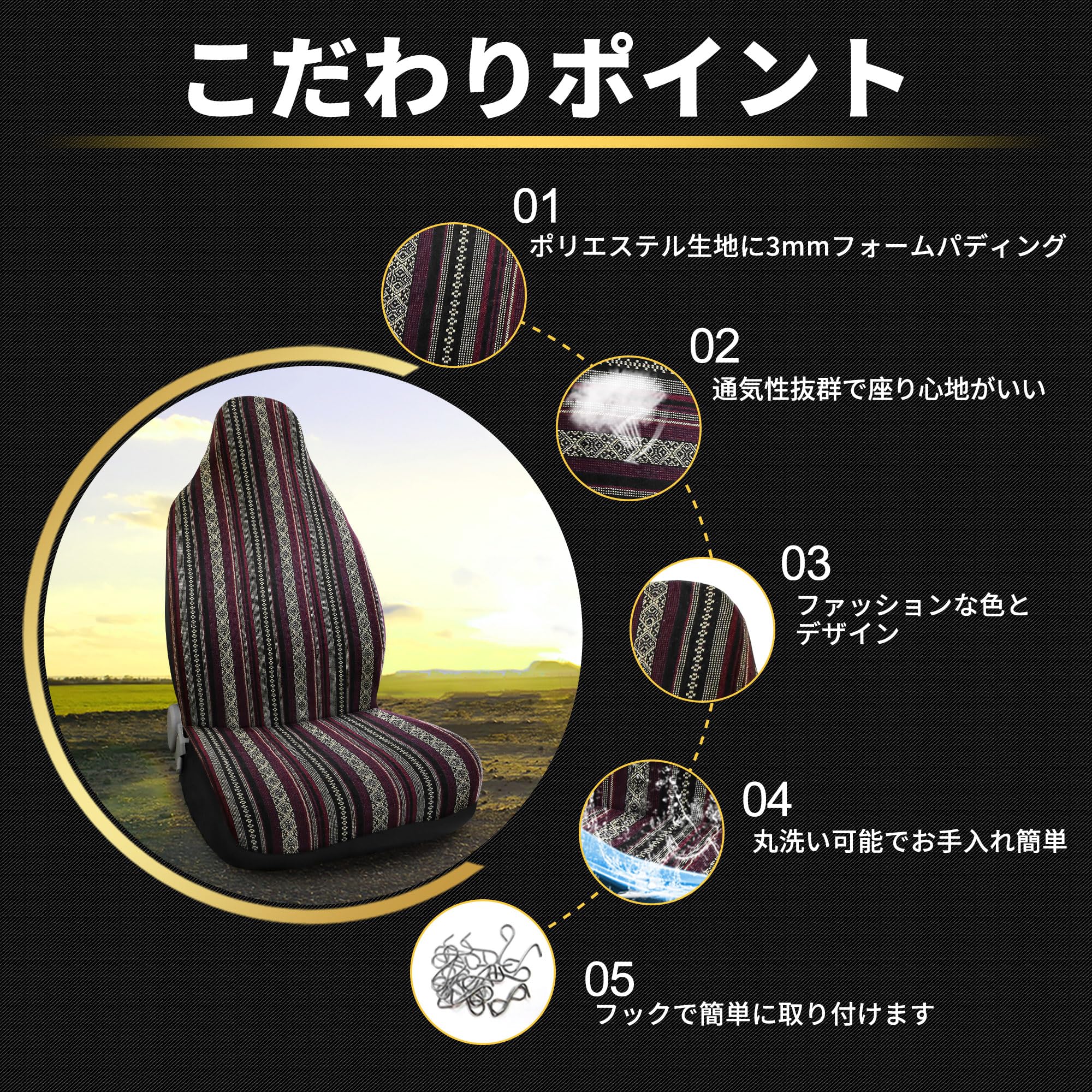 暖かい助言:ご注文の前に車のシートのサイズを確認してください!背もたれカバーサイズ:83 x 55cmクッションカバーサイズ:54 x 52cm製品詳細古典的なデザインの外観と更新された感じは車の座席をより美しくします.ユニバーサルバケットシートカバーはほとんどの座席に適合します.素敵な席を保護したり、古いものを隠すのに役立ちます1個入りにパック、、通気性、洗え、ファッショナブルを販売されます.内蔵または調節可能なヘッドレストでほとんどのシートに適合します.製品説明:ブランケットユニバーサルバケットシートカバーはサウスウエストからインスピレーションを得たデザインと、疲れからシートを保護しながら快適な快適さを提供します.それは伝統的な外観との感じでそれを冷たく保つのに素晴らしい方法です.内蔵または調整可能なヘッドレストでほとんどのシートに適合します.シートカバーはGMCに対応ユーコンおよび起亜セドナに適合しませんフィッティング指示:1、シートの上にシートカバーを引っ張り、調整して滑らかにします.2、フラップをカーシートの隙間にしっかりと引っ張ります.3、シートカバーの底をシートの底に引っ張ります.4、カーシートの底にフック付きの弾性ストラップを取り付け、スムーズにフィットさせます.パッケージに含まれるもの:シートカバー(一部の取り付けフック) 1個入り