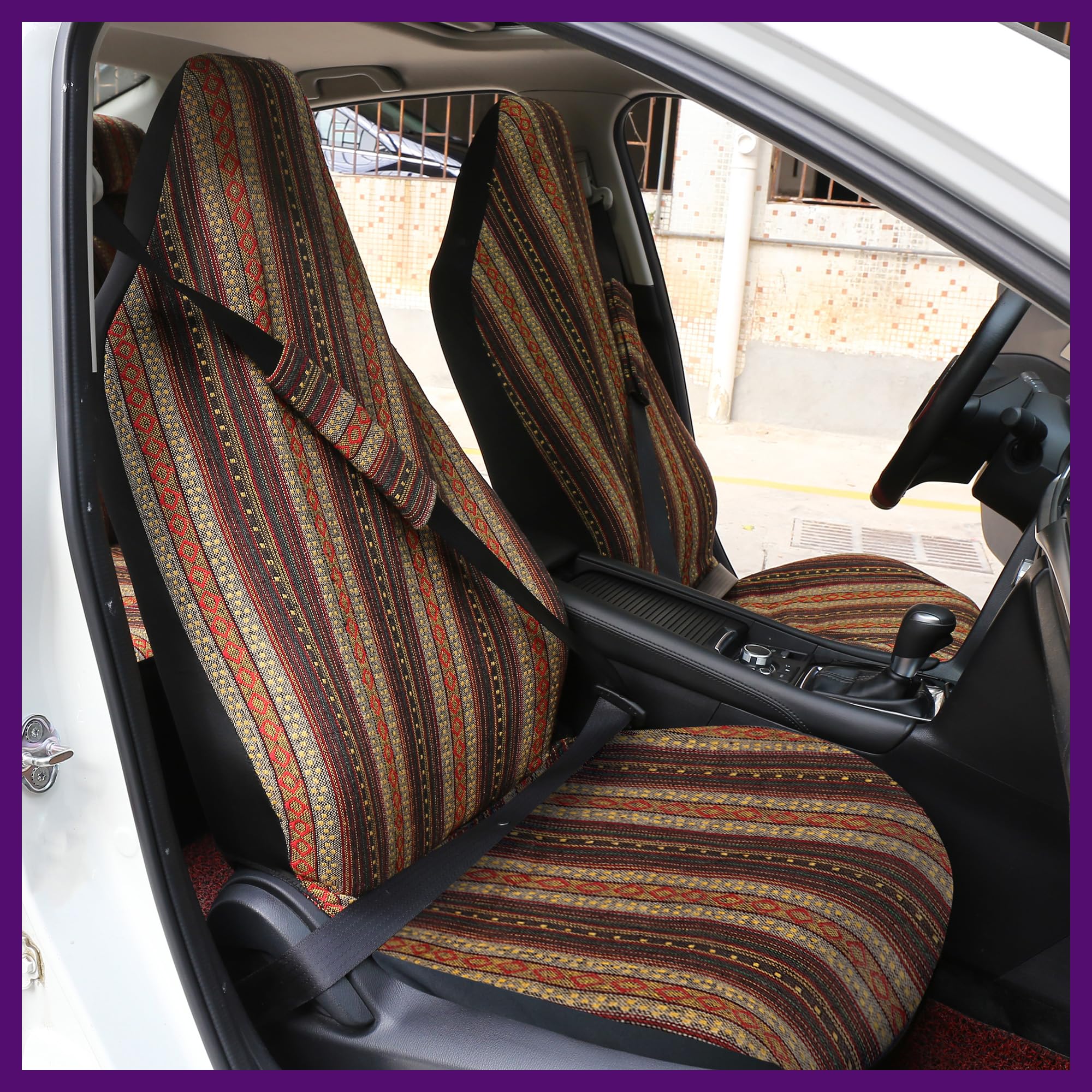 uxcell シートカバー 車 ハイエース 運転席 汎用 フロントシートカバー 民族風 ブランケット 耐久性 シートカバー保護 ホワイト 5個入り