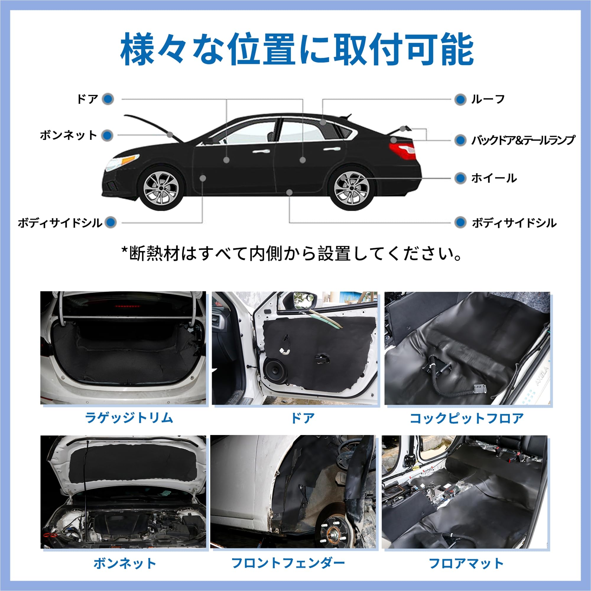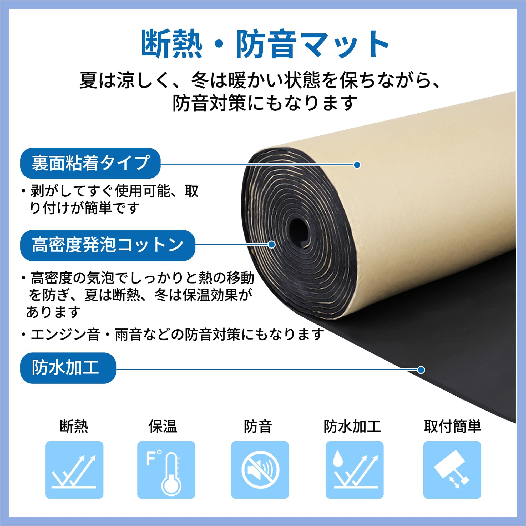 FUELHOOD 断熱マット 厚さ5mm 200x100cm 車用断熱マット 吸音マット 防音フォーム 断熱材 断熱シート デッドニング 遮音防音材料 内装パーツ アクセサリー