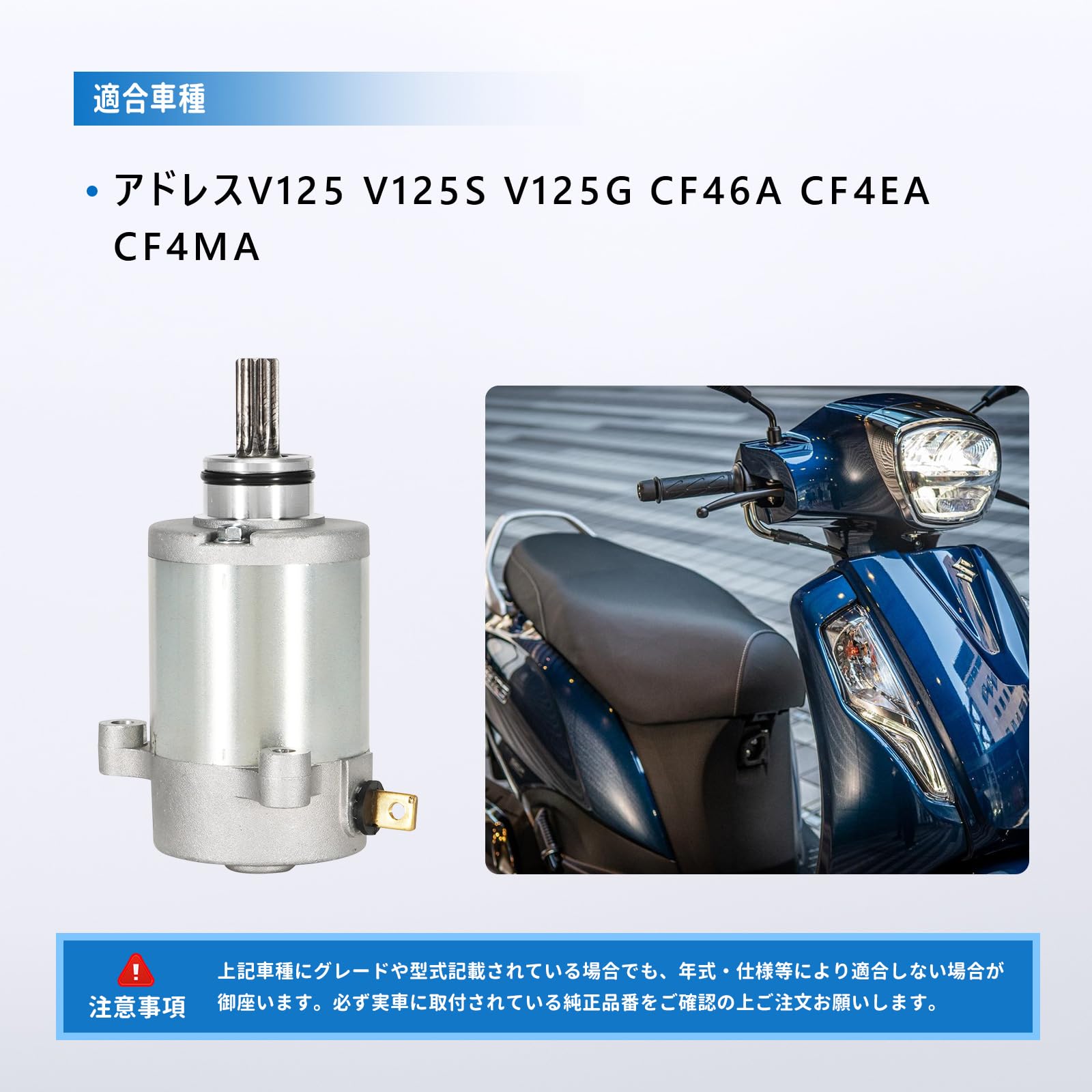 セルモーター アドレス V125 V125S V125G CF46A CF4EA CF4MA 交換 エンジン始動用 スズキ用 耐久性 エンジンパーツ