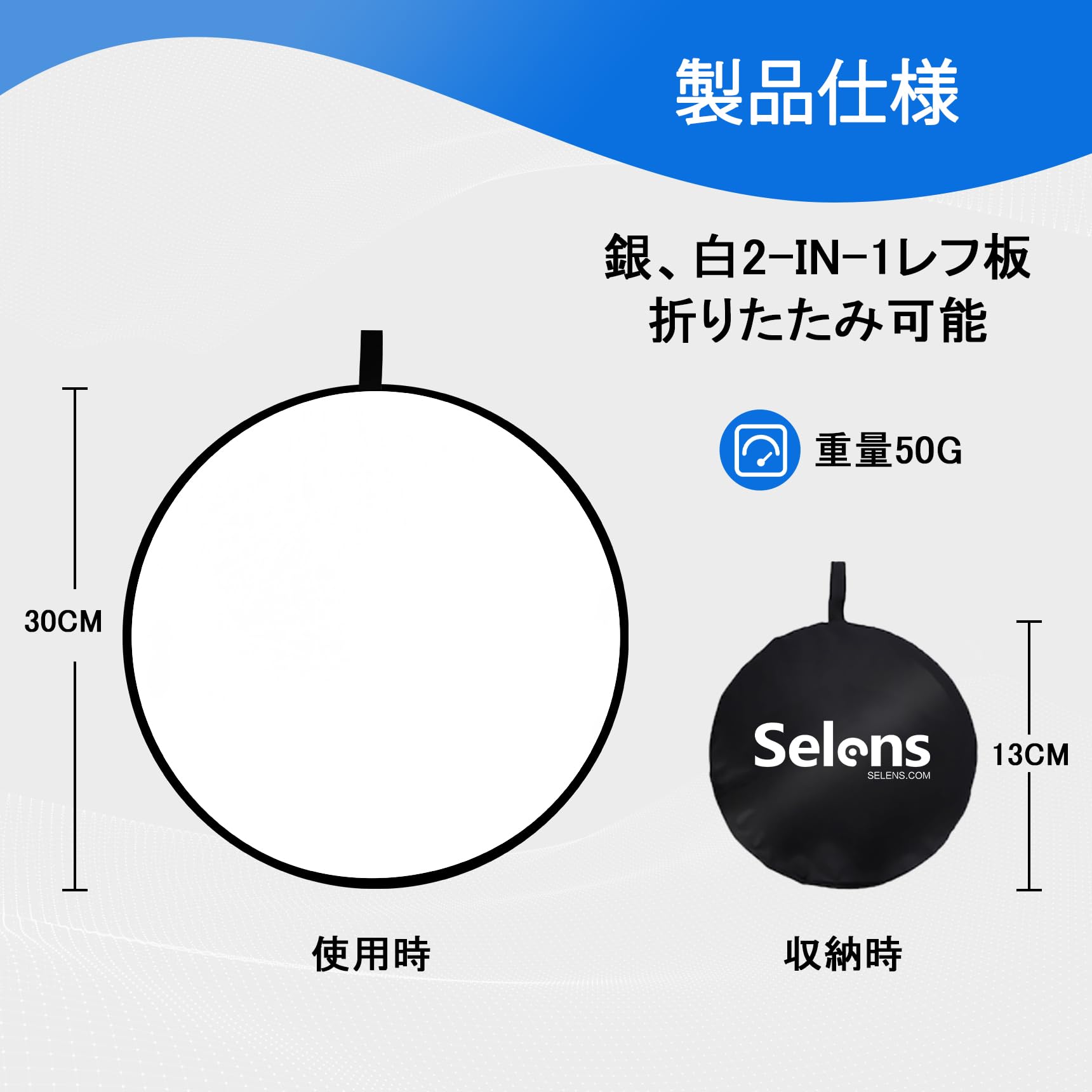Selens 5-IN-1撮影用 楕円レフ板 100x150cm スポンジハンドル付き スタジオレフ板 折りたたみ可能 (1枚で5色対応-金/銀/白/黒/半透明)