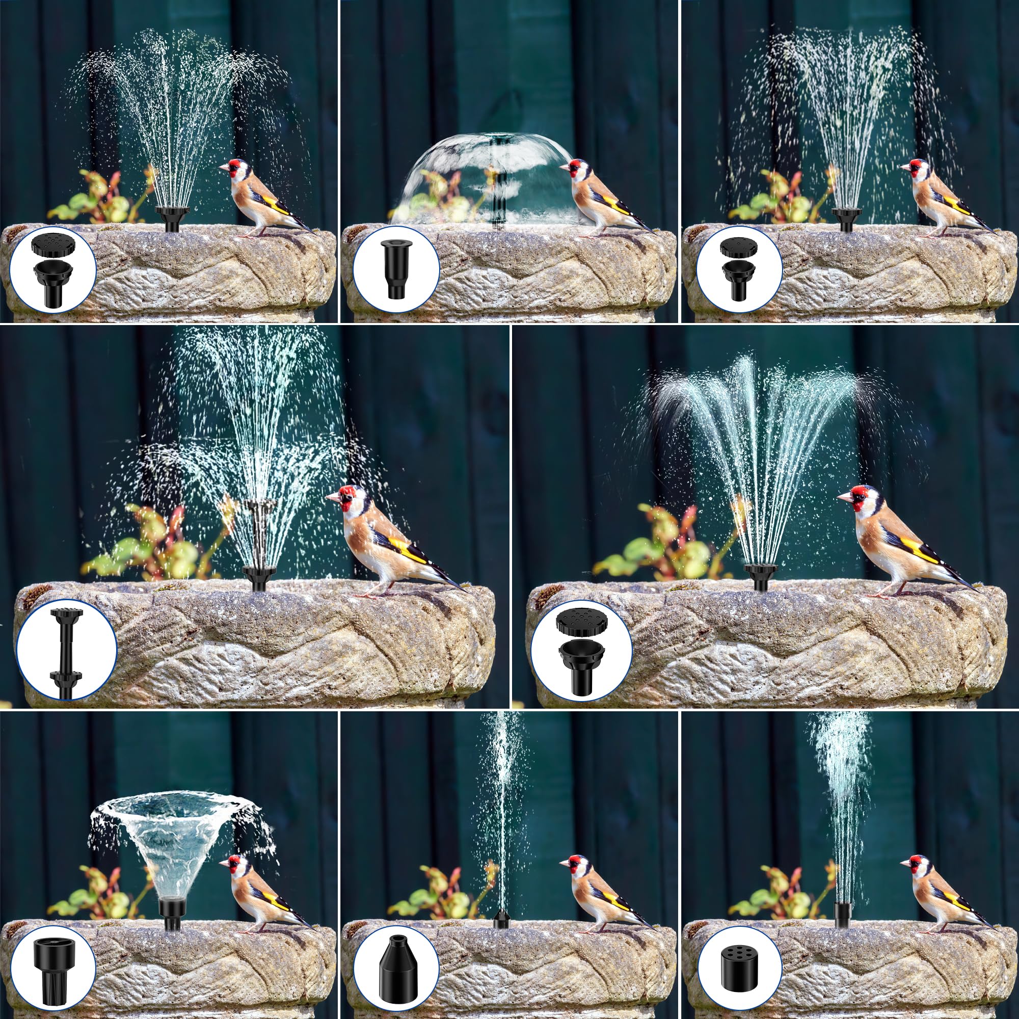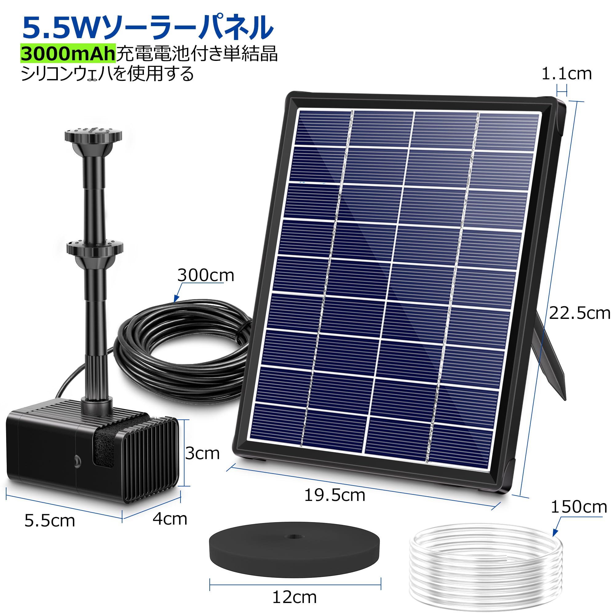NFESOLAR ソーラーポンプ 5.5W 大容量3000mAh蓄電式 浮き型ソーラー噴水ポンプ 8種ノズル付 自動水位保護機能 ビオトープ/池/バードバス/庭園用 太陽光発電 水循環 酸素供給