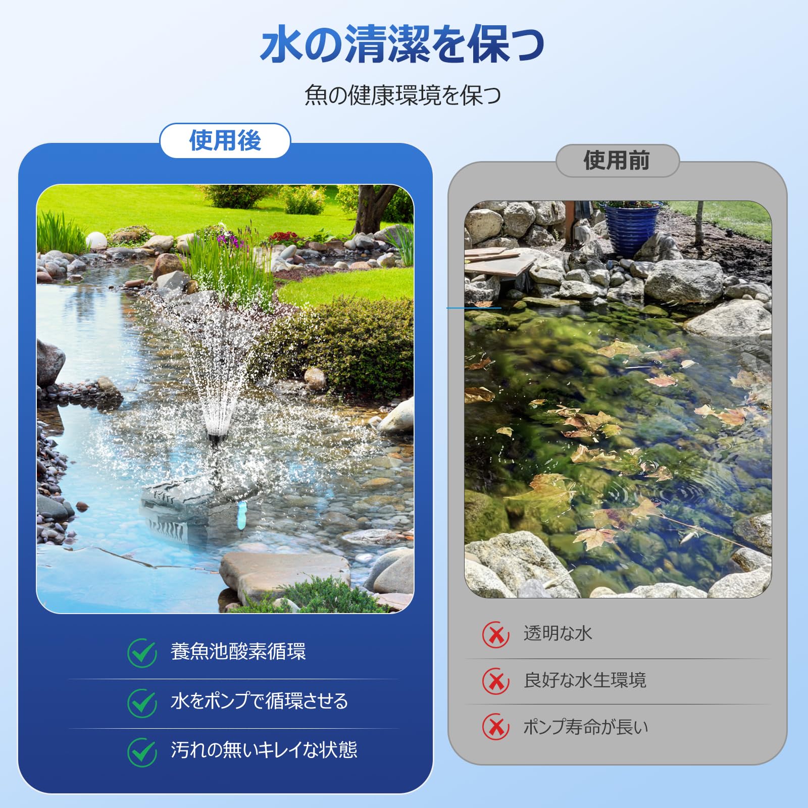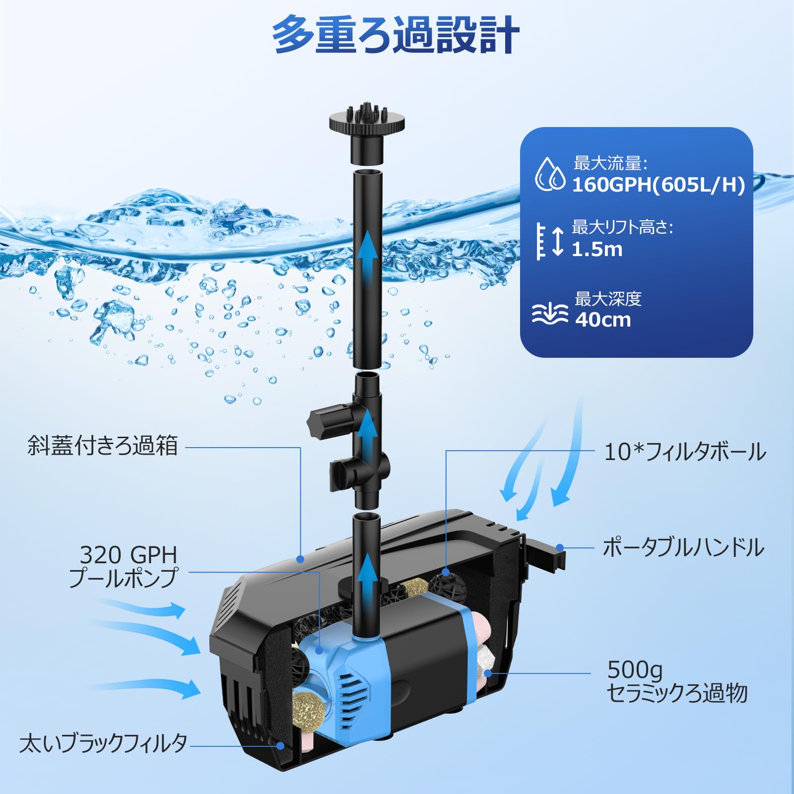 NFESOLAR 水中ポンプ 噴水ポンプ 排水ポンプ 660GPH フィルター 40W池ポンプと噴水キット 付き 酸素供給 水循環 夜間使用不可 ビオトープ プール 池 バードバス 庭の装飾 ガーデン用