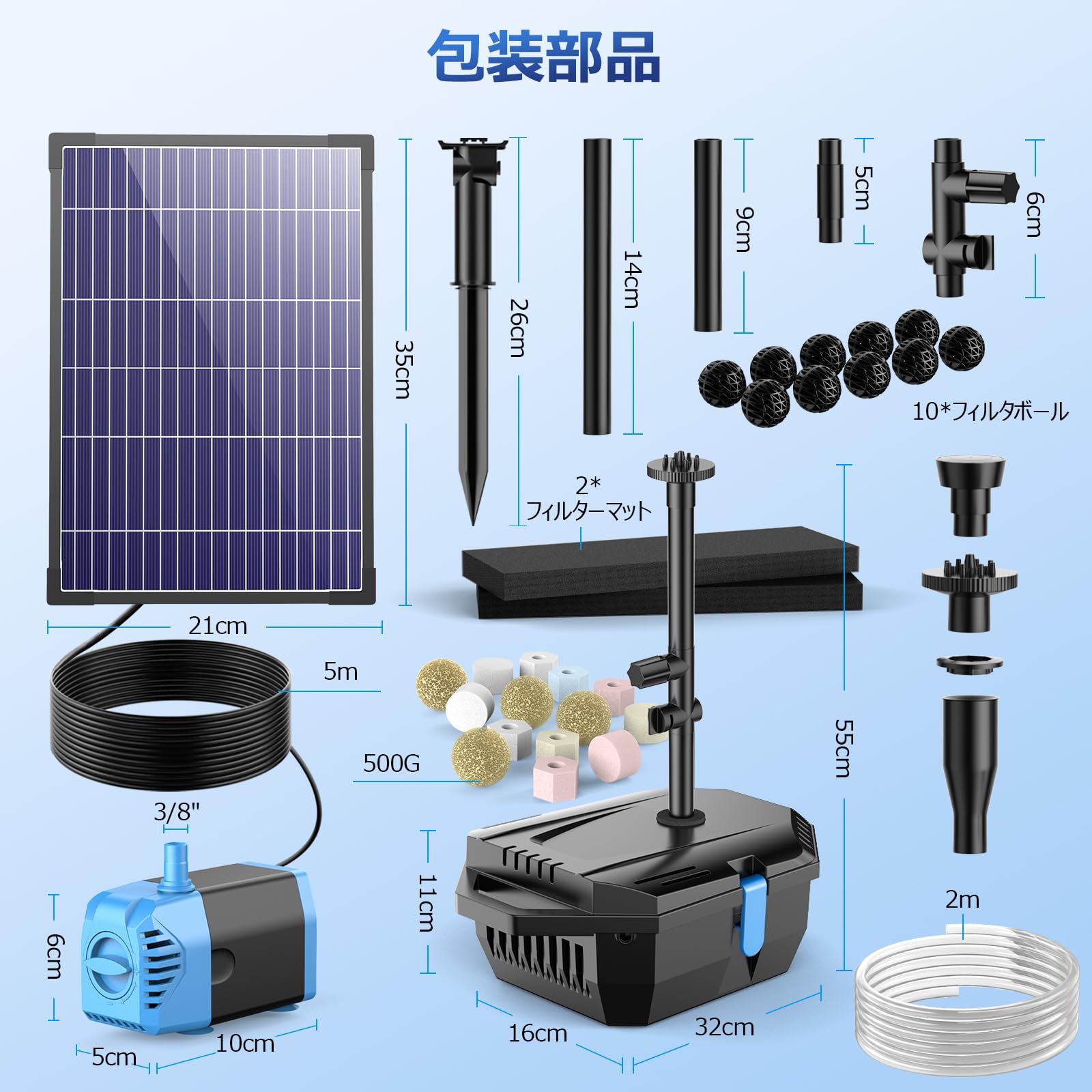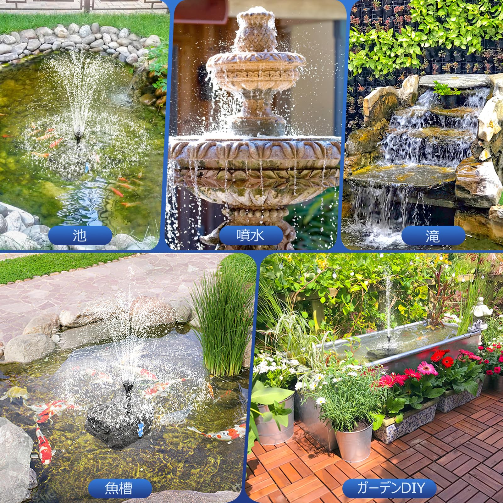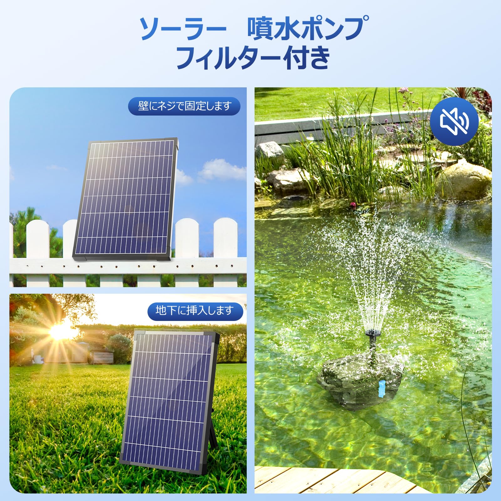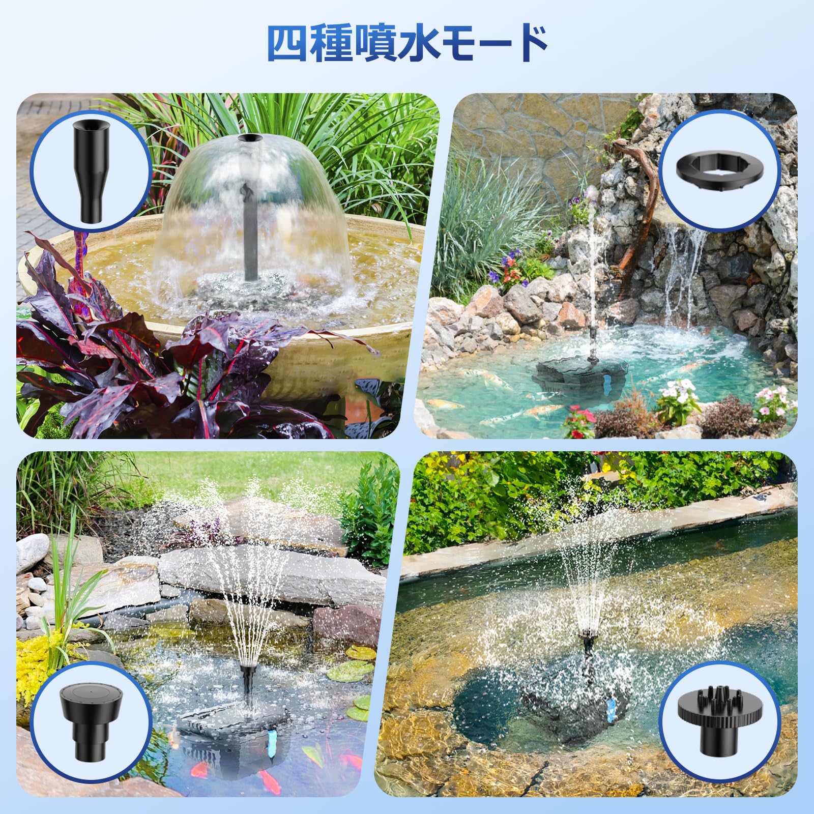 Biling ソーラー噴水ポンプ 屋外 8W 太陽光発電 3000mAh内蔵電池 酸素供給 水循環 8種類ノズル付き 電気代0円 池 ビオトープ プール バードバス 水耕栽培 庭園装飾用