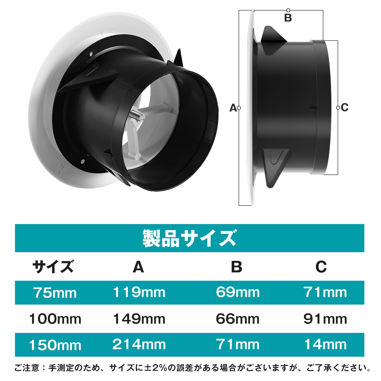 Okryain 換気口 換気口カバー 通気口 回り回転調整 吸気口 ダクト用換気口 屋内換気口 換気部品 自然換気用 ダクトホース/換気ホース/エアコンホース接続用 150mm