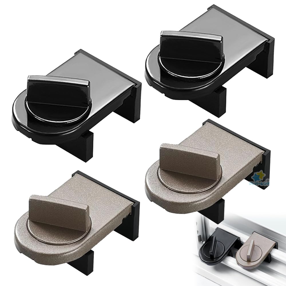 窓 防犯 補助錠 サッシ ストッパー 4個入 侵入防止 空き巣対策 子供 ペット 安全 賃貸 穴あけ不要 鍵不要 引き戸 ベランダ (ブラック+ブラウン)