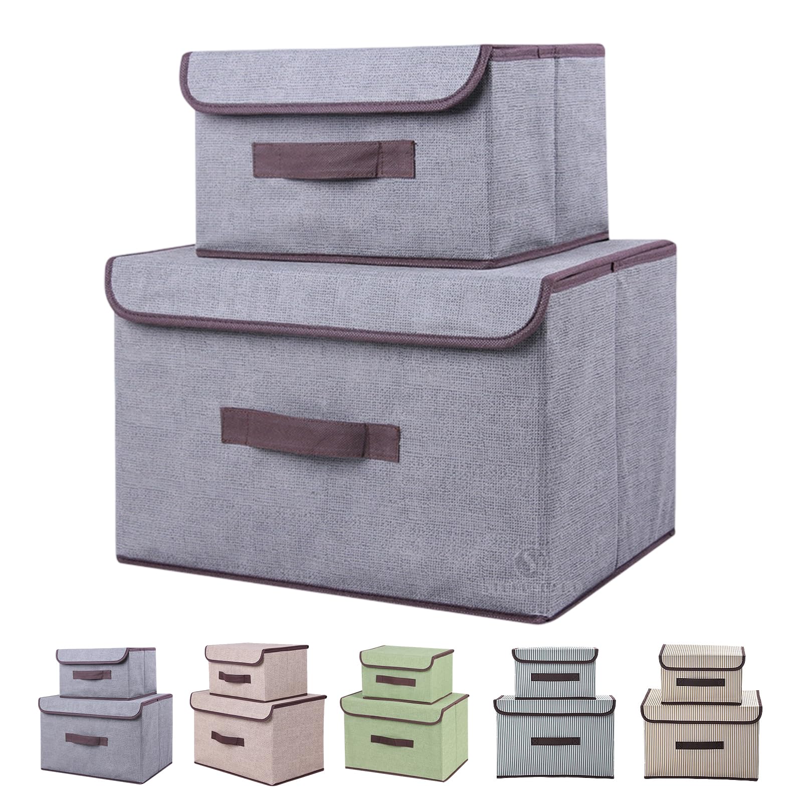 フタ付き 収納ボックス 蓋付き 折り畳み 布製 大容量 持ち運び 防塵通気性 耐久 省スペース 多用途収納 現代風 おしゃれ 36*23*24cm/25*19*16cm(グレー) [並行輸入品]