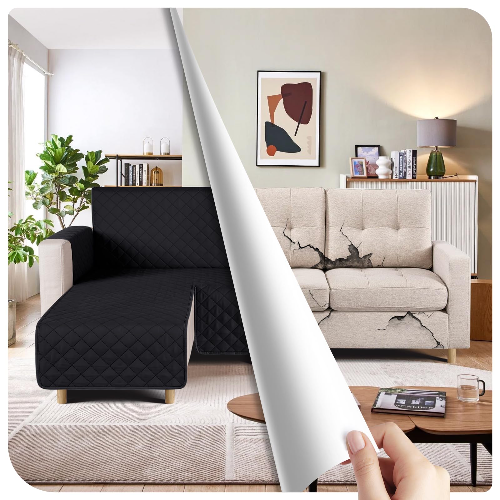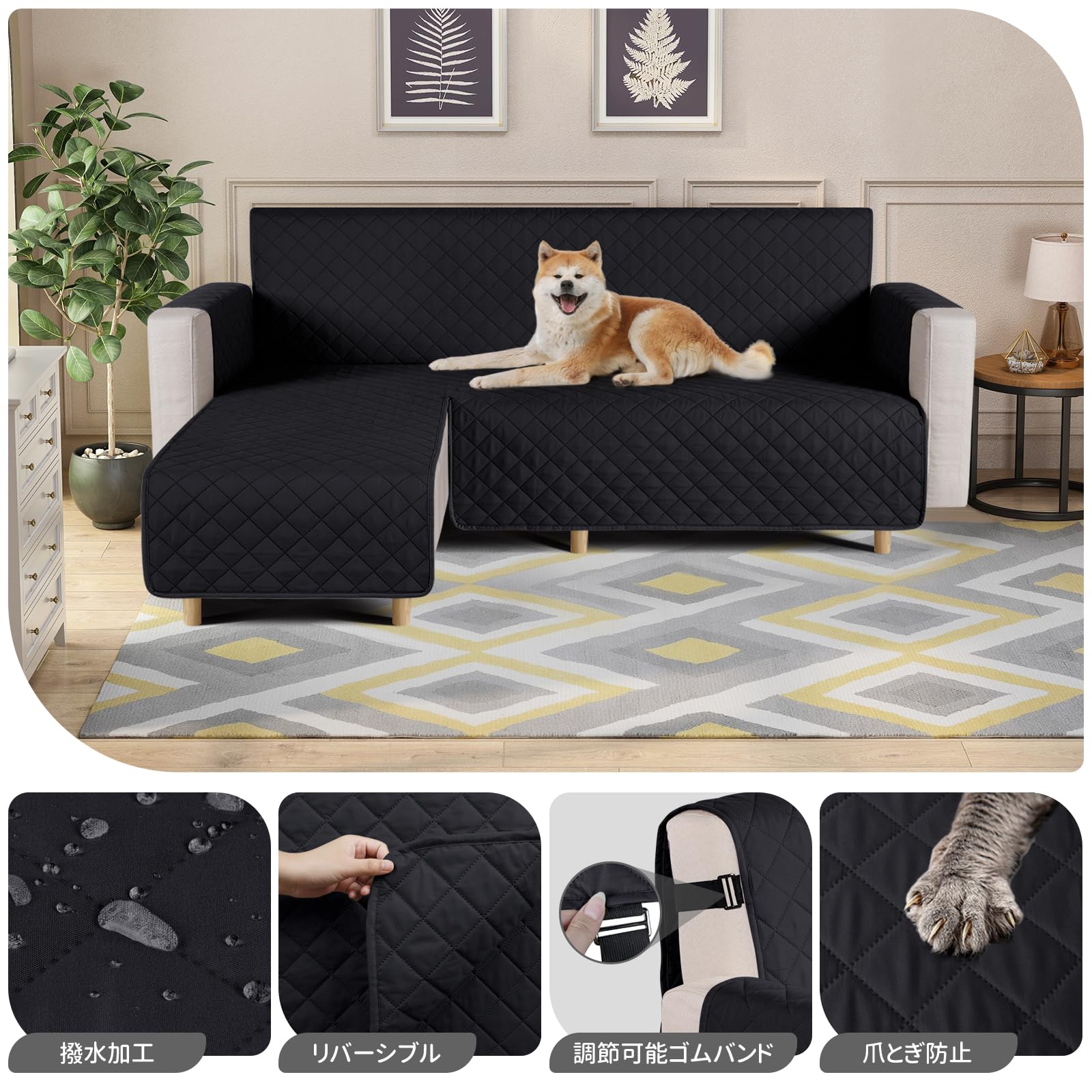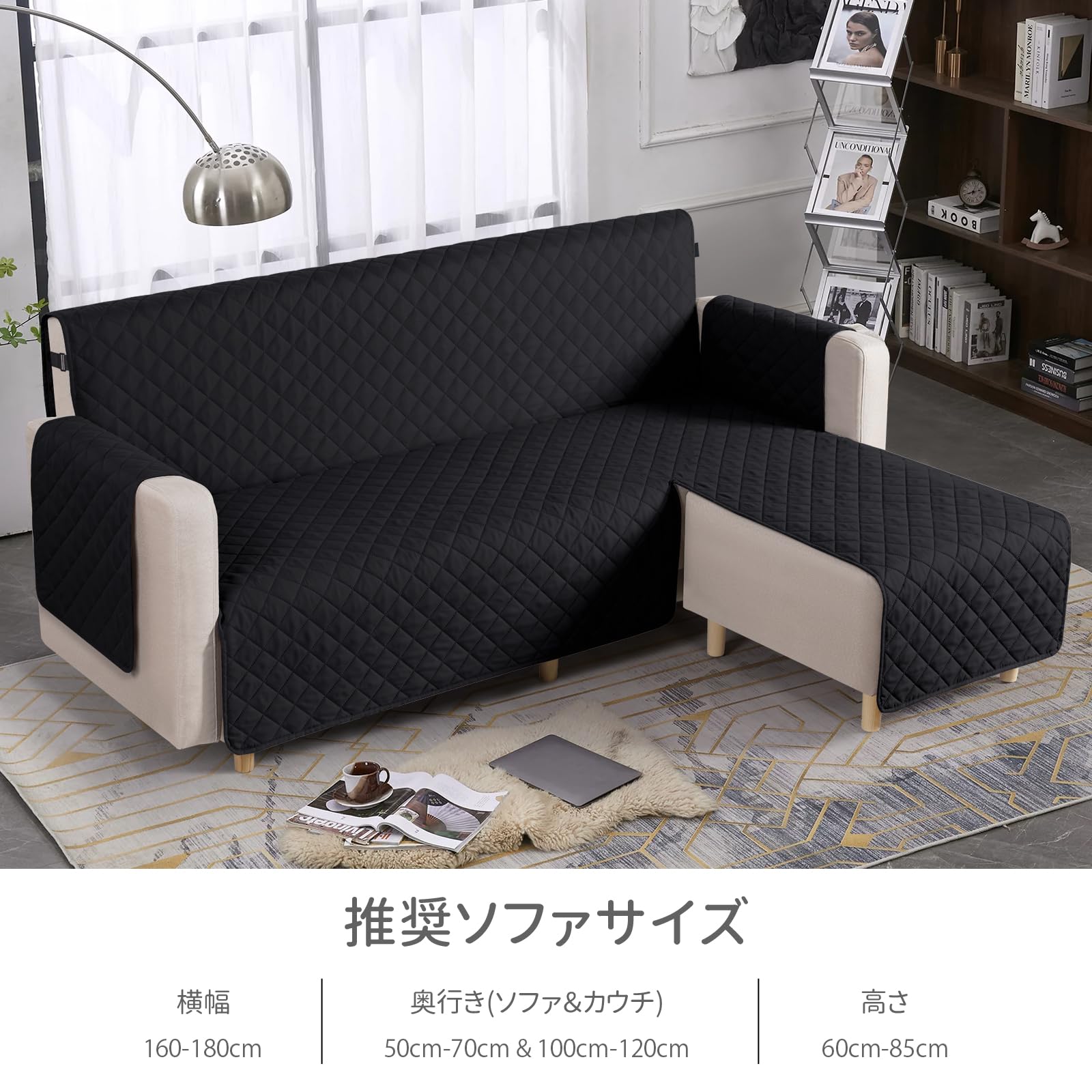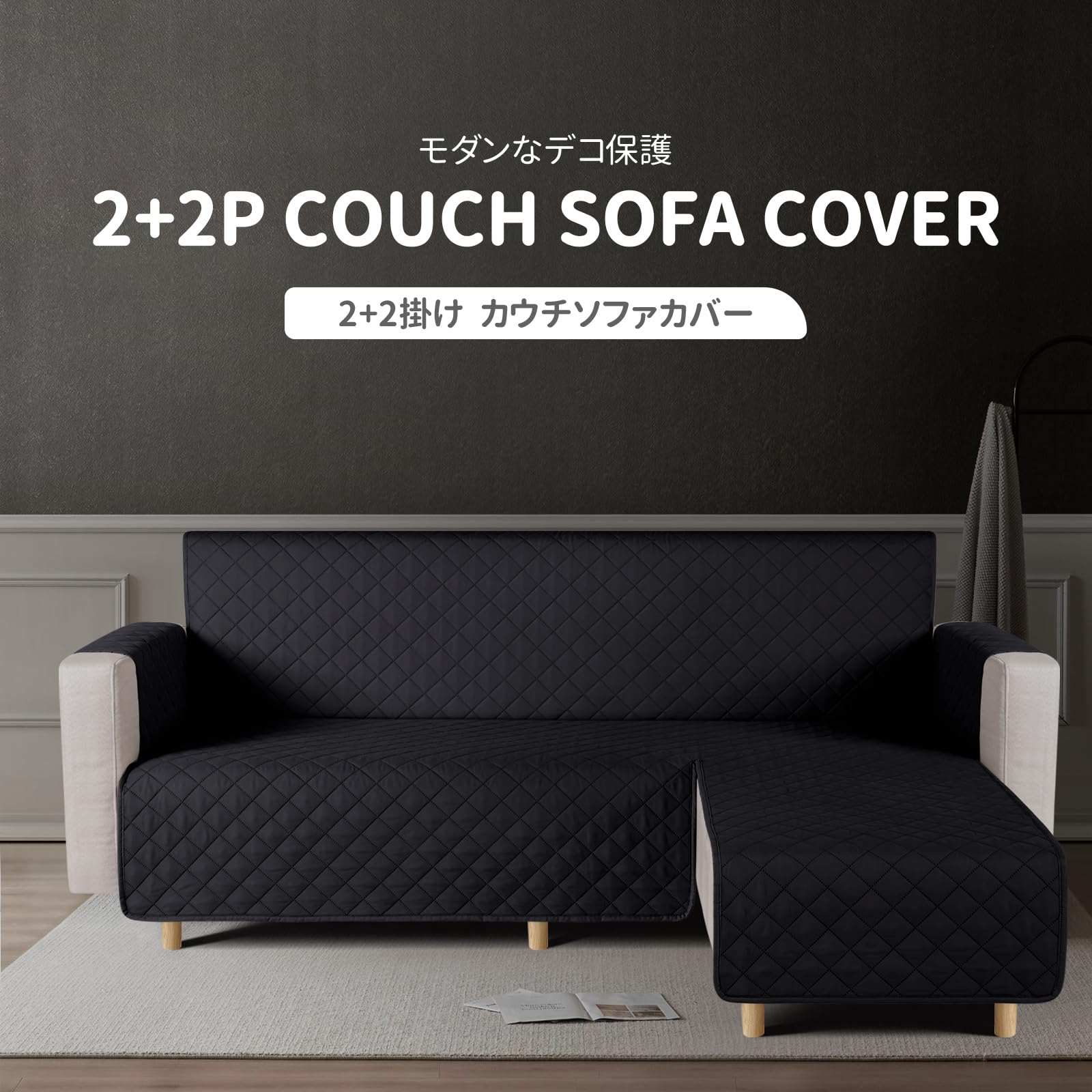 TAOCOCO 防水 カウチソファカバー フロアソファカバー コーナーソファカバー ソファーベッドカバー オットマンカバー コンパクト L字 肘付き 2人3人掛け 犬猫対策 毛髪不粘着 滑り止め 替えソファカバー 防塵 汚れ防止 傷防止 爪とぎ防止 おしゃれ ソファーカバー インテリア マルチカバー 四季適用 撥水加工 丸洗い可能 (ブラック色, 2+2人掛け)