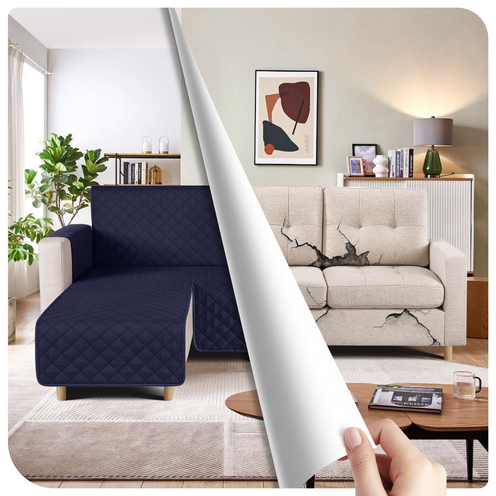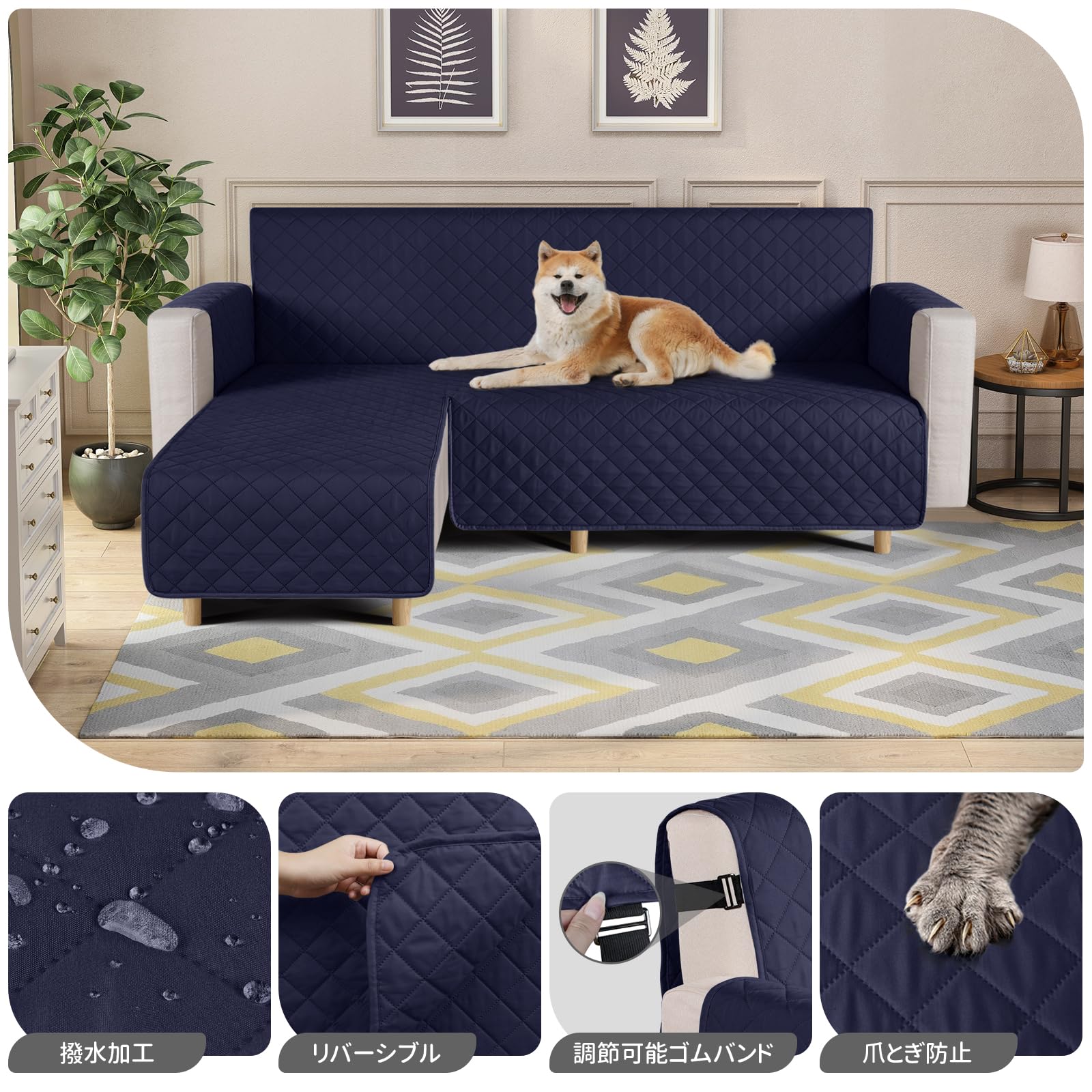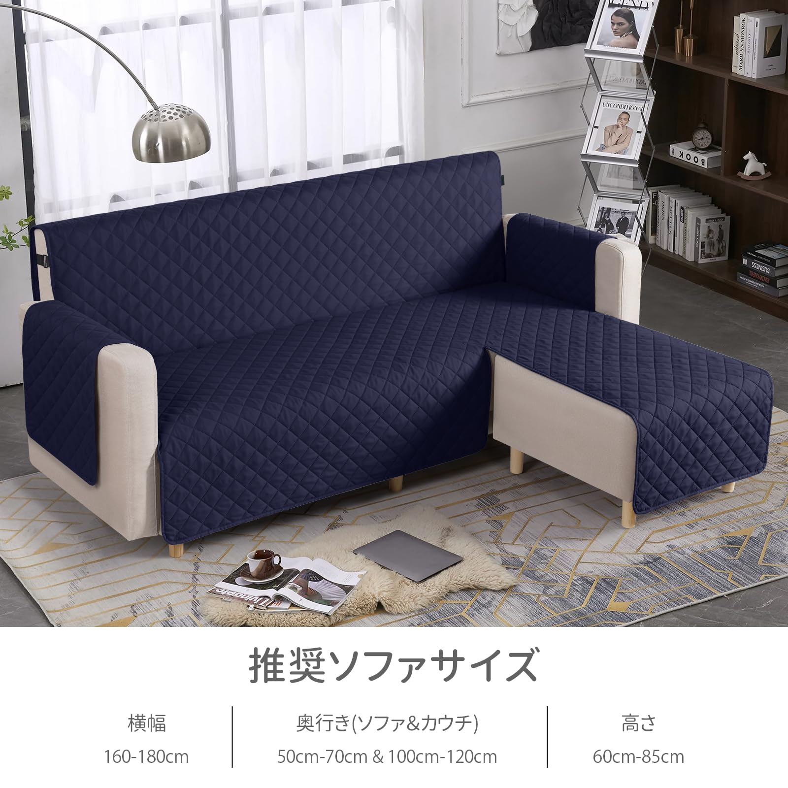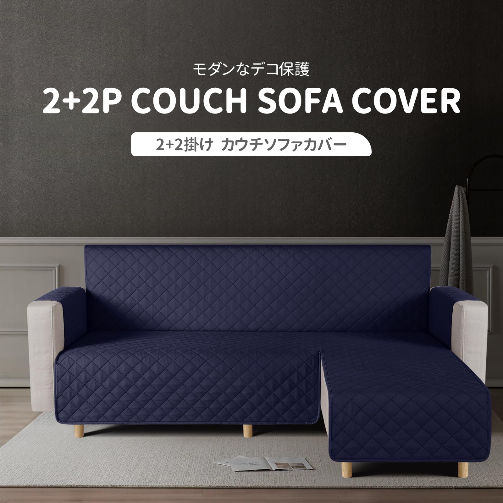 TAOCOCO 防水 カウチソファカバー フロアソファカバー コーナーソファカバー ソファーベッドカバー オットマンカバー コンパクト L字 肘付き 2人3人掛け 犬猫対策 毛髪不粘着 滑り止め 替えソファカバー 防塵 汚れ防止 傷防止 爪とぎ防止 おしゃれ ソファーカバー インテリア マルチカバー 四季適用 撥水加工 丸洗い可能 (ダークブルー色, 2+2人掛け)