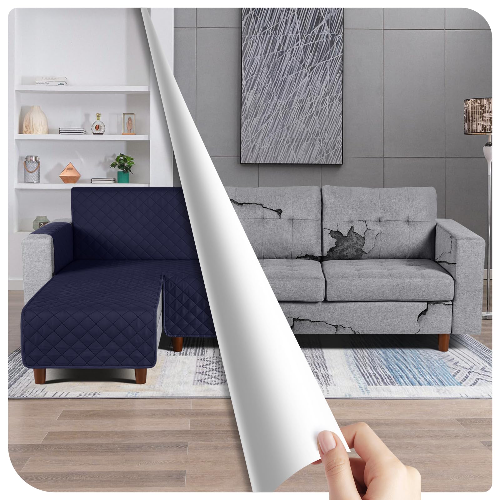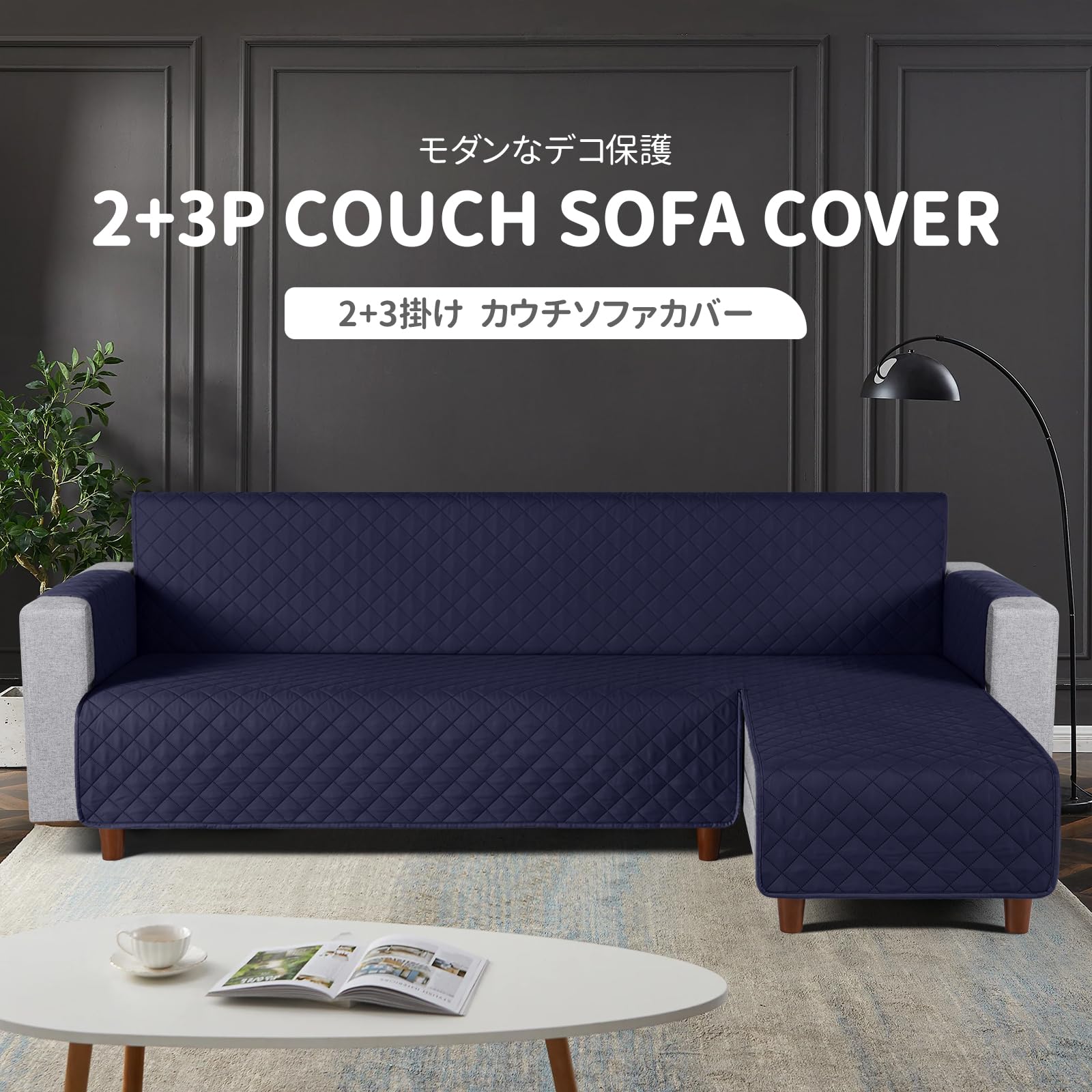 TAOCOCO 防水 カウチソファカバー フロアソファカバー コーナーソファカバー ソファーベッドカバー オットマンカバー コンパクト L字 肘付き 2人3人掛け 犬猫対策 毛髪不粘着 滑り止め 替えソファカバー 防塵 汚れ防止 傷防止 爪とぎ防止 おしゃれ ソファーカバー インテリア マルチカバー 四季適用 撥水加工 丸洗い可能 (ダークブルー色, 2+3人掛け)