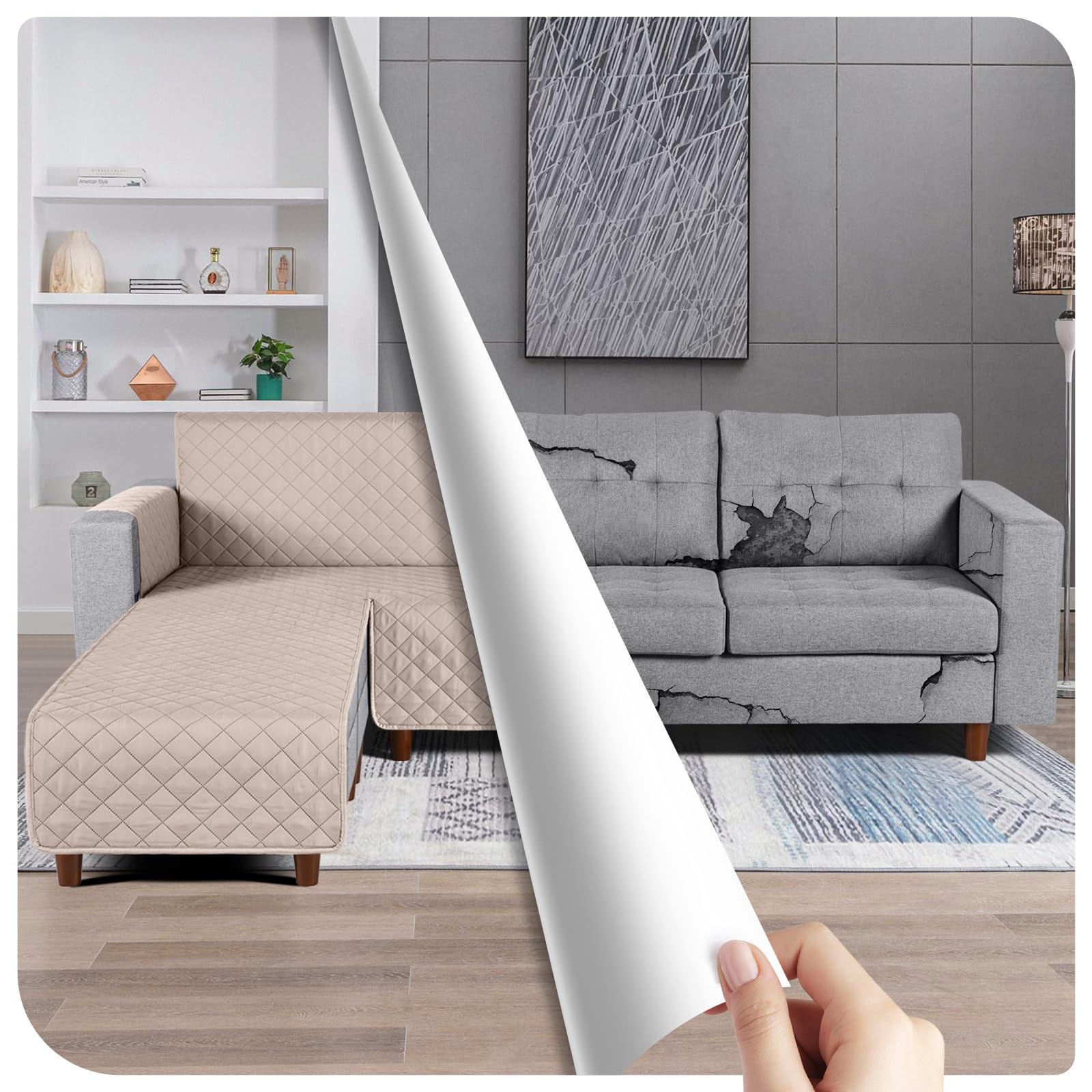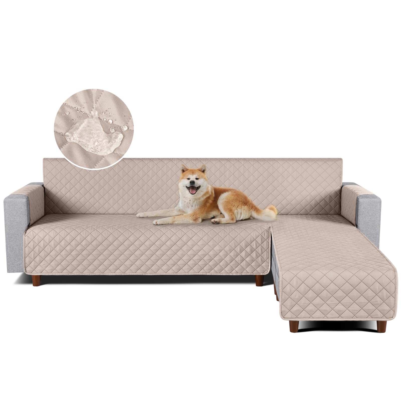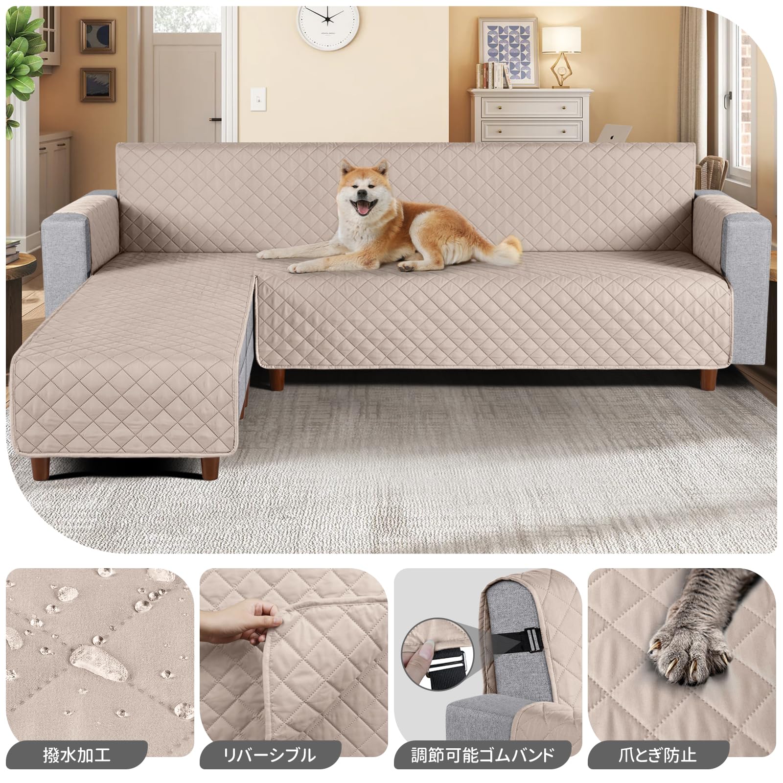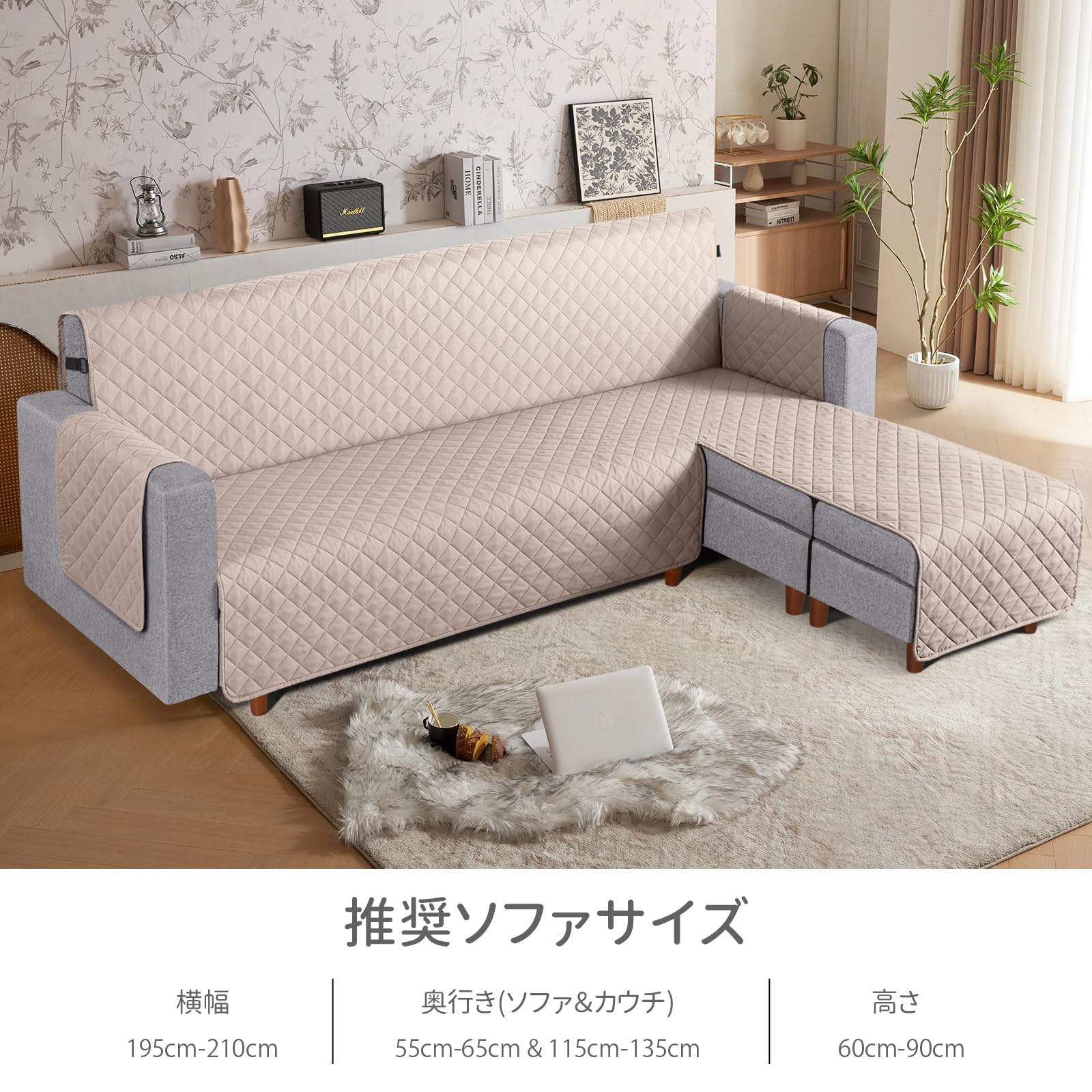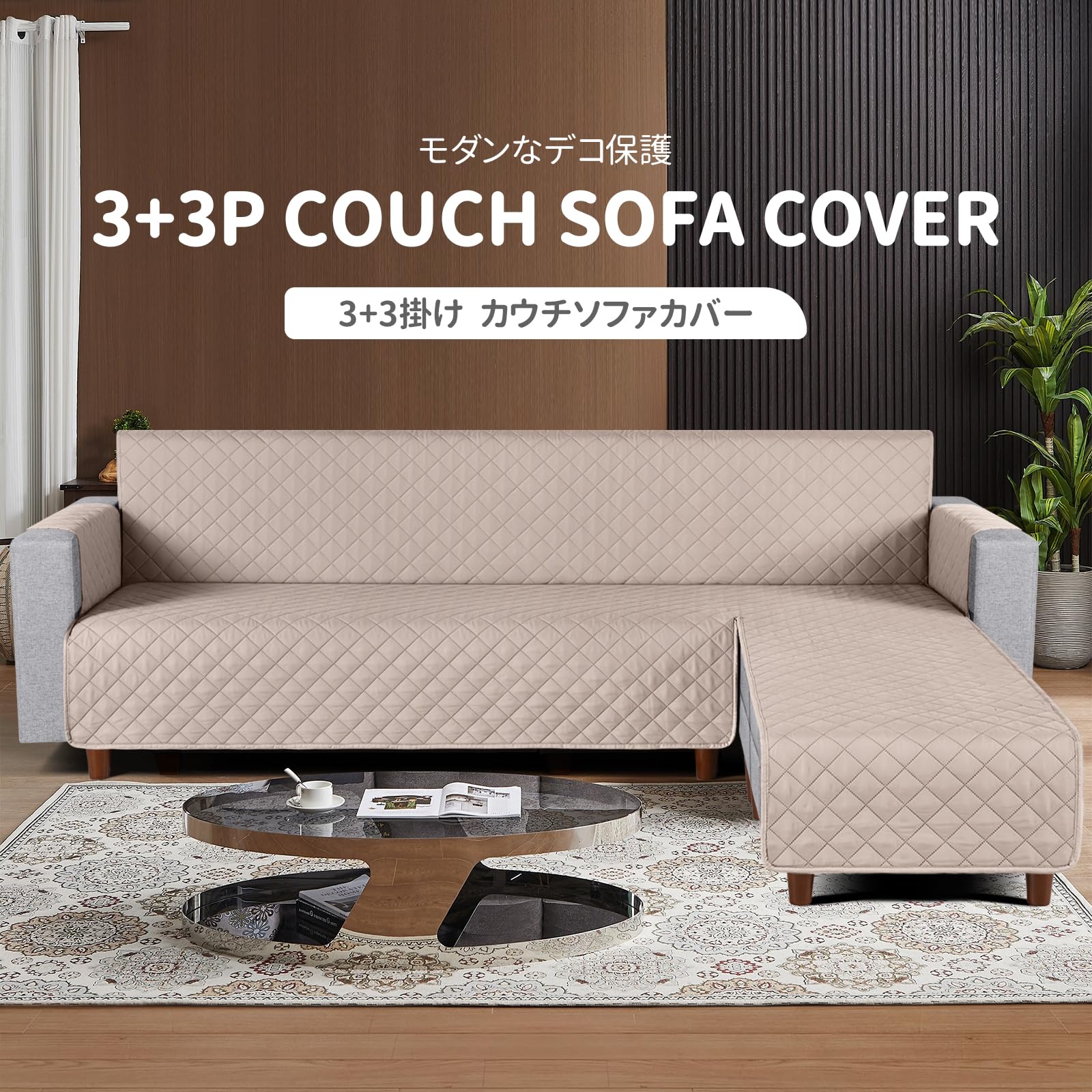 TAOCOCO 防水 カウチソファカバー フロアソファカバー コーナーソファカバー ソファーベッドカバー オットマンカバー コンパクト L字 肘付き 2人3人掛け 犬猫対策 毛髪不粘着 滑り止め 替えソファカバー 防塵 汚れ防止 傷防止 爪とぎ防止 おしゃれ ソファーカバー インテリア マルチカバー 四季適用 撥水加工 丸洗い可能 (カーキ色, 3+3人掛け)