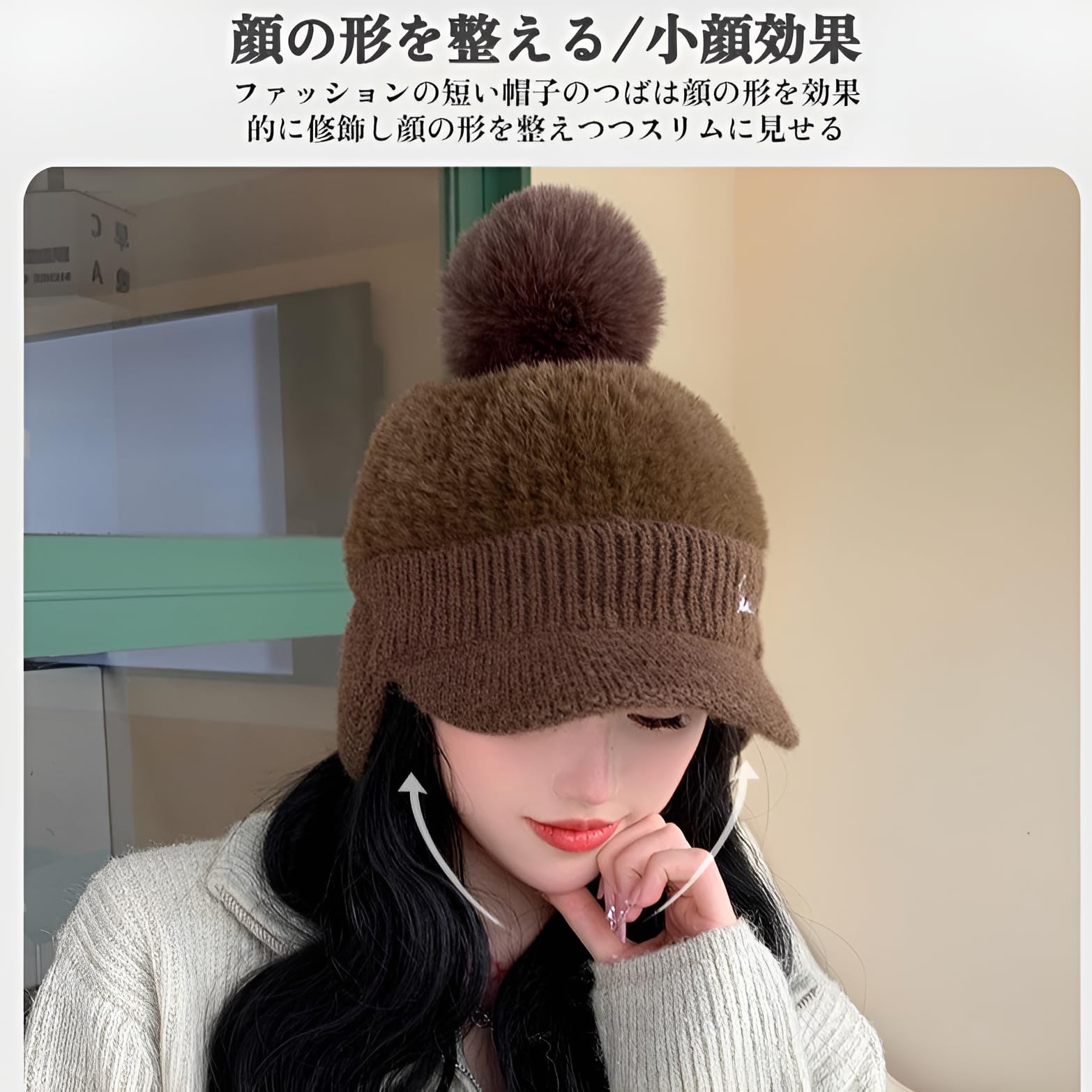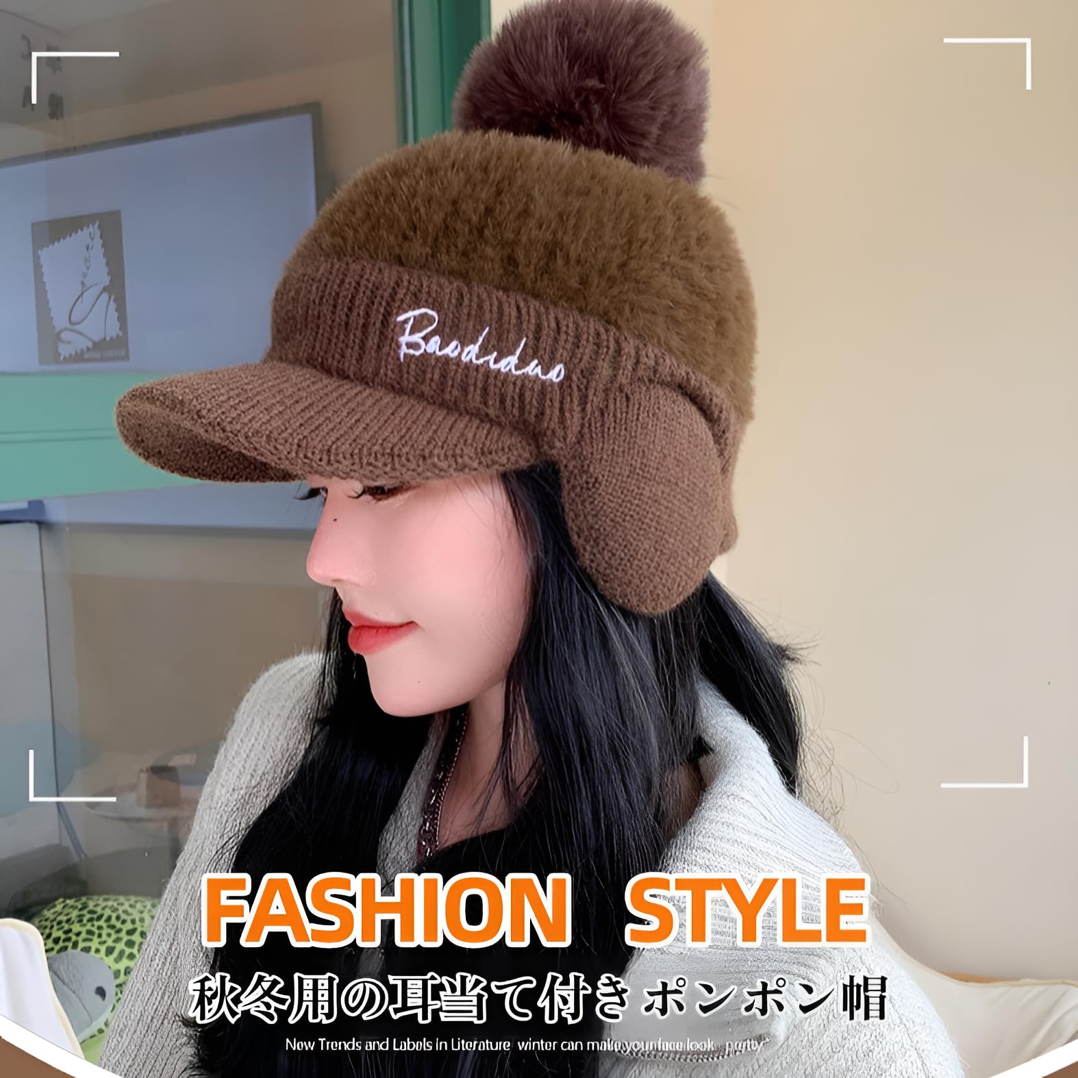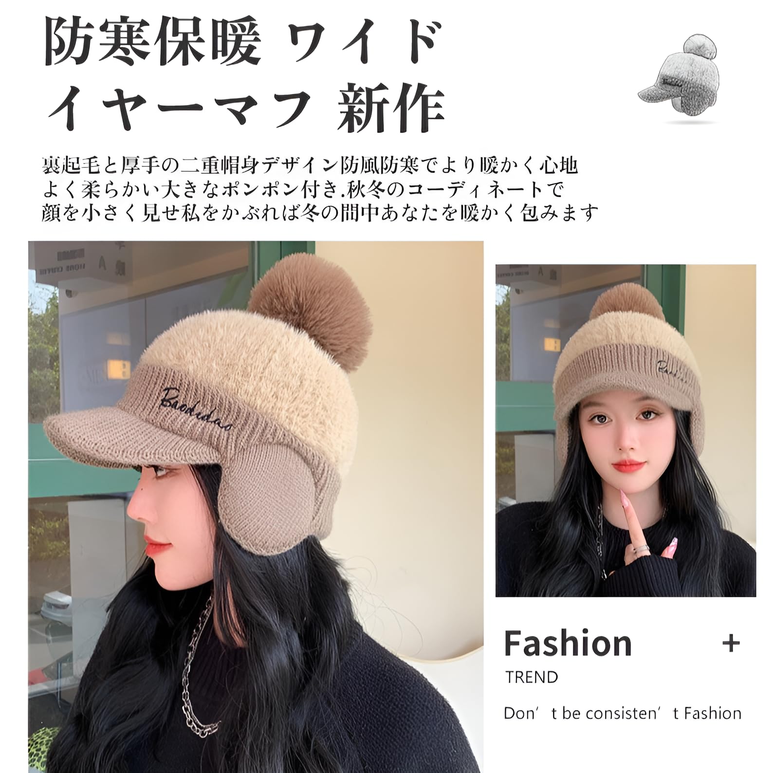 [Luvian] ニット帽 レディース 秋冬 ニット帽子 耳あて付【つば付きニット帽・裏起毛二重保温・肌に優しい】 ニットキャップ おしゃれ かわいい 厚手 防寒帽子 防寒防風 小顔効果 締め付け感ゼロ ハット レディース 通勤通学