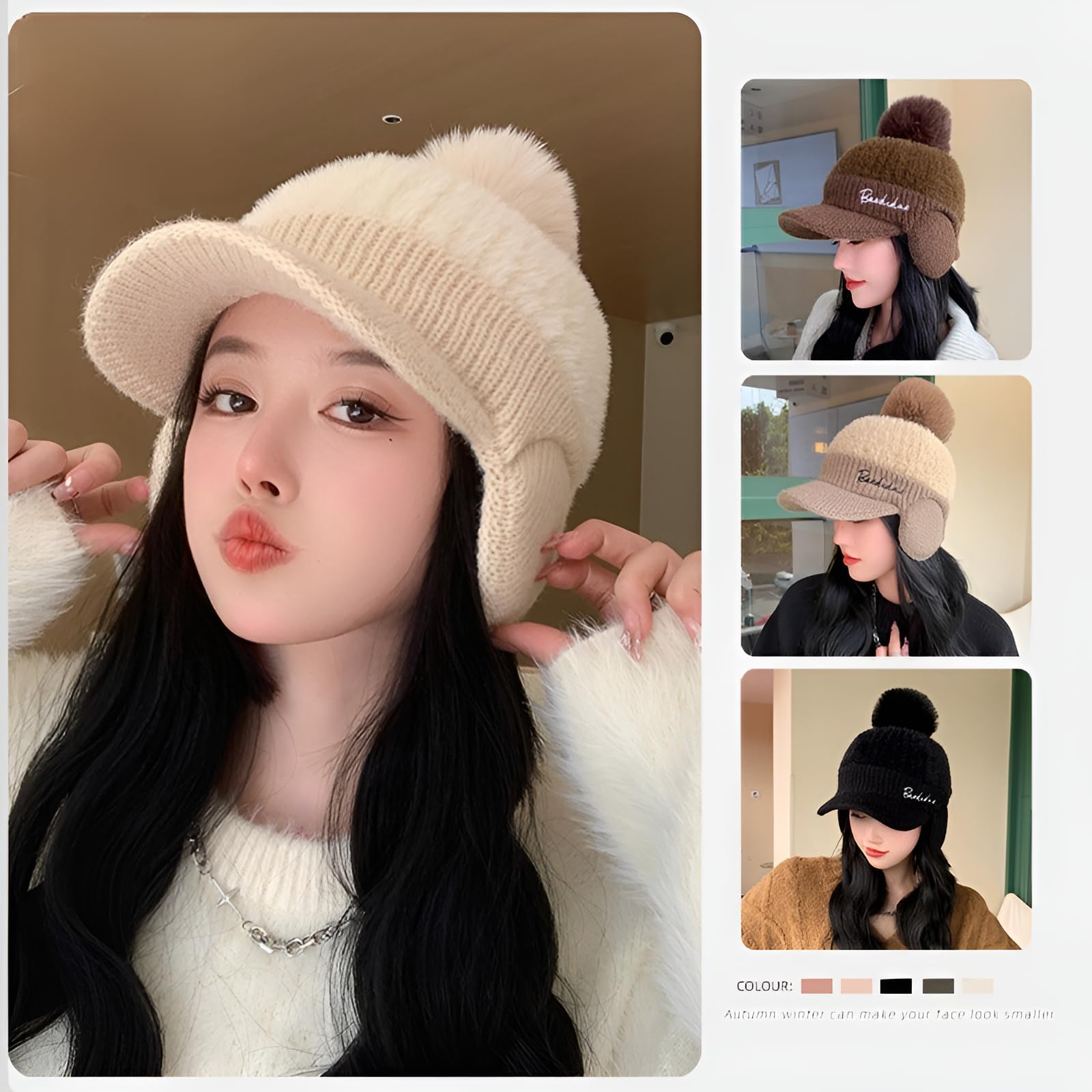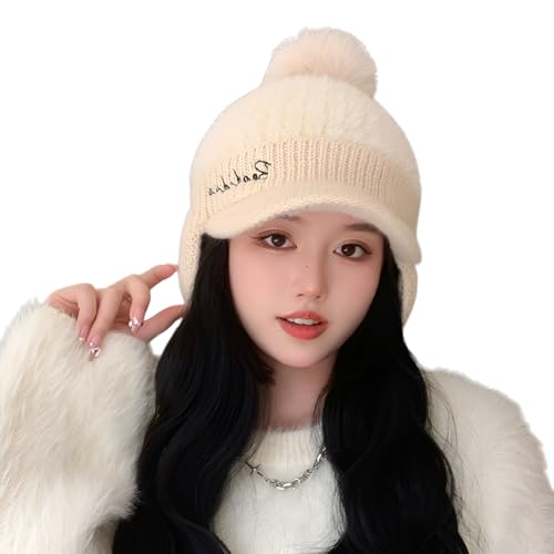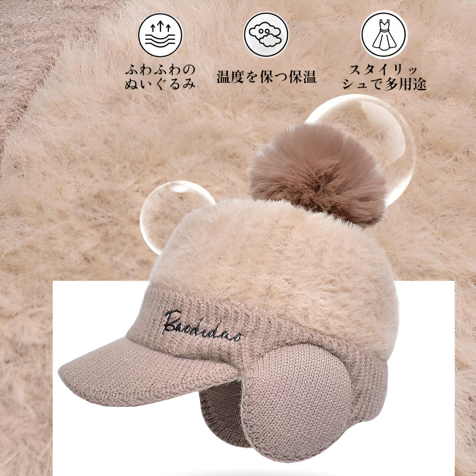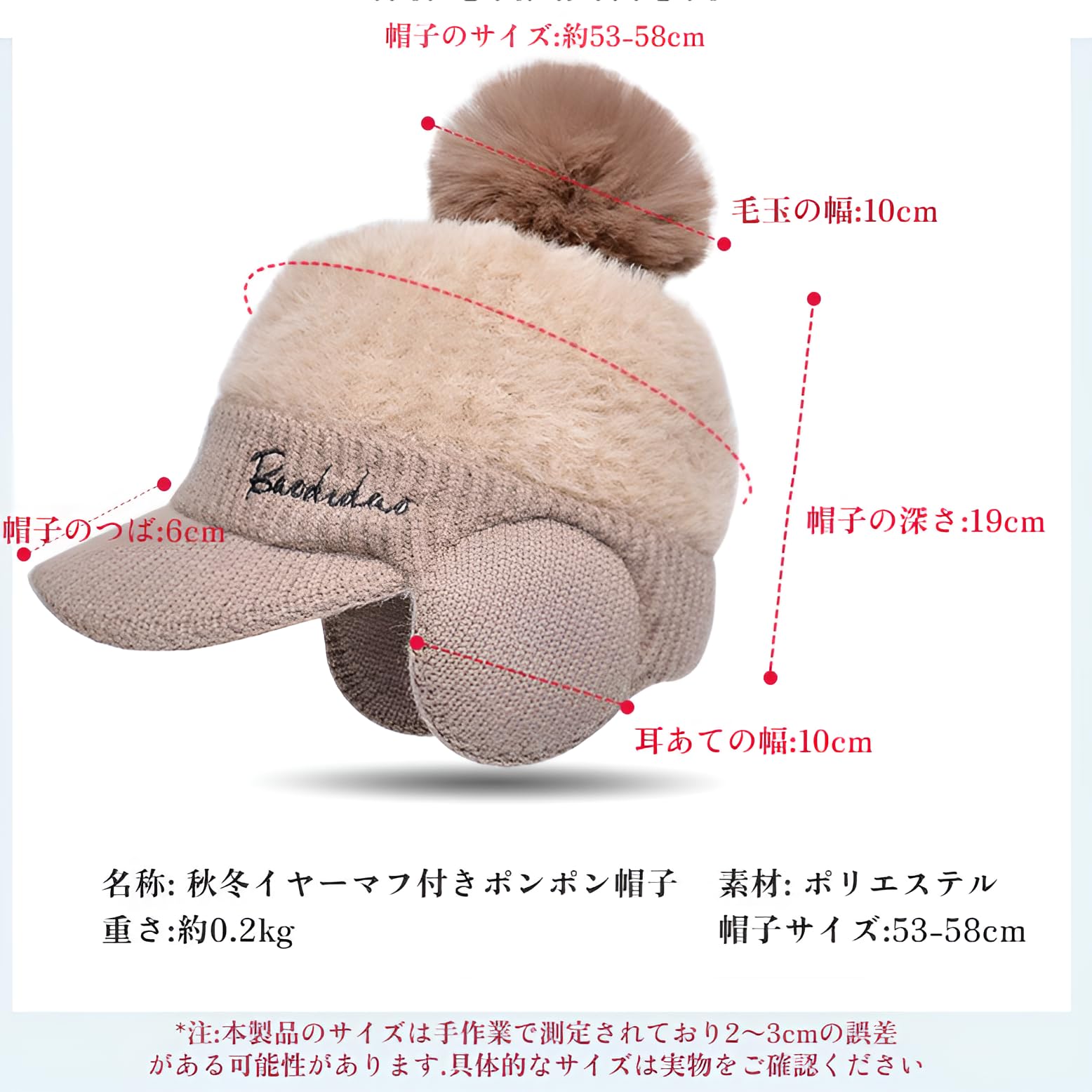 [Luvian] ニット帽 レディース 秋冬 ニット帽子 耳あて付【つば付きニット帽・裏起毛二重保温・肌に優しい】 ニットキャップ おしゃれ かわいい 厚手 防寒帽子 防寒防風 小顔効果 締め付け感ゼロ ハット レディース 通勤通学