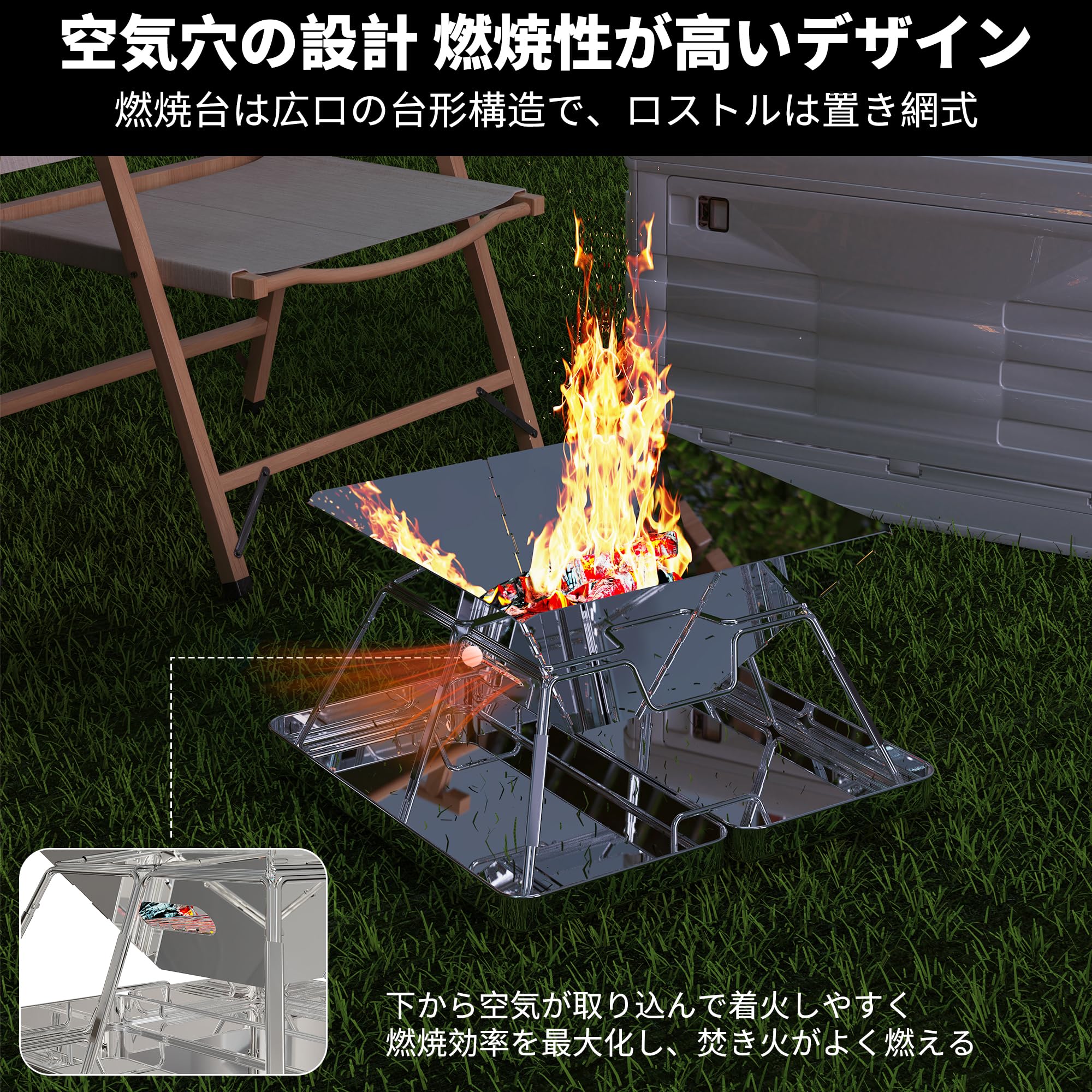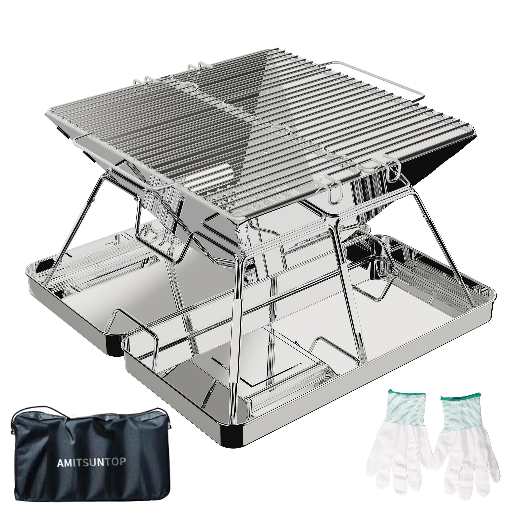 AMITSUNTOP BBQ グリル 焚き火台 バーベキュー コンロ 卓上コンロ 屋外での焚き火 コンパクトな折りたたみ収納ステンレス鋼 収納袋付き