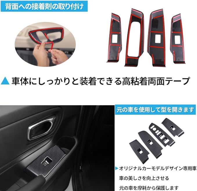 【GIKAKU】トヨタ アルファード40系 ヴェルファイア40系 アルファード40系 アクセサリー ウィンドウスイッチパネル 運転席と助手席の両方に対応 汚れ 傷防止 耐摩擦 カバー Alphard 内装パーツ カスタム(カーボン調 ) (ピアノブラック)