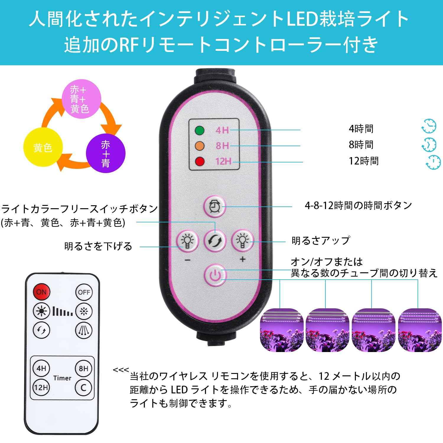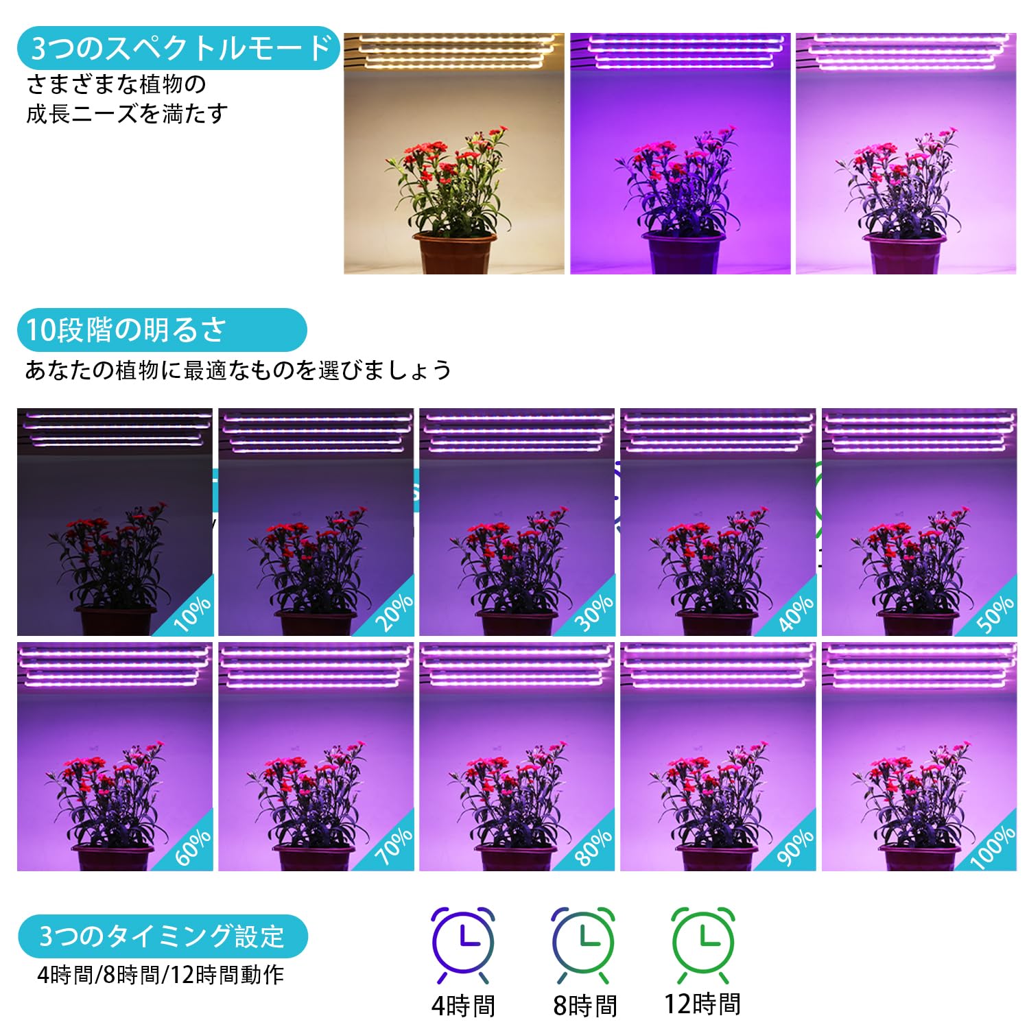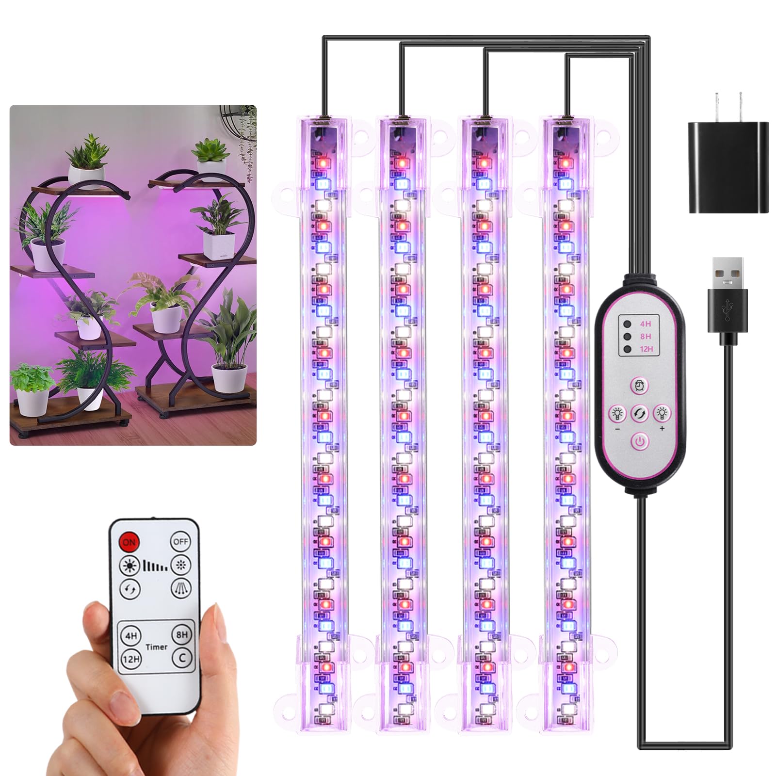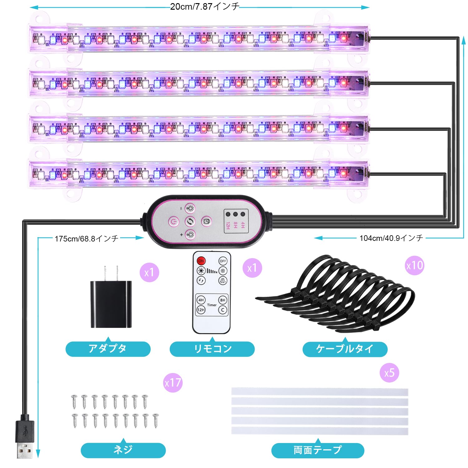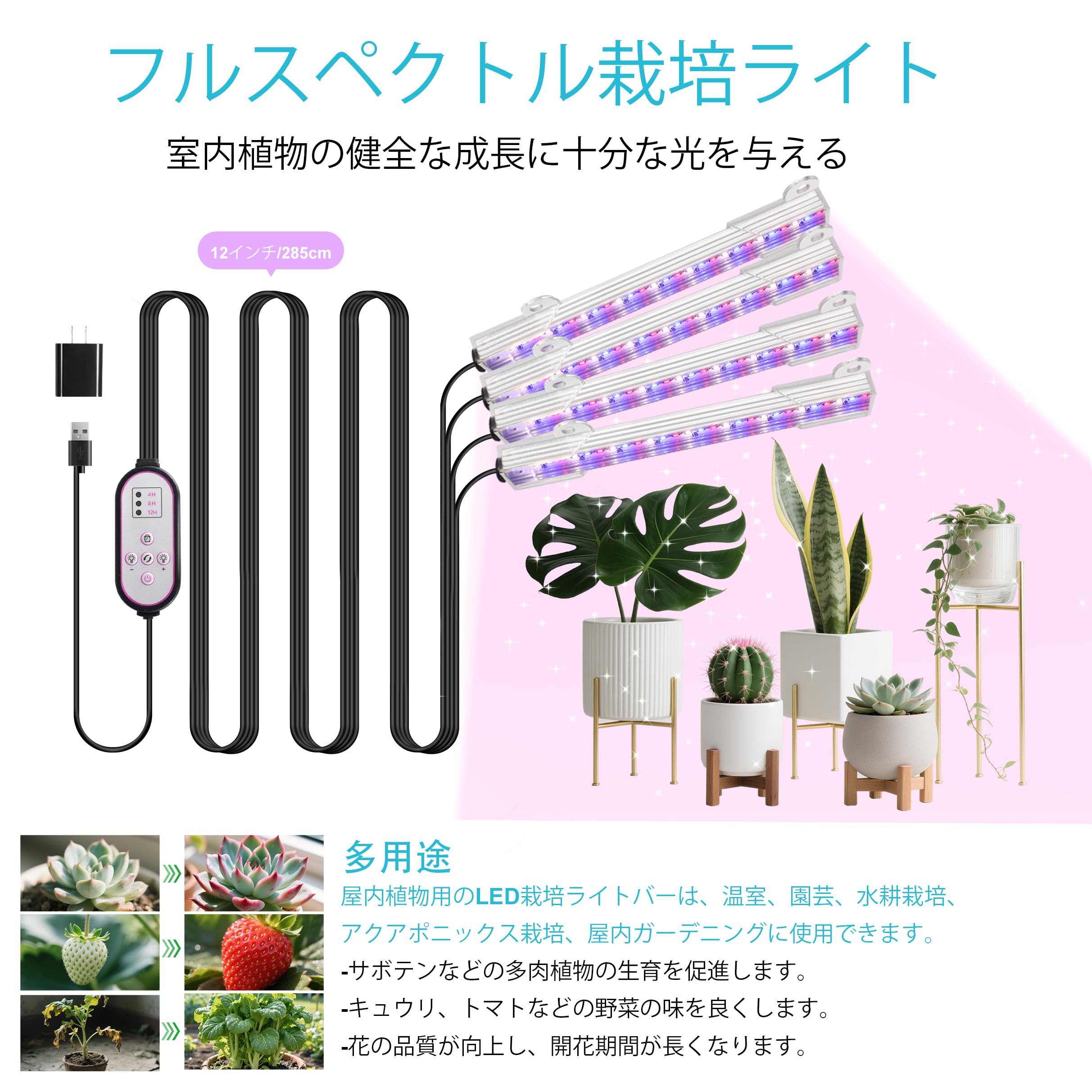7.8インチ ミニ 4ヘッド 屋内植物育成ランプ、4/8/12時間タイマーと10段階調光機能付きフルスペクトルLED栽培ライト、温室多肉植物用
