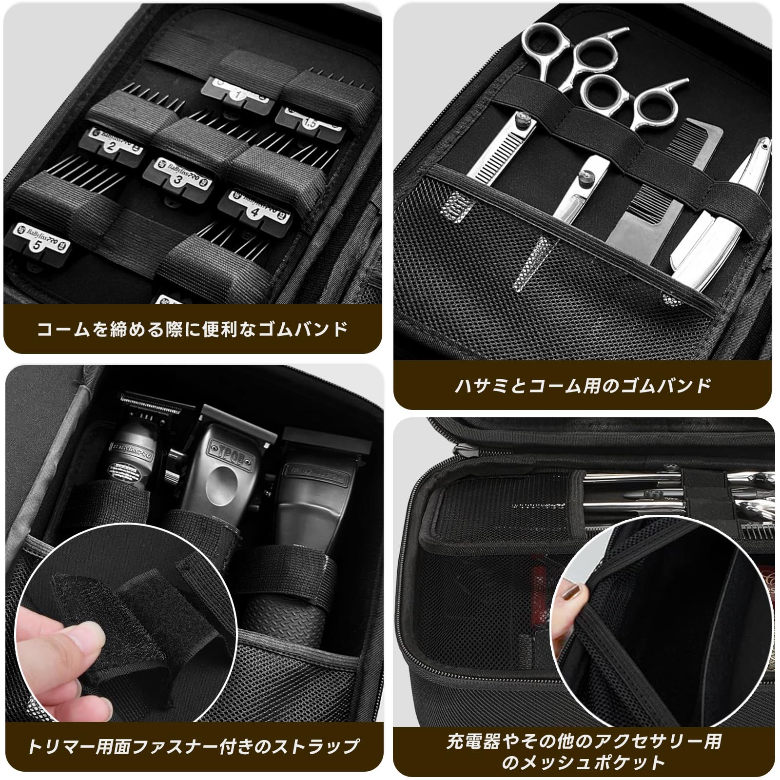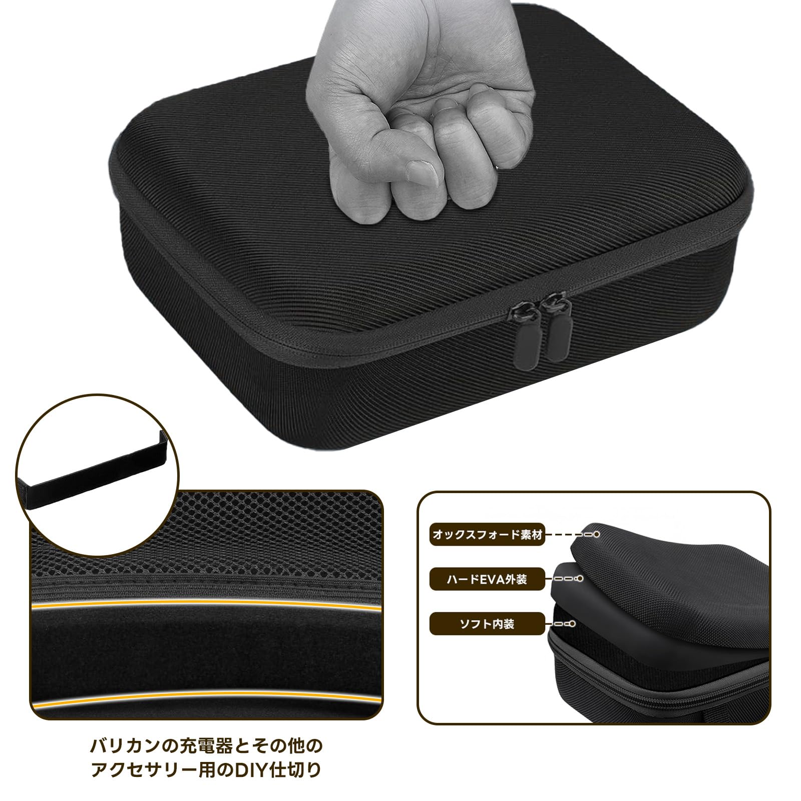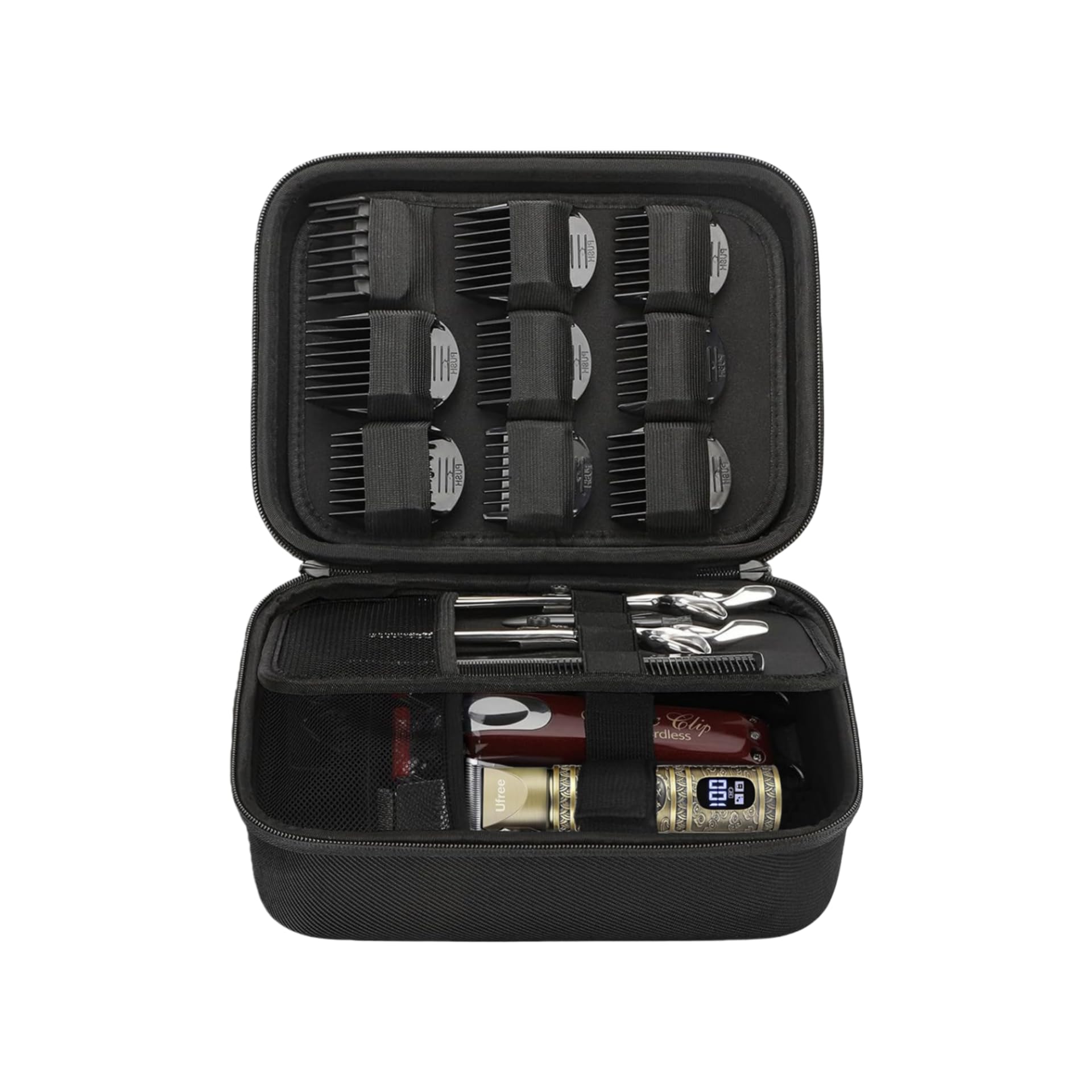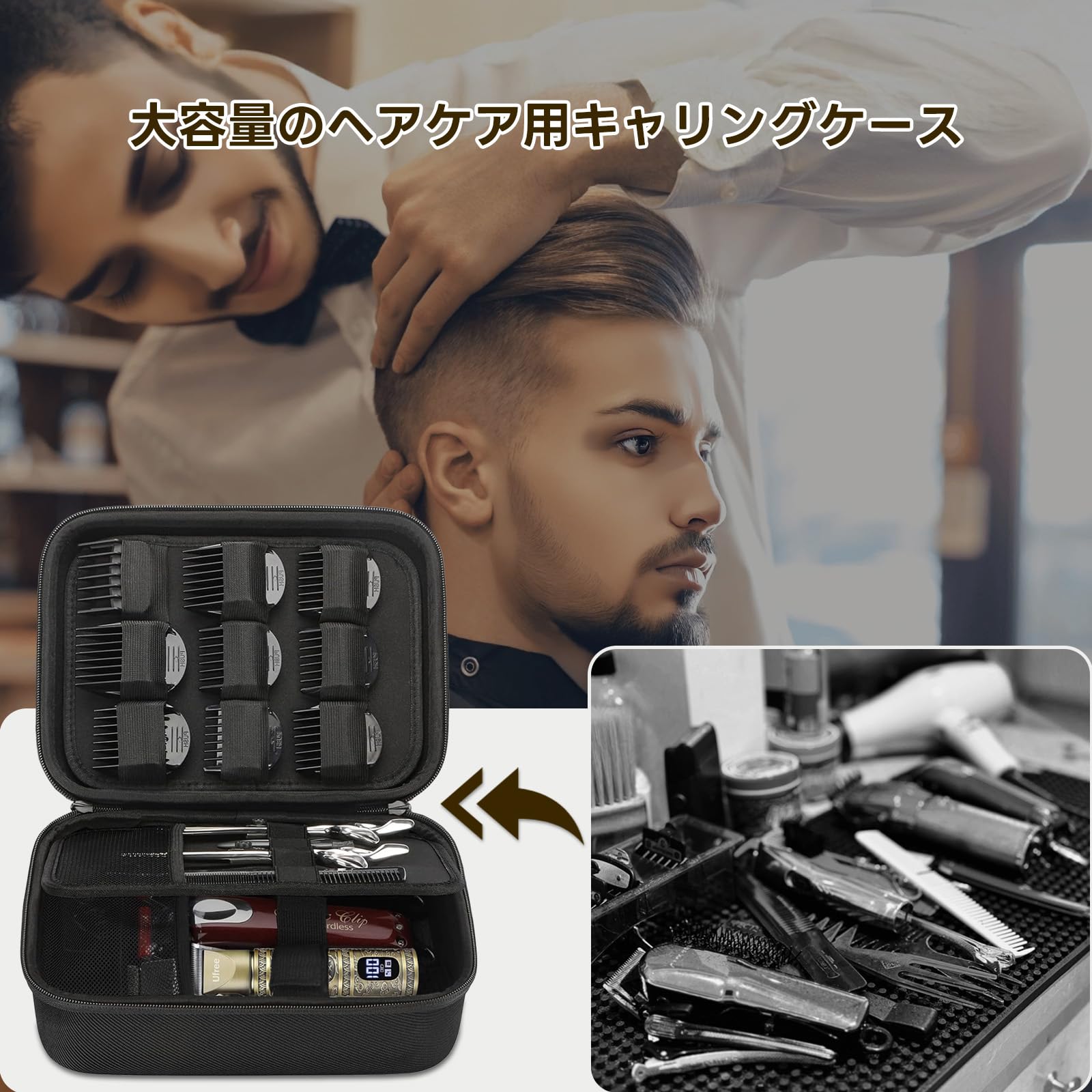 バリカンケース 汎用 耐衝撃 EVAハードトラベルケース ヘアカット理髪用品 収納バッグ(ブラック)