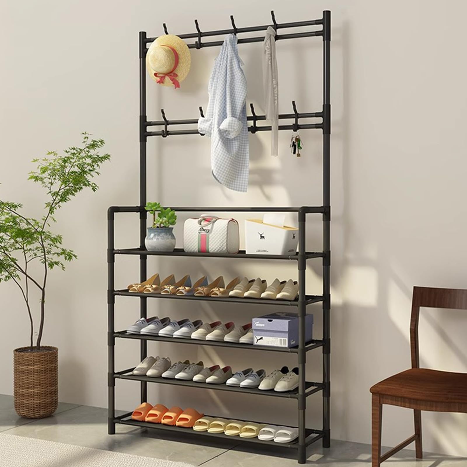 YOUDENOVA シューズラック スリム 靴棚 大容量 靴 収納 20-30足 靴置き 靴箱 下駄箱 おしゃれ 縦長 省スペース 組み立て式 分割可能 取っ手付き 狭い 玄関 廊下 クローゼット 靴入れ (ブラック, 10段,幅45×奥行28×高さ175cm)