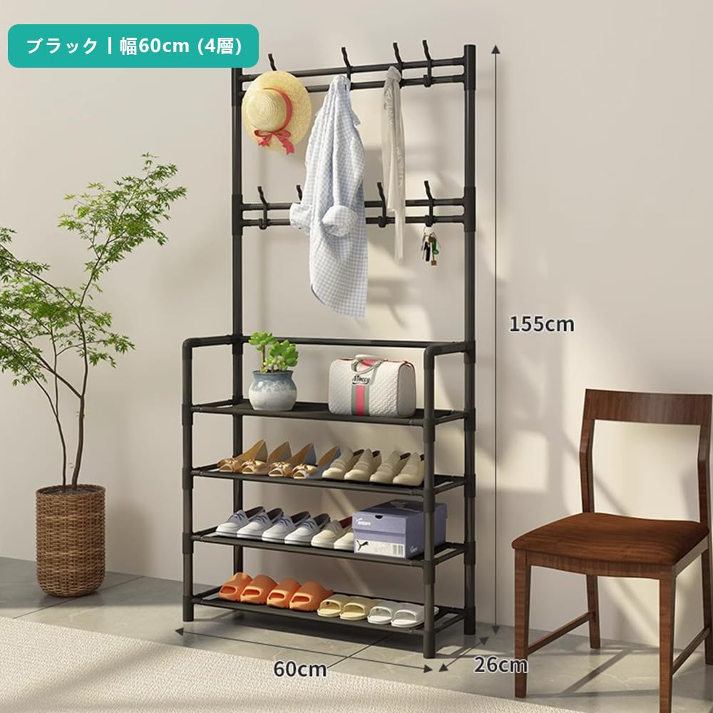 SKW 玄関シューズラック L字型 組み立て簡単 大容量 省スペース おしゃれ 靴棚 (ブラック, 幅60cm (4層))