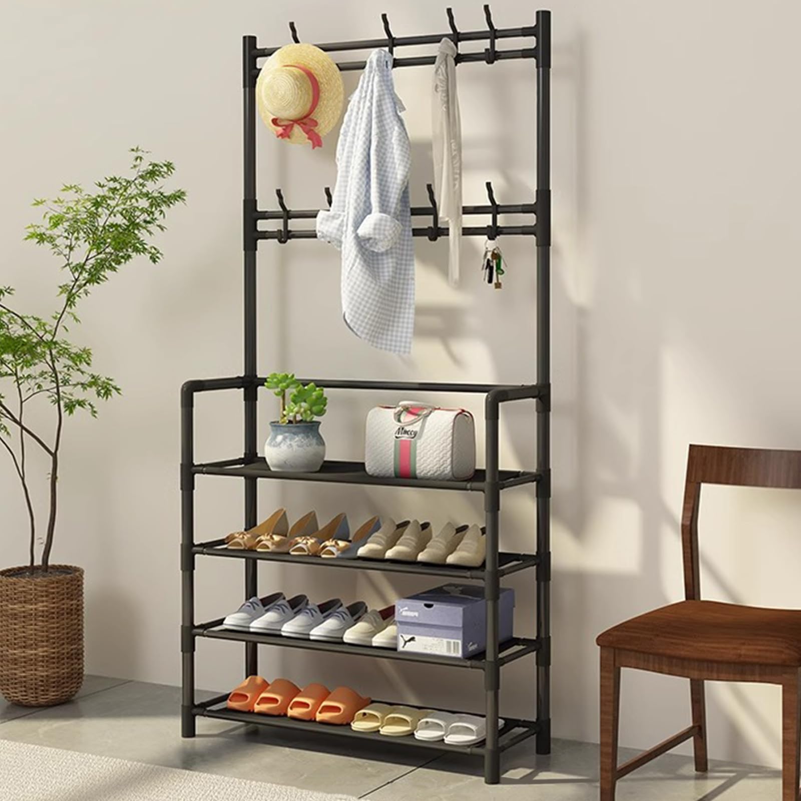 OYREL シューズラック 5段 金属製 頑丈 靴 ラック|スリム省スペース 10足収納可能 玄関/クローゼット対応 靴棚 組立簡単 ブラック 幅43×奥行30×高さ100cm