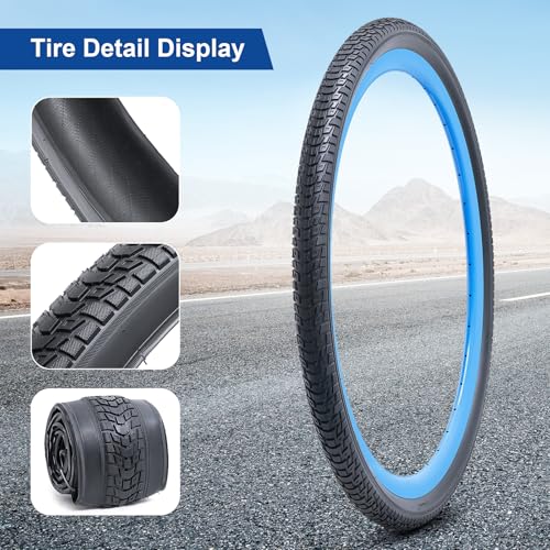 YunSCM 2本セット,26 1 3/8 タイヤ カラー,26x1 3/8 37-590 自転車タイヤ + 26x1 3/8 チューブ 肉厚 米式バルブ32mm + リムテープ + タイヤレバ,適用 26インチ 1 3/8 ロードバイク、車椅子,Y-234(ベージュ)