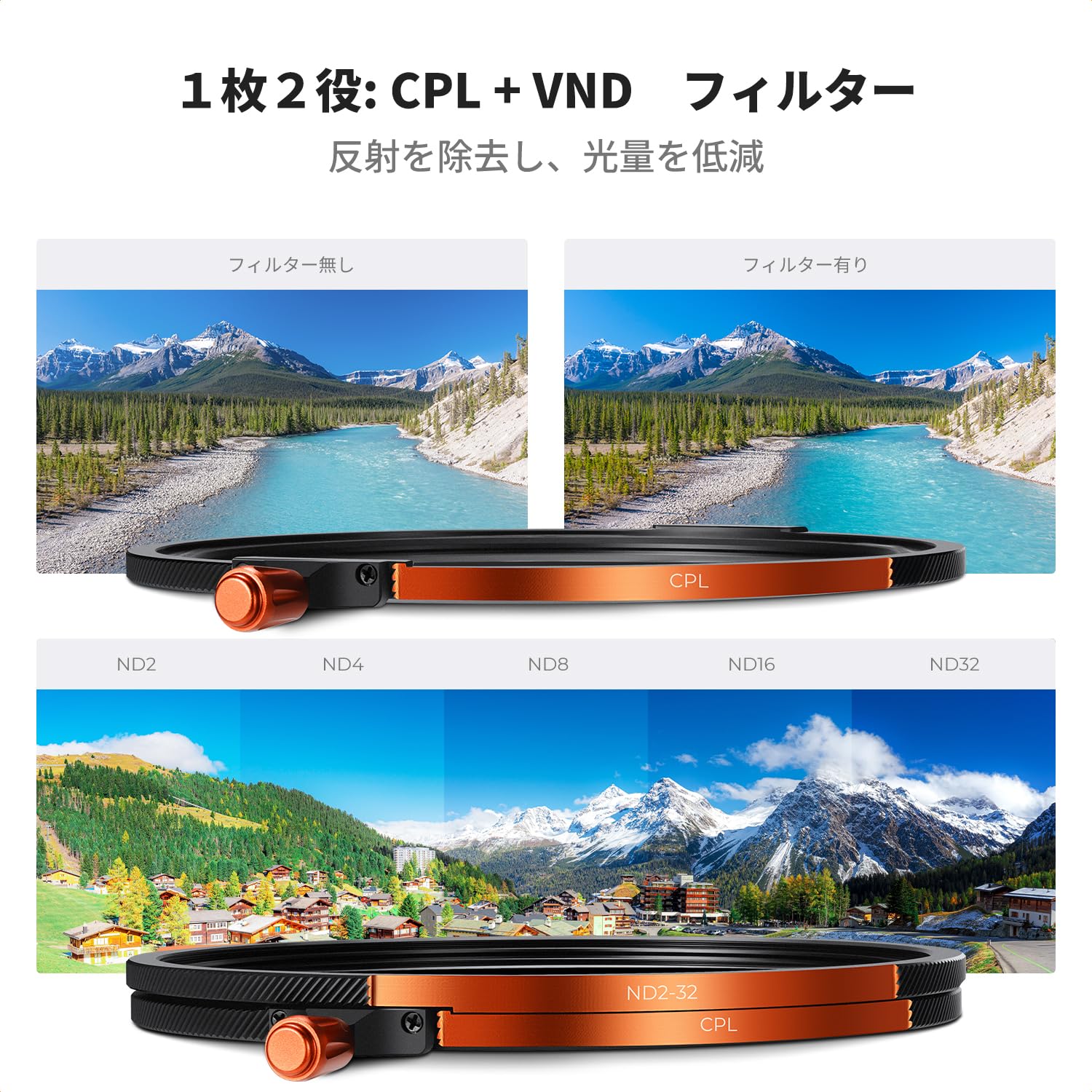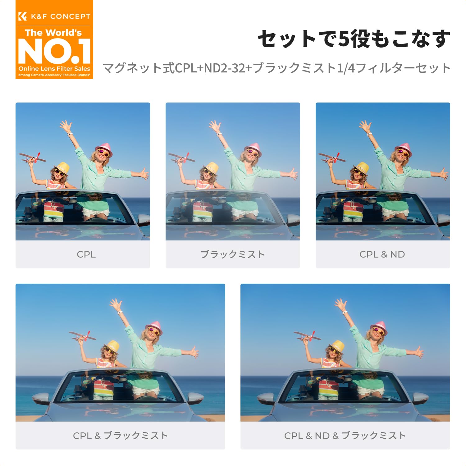 K&F Concept DJI OSMO Pocket 3用磁気式フィルター CPL+1/4ブラックミスト+ND2-32 ソフト効果 コントラスト強調 反射除去 減光量調整 28層ナノコーティング 撥水防汚