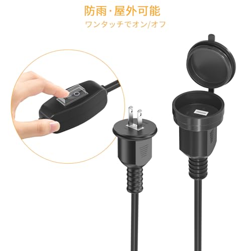 HITRENDS延長コード 5m 15V/1500W 屋外 電源コード 防水 スイッチ付き 作業用 延長ケーブル 防雨キャップ付 耐トラッキングカバー 電源タップ ト火災予防 絶縁キャップ付き 屋外 コンセント延長 作業用 2芯 1500Wまで 野外用 電動工具、草刈り機、照明用、掃除機など対応 【屋外OK】PSE認証