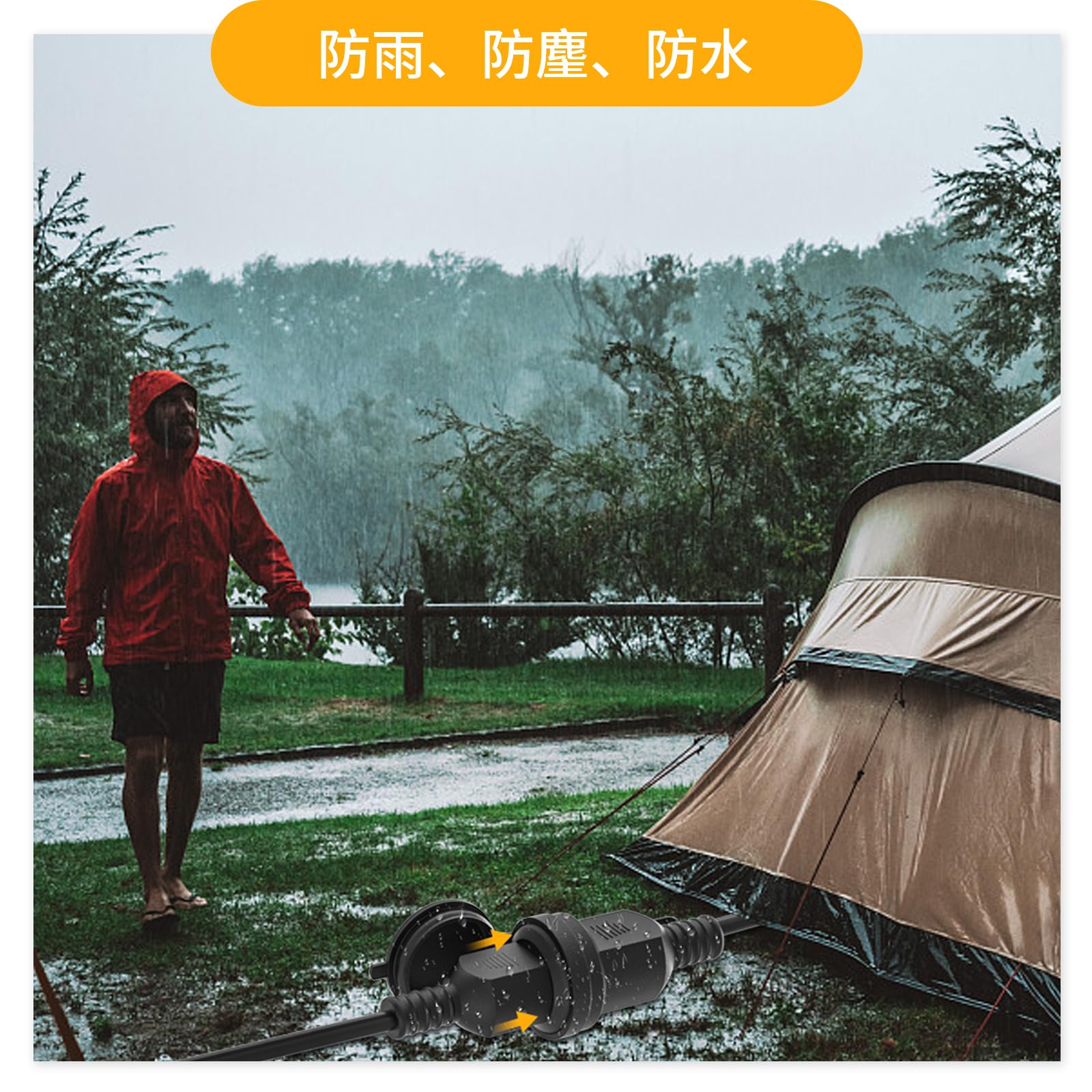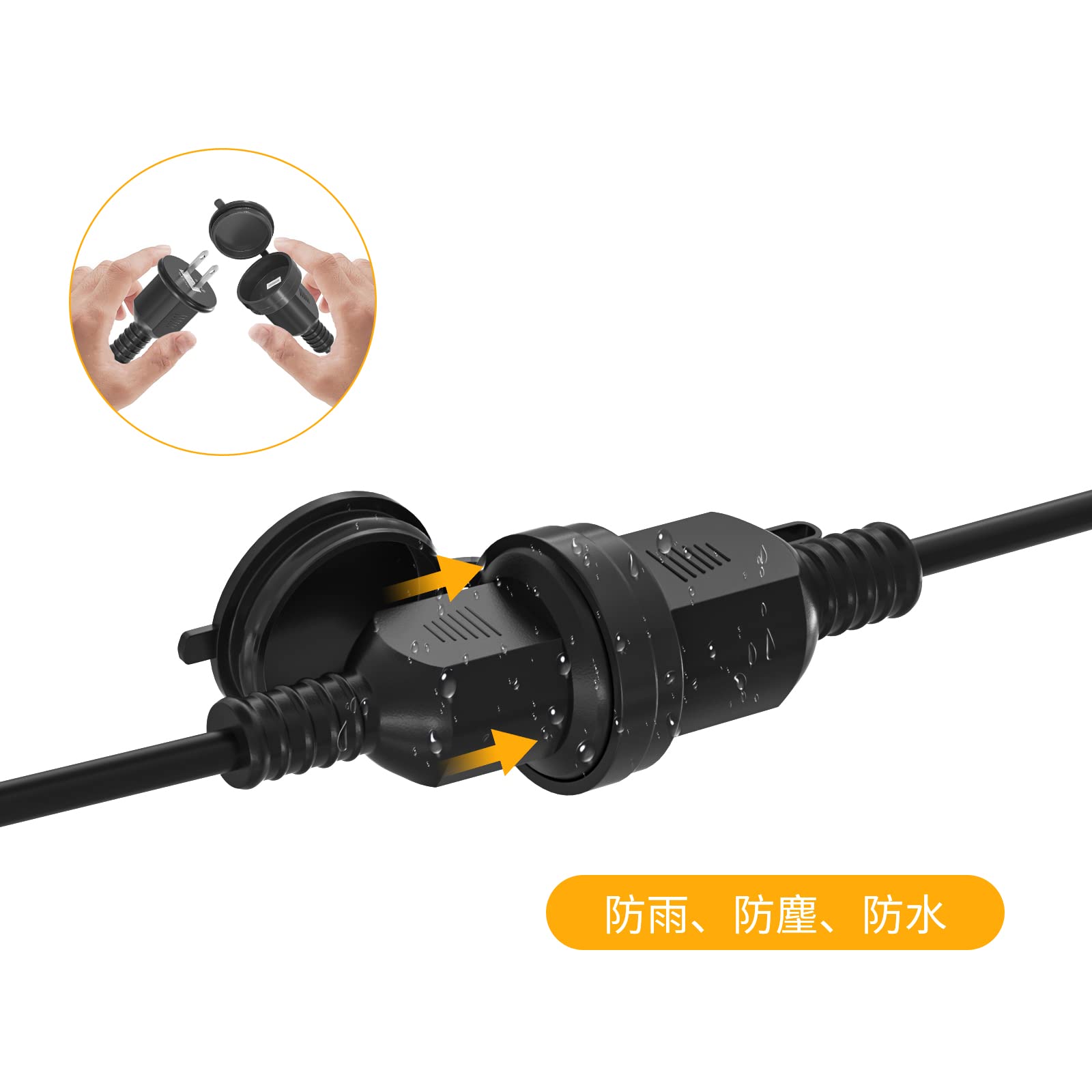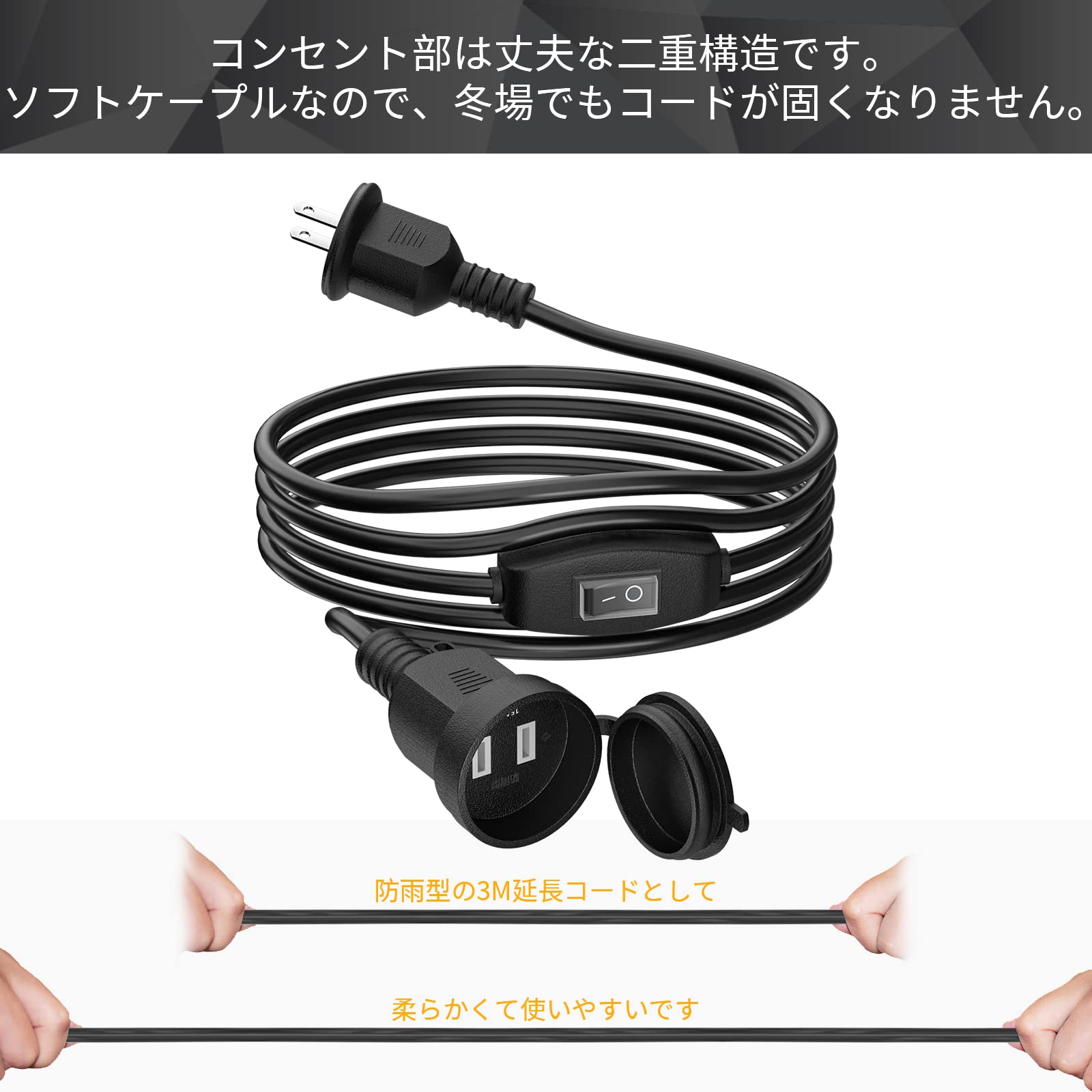 GJWLaie 延長コード 1m 防雨延長コード 15A 125V 2分配 屋外 屋内 野外 作業用 オフェス用 防水キャップ 防水型延長コード 分配コード 電源ケーブル 電源コード 防雨電源コード 防雨延長コード