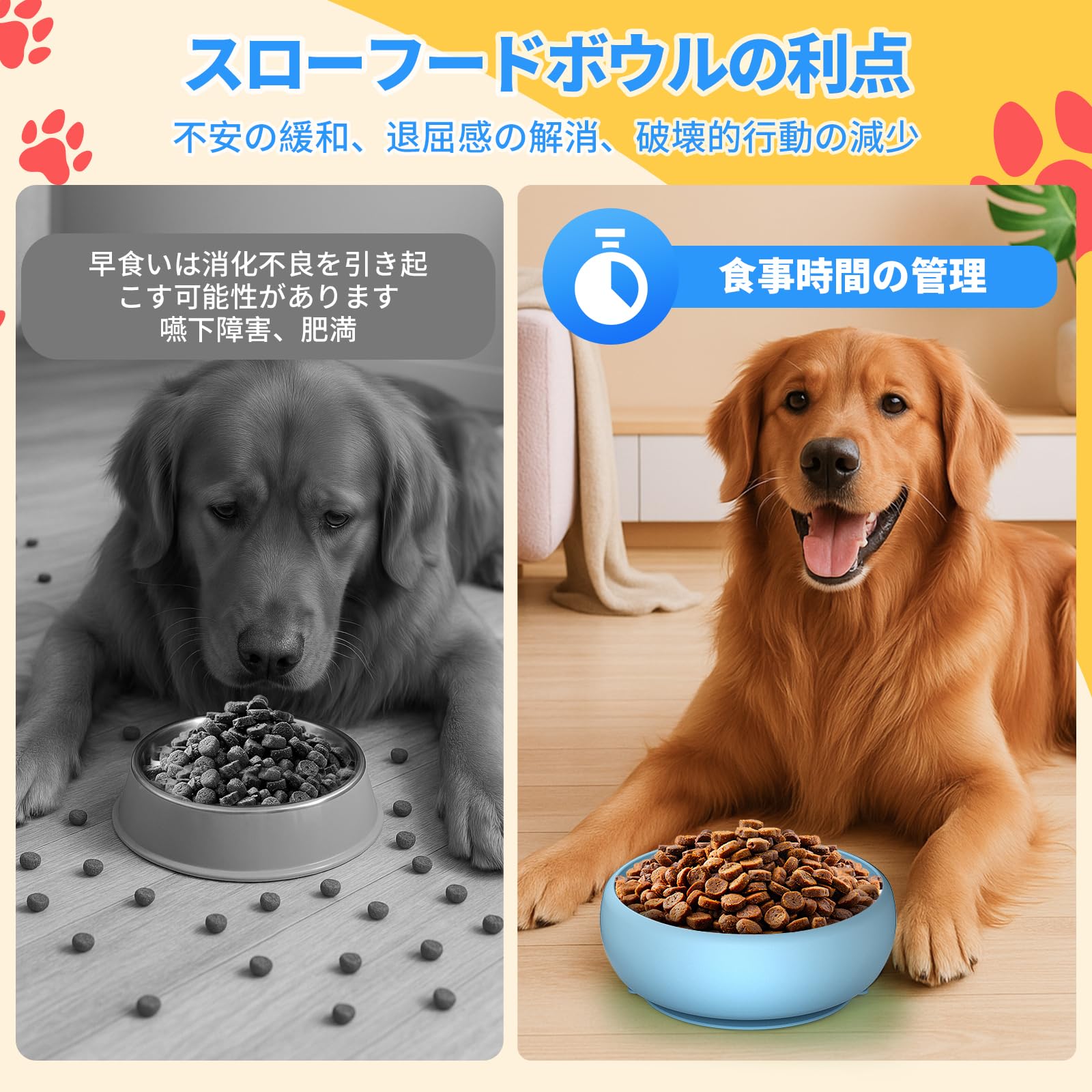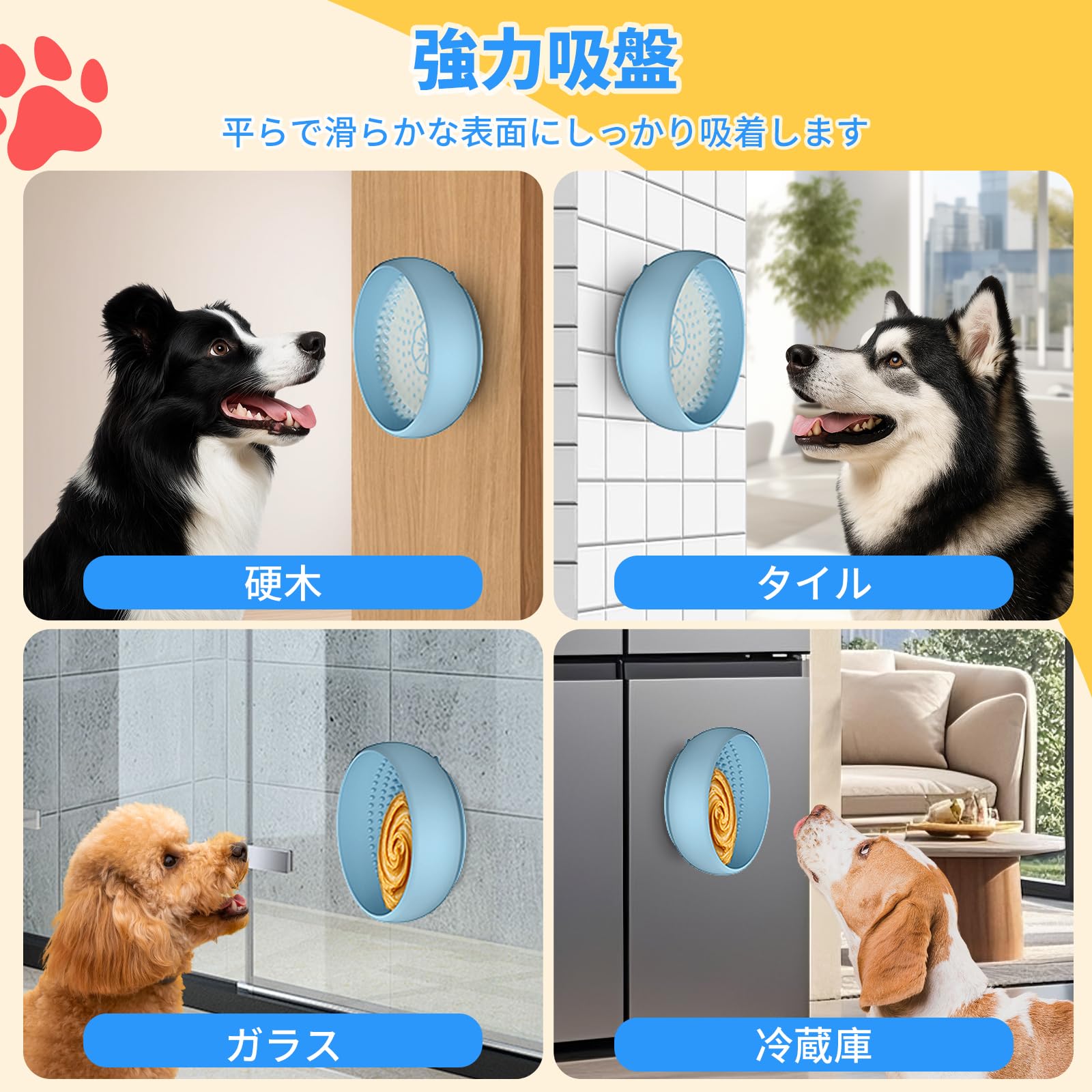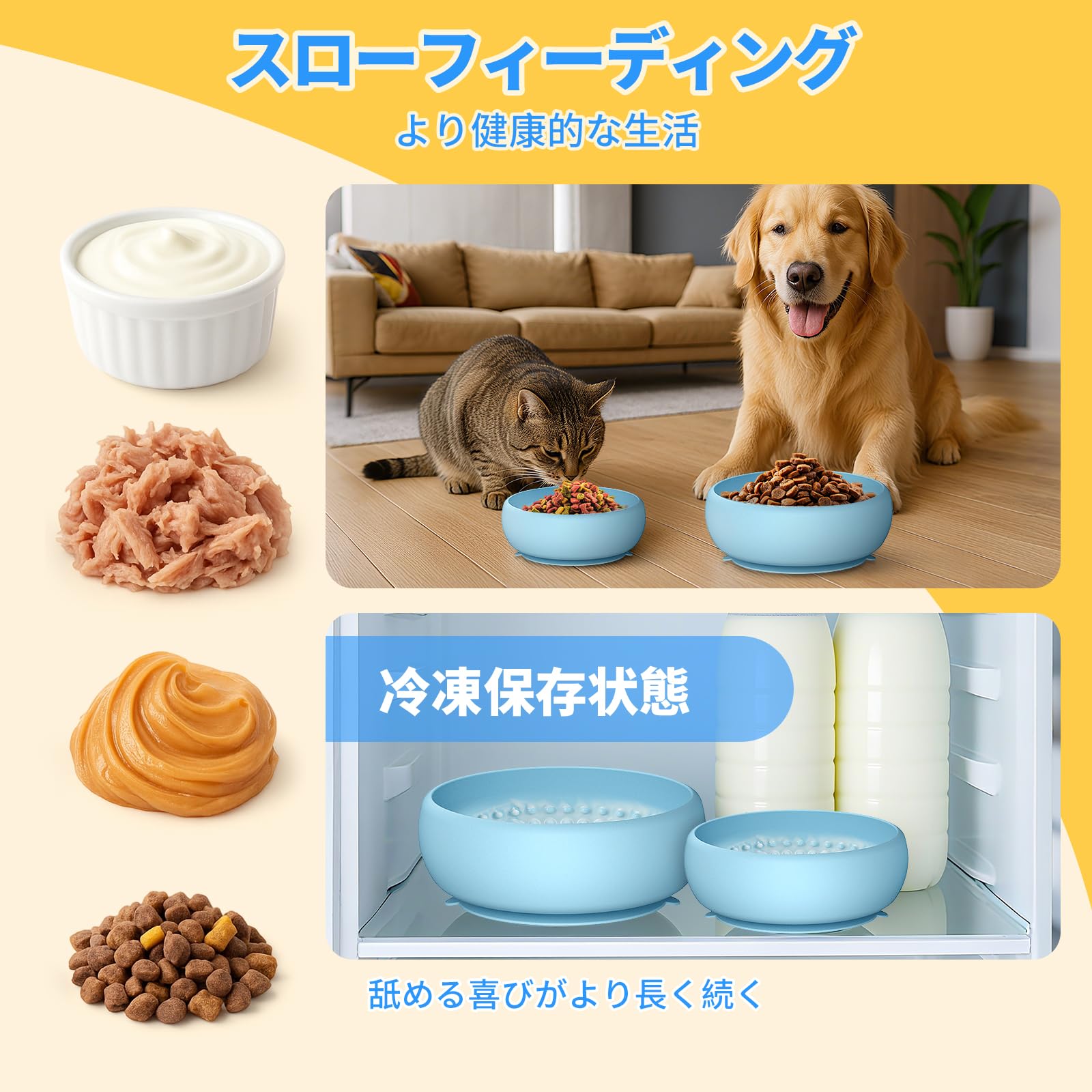 Pawinner 2個セット 早食い防止 ペット用舐め碗 ペット用食器 犬用 猫用 冷凍可能 スローフードボウル シリコーン吸盤式 滑り止め スクレーパー&清掃ブラシ付き ブルー