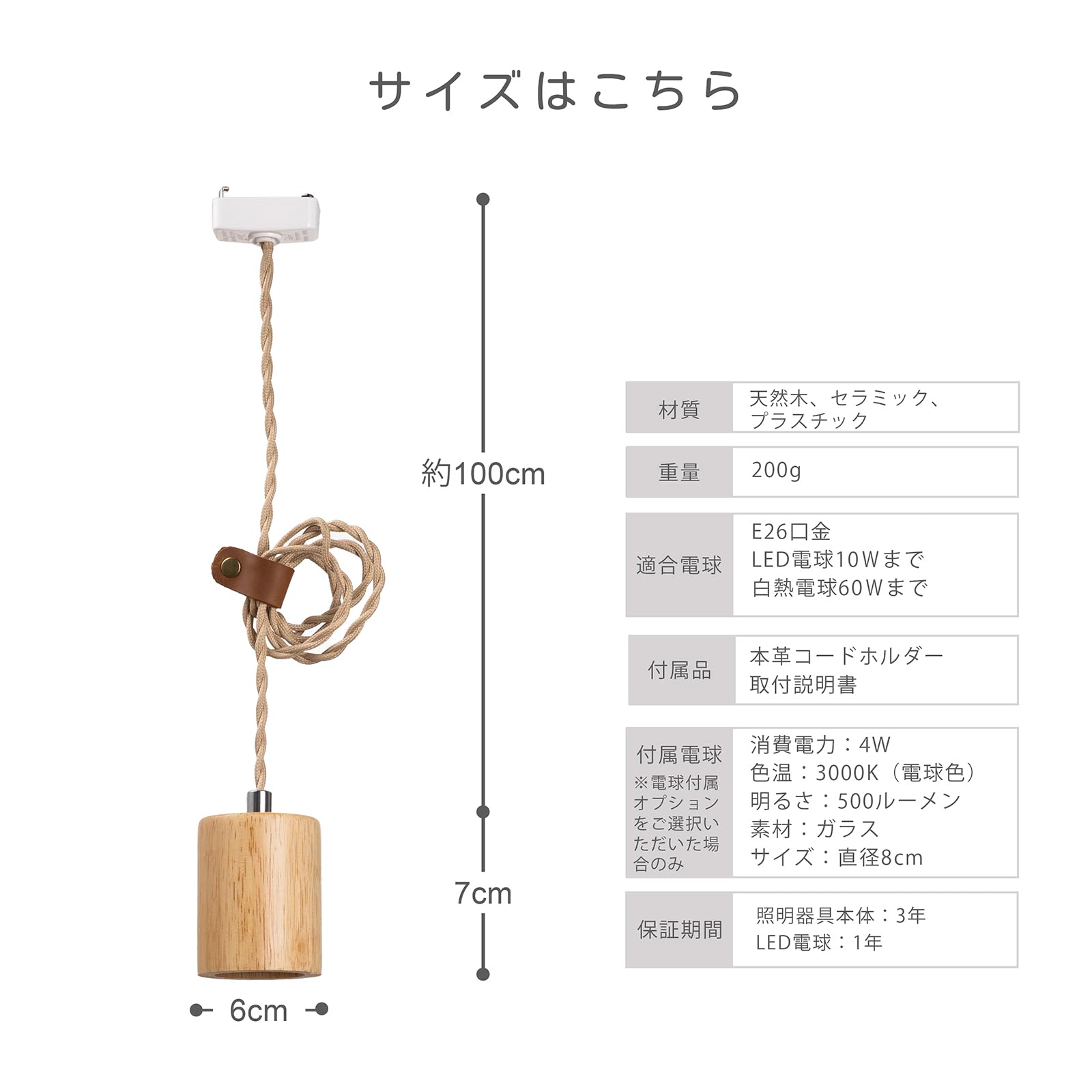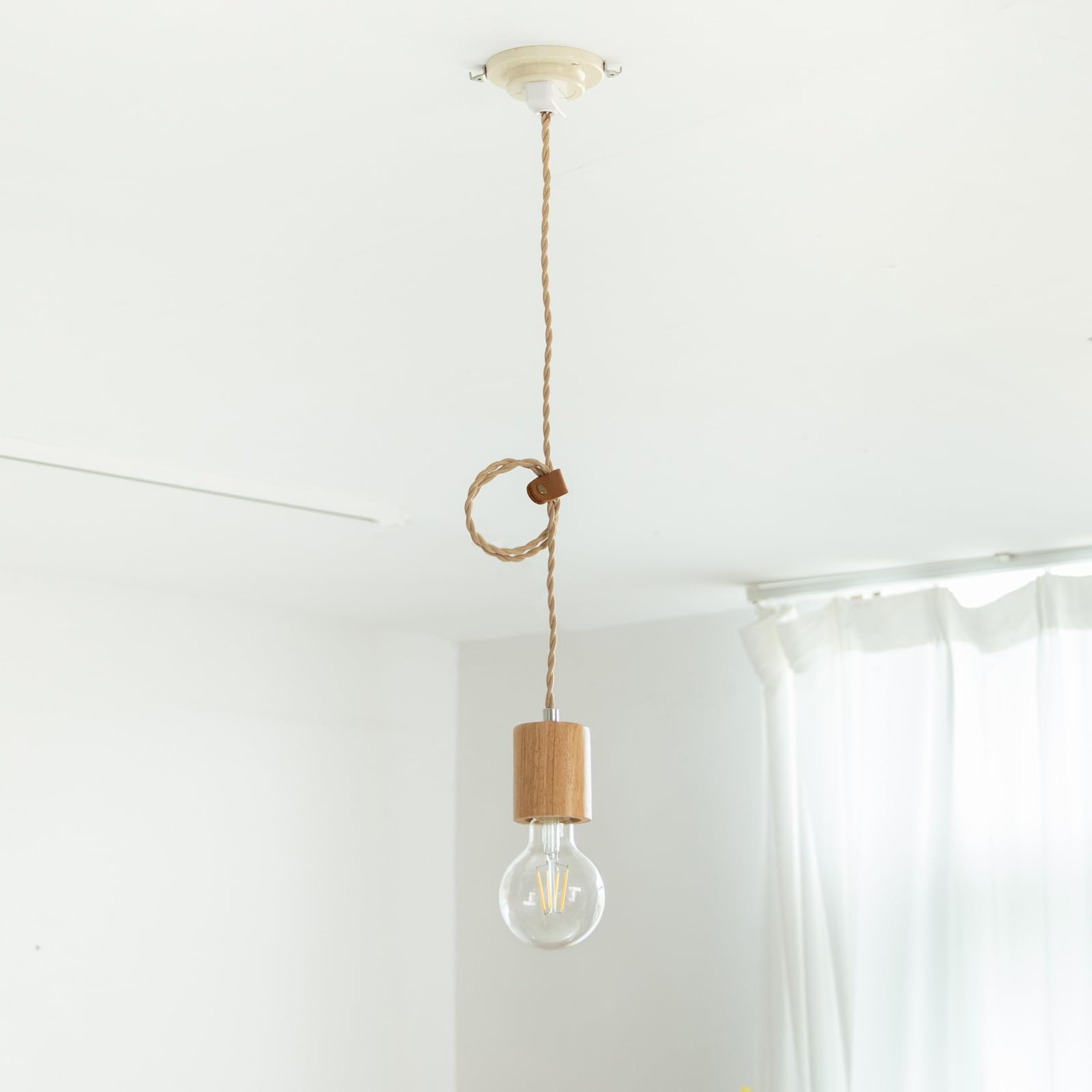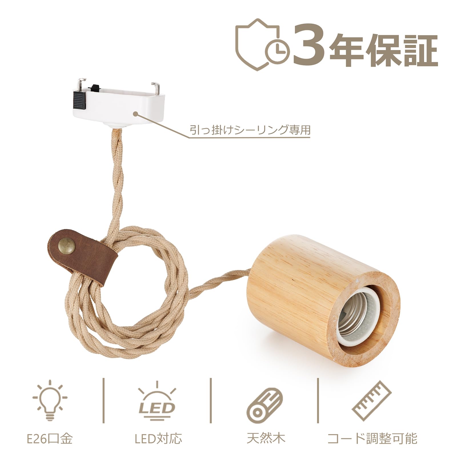智光電気 天然木 ペンダントライト 裸電球 E26口金ソケット ナチュラルカラー 吊り下げライト 本革コードホルダー付き 工事不要 (引掛けシーリング用・電球別売・3灯セット)
