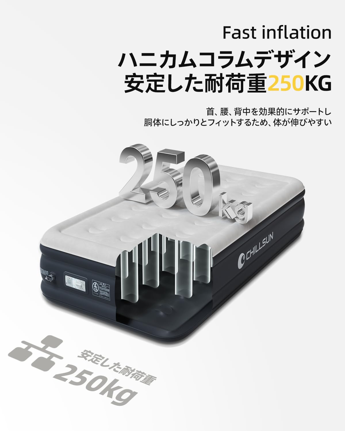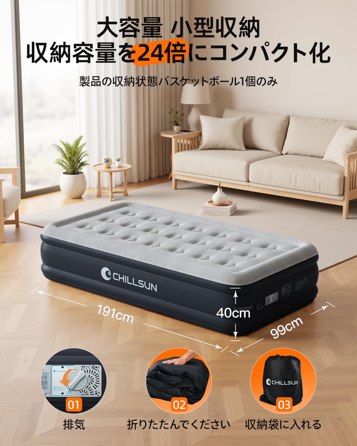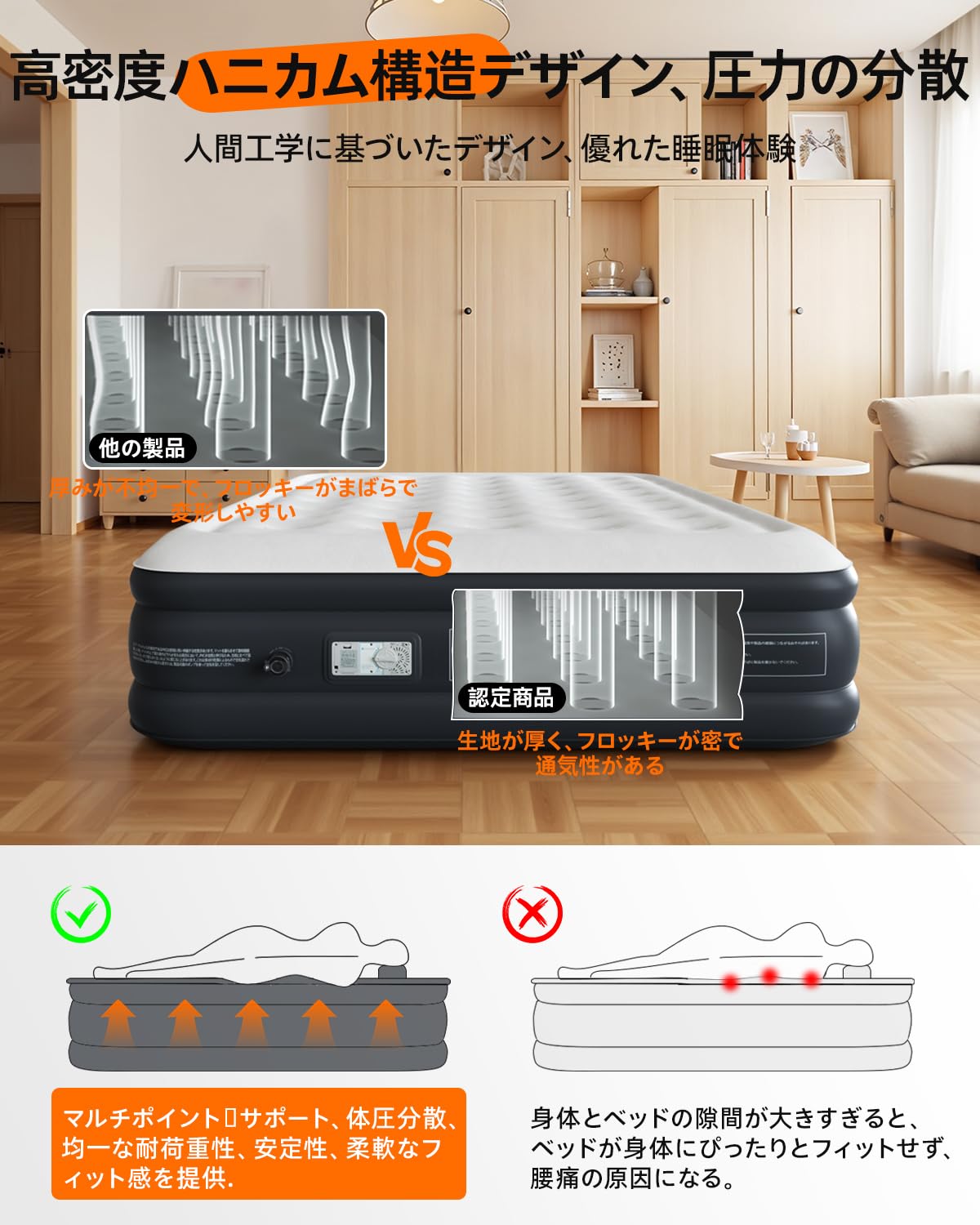 Kotesoto 電動エアーベッド 電動ポンプ内蔵 来客用 200cm×152cm×40cm