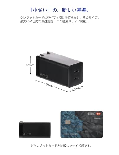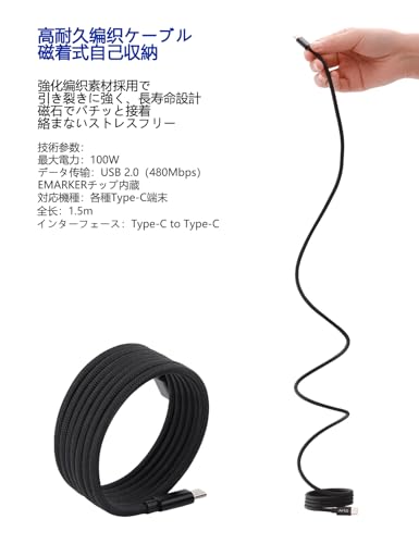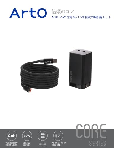 ArtO Core 65W 充電器+1.5m 磁吸式自巻きケーブルセット PD3.1/PPS対応 デュアルType-C iPhone17/16 SAMSUNG/HUAWEI/Xiaomi/MacBook対応 急速充電 折りたたみプラグ (black)