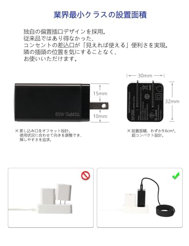 HP 用 acアダプター タイプc パソコン 充電器 65W 折り畳み式 ノートPC用 ACアダプター 65W PD Type-C充電器 対応 HP EliteBook/Chromebook/Spectre/ProBook/Envy/Elite x2 Lenovo Dell MacBook Dynabook 富士通 VAIO ノートパソコン互換 (黒)