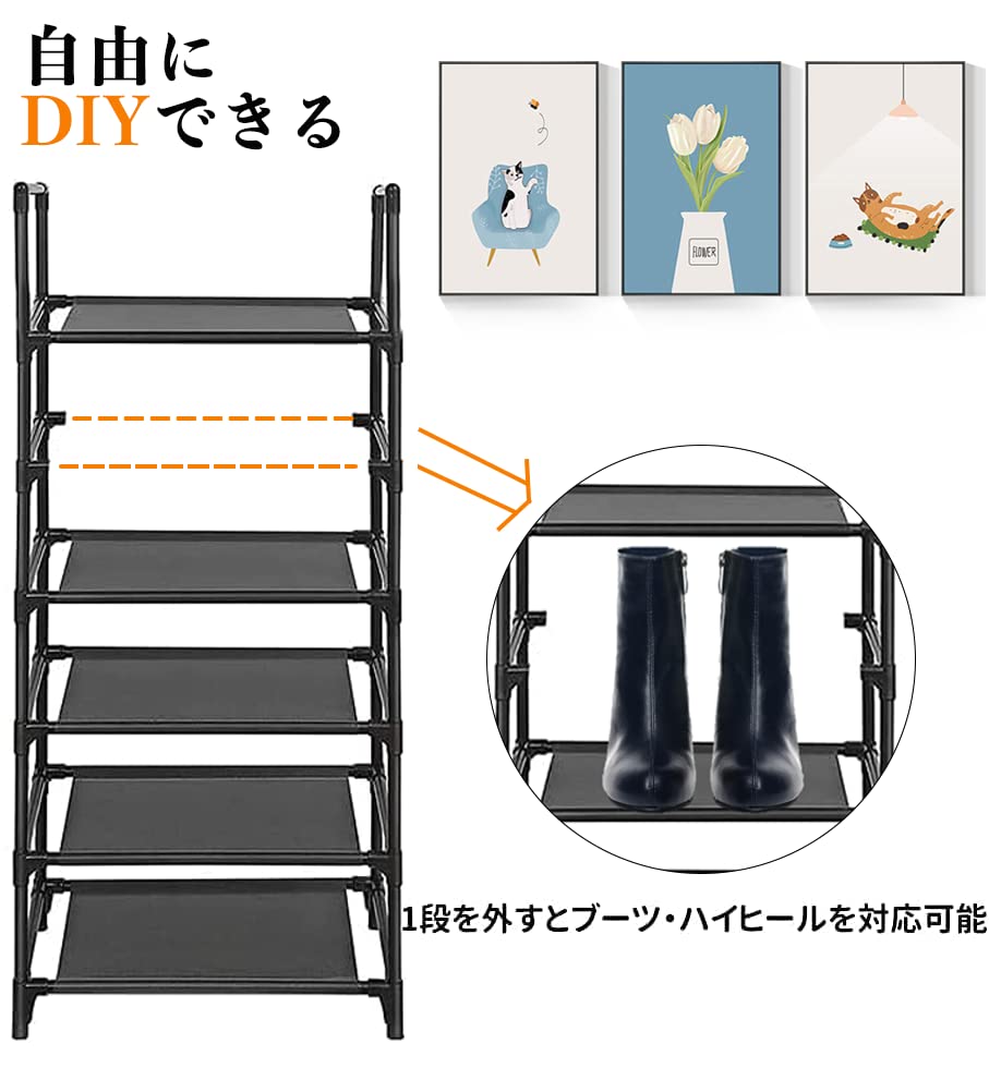 APICIZON シューズラック 8段 靴箱 下駄箱 シューズラック スリム 靴 収納 省スペース 靴棚 玄関 シューズケース シューズボックス 靴入れ 靴ラック 組み立て簡単(8段 ブラック)