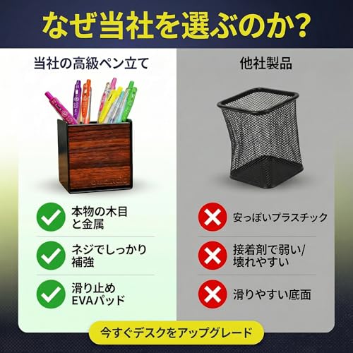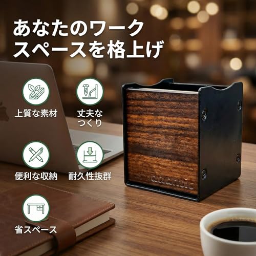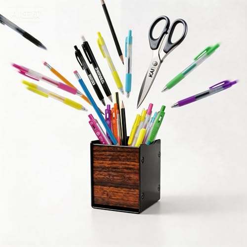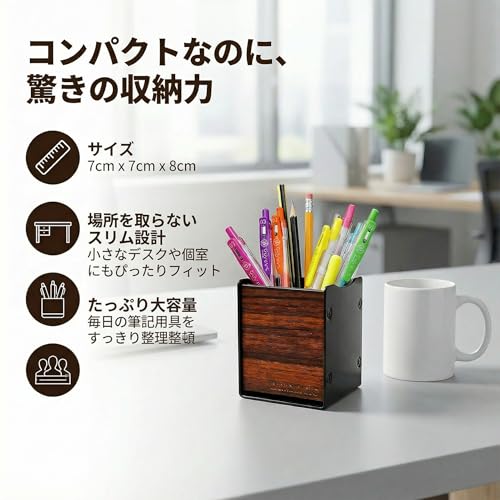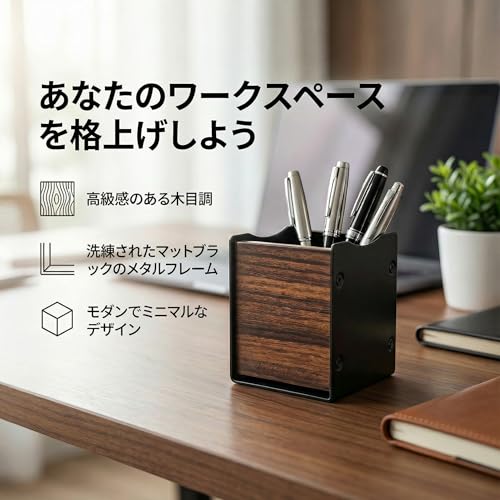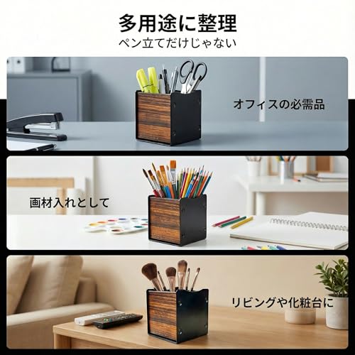 Bitzeペンスタンド ペン立て 鉛筆立て オフィス デスクトップ 高強度炭素鋼製 木目調塗装 卓上収納