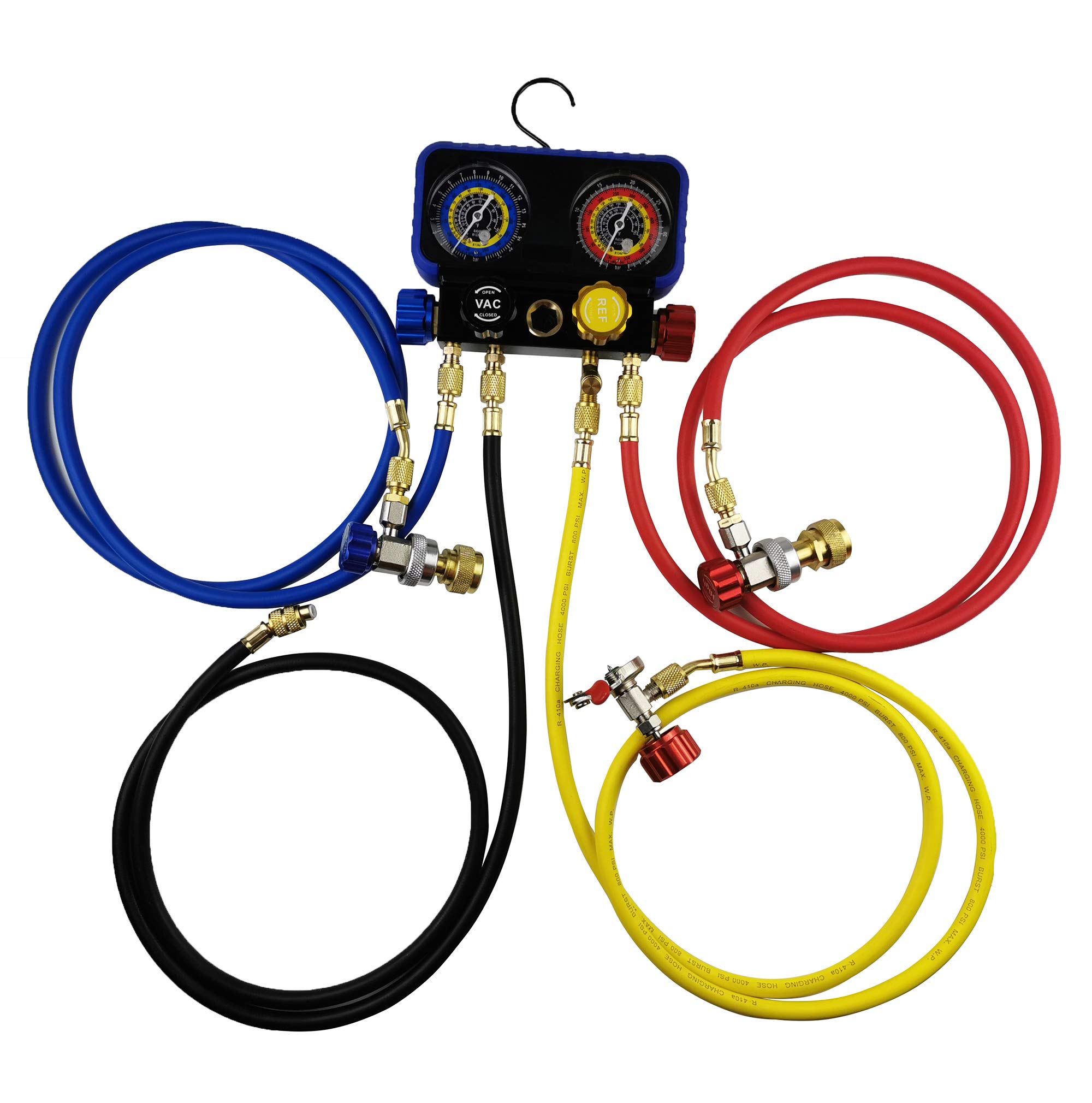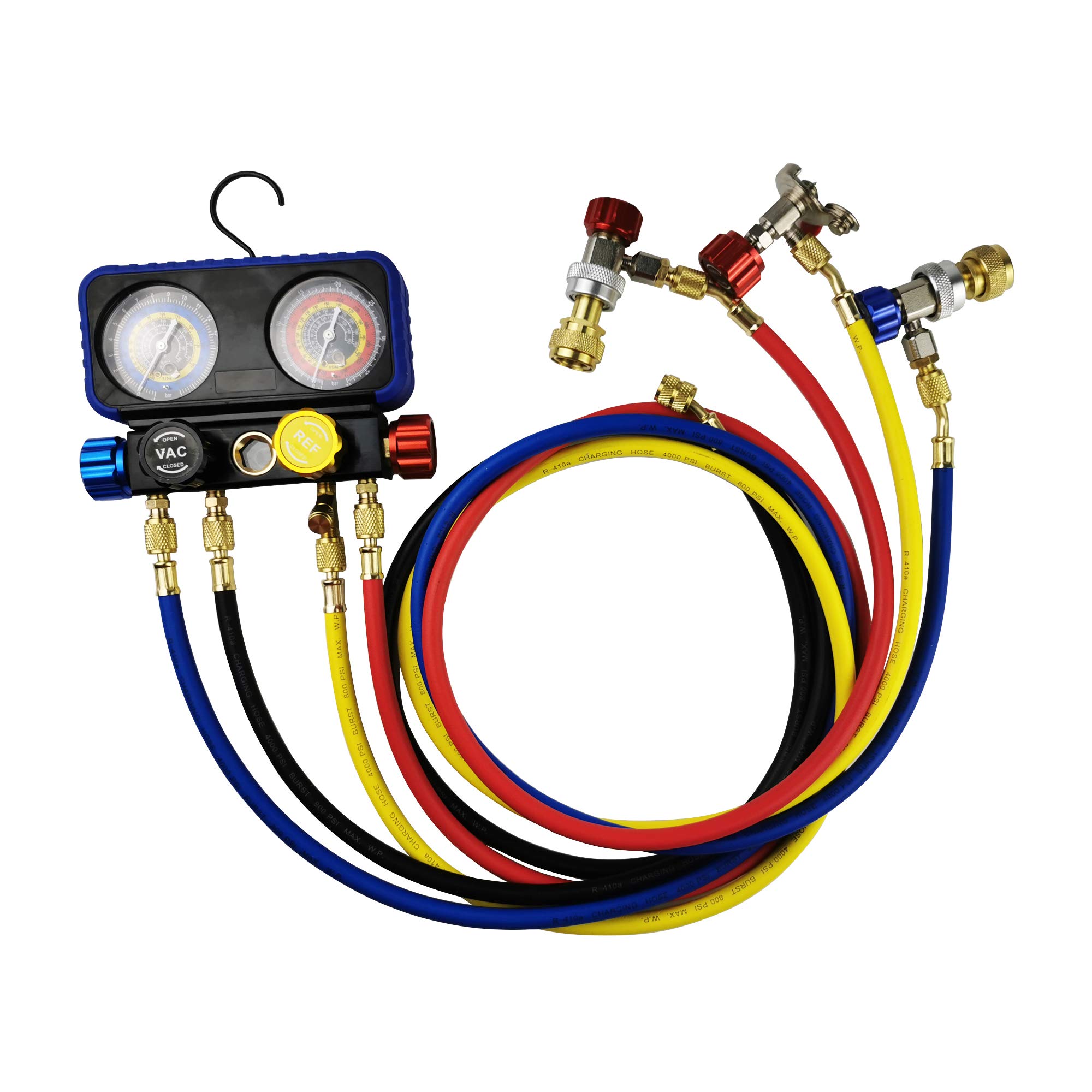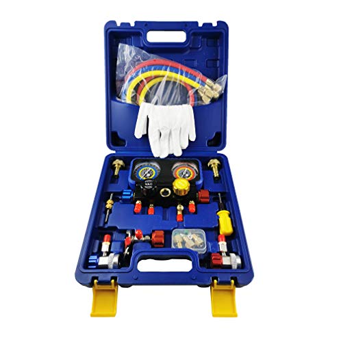 Wisepick エアコンマニホールドゲージセット、R1234yf R134A ゲージセット、R1234yf R134A および R404A 冷媒対応 4 バルブマニホールドゲージ
