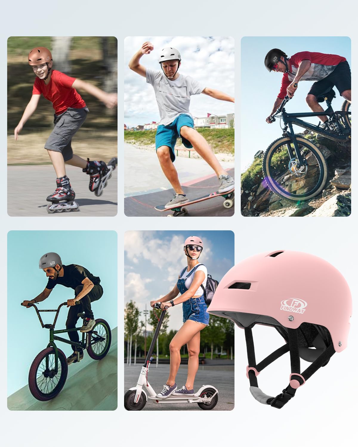 Findway 自転車 ヘルメット 子供 大人用 ヘルメット 自転車 スポーツヘルメット CPSC規格 ASTM規格 CE安全規格 軽量 通気性 2セット衝撃吸収ライナー 洗濯可能 サイクリング 通学 スケートボード 運動 スケートボード 女の子 男の子 レーディズ メンズ