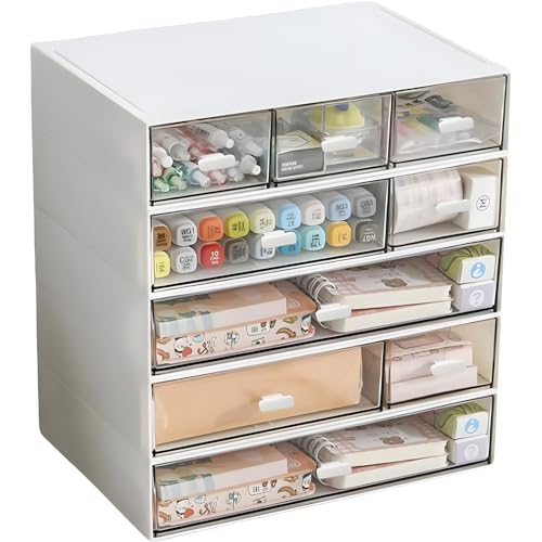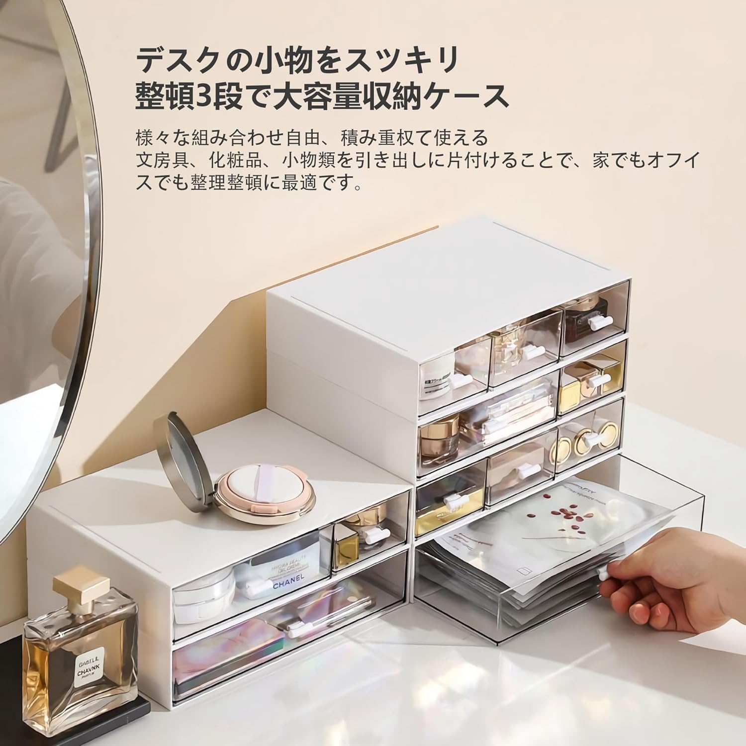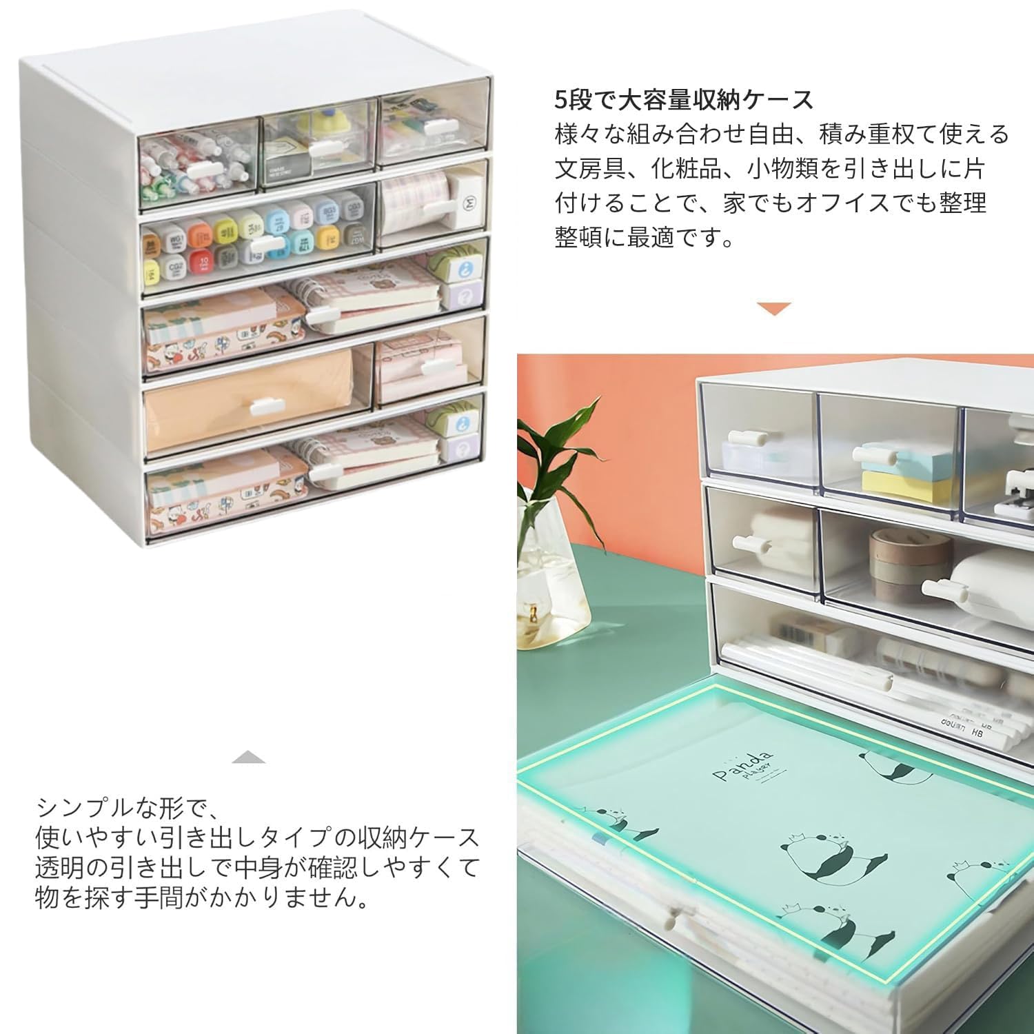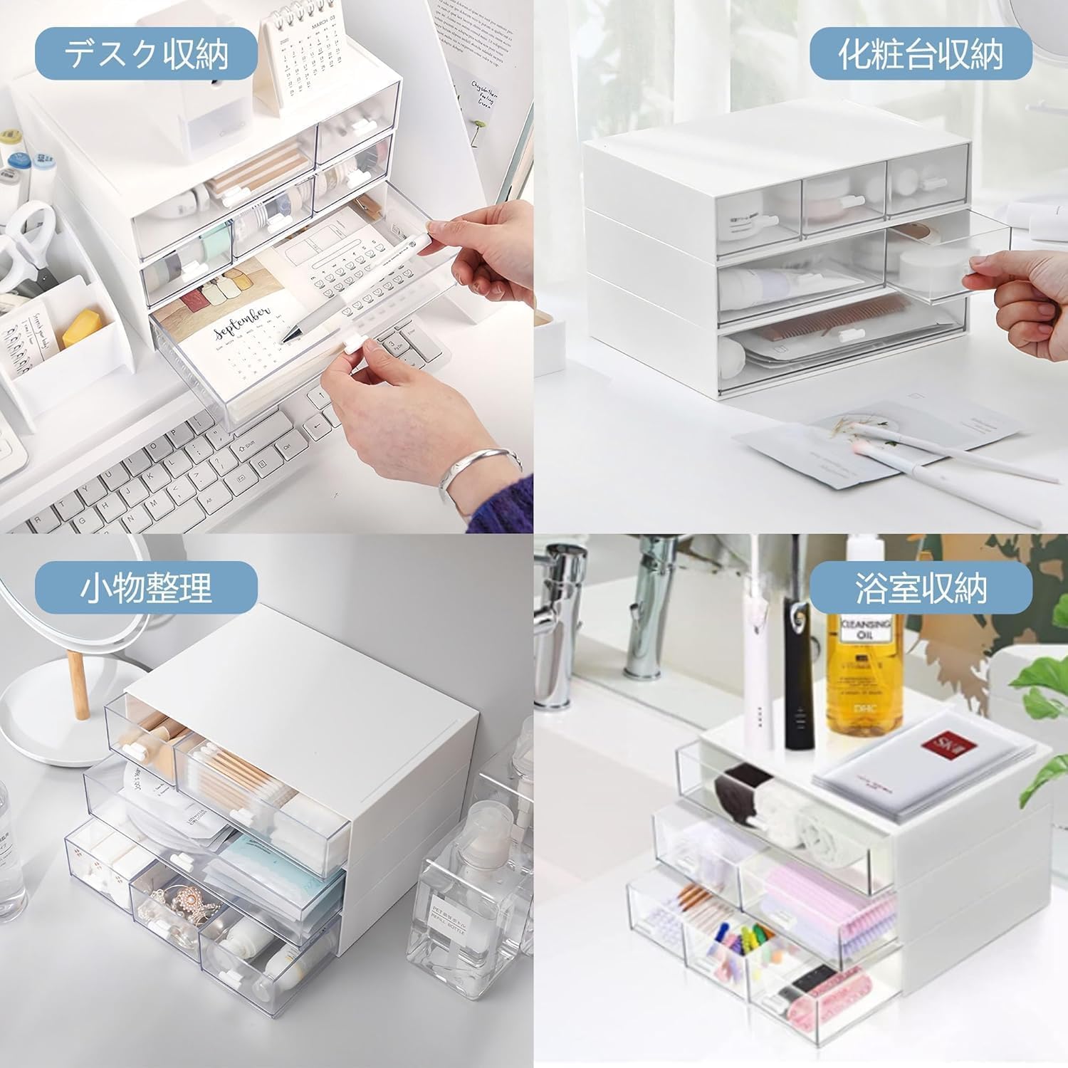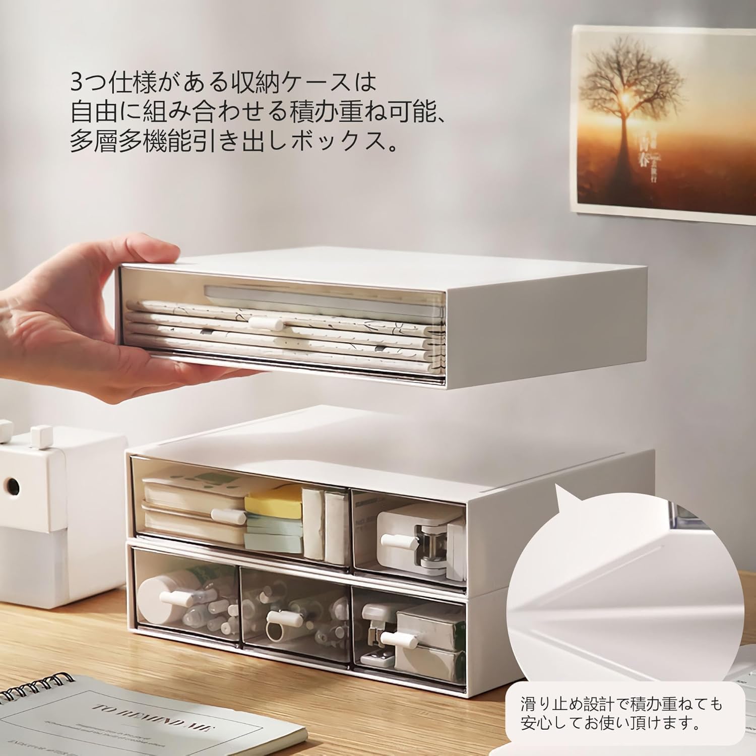JFAN簡繁 卓上収納ボックス 卓上小物入れ A5 引き出し式収納ボックス 文房具 化粧品収納ボックス 透明 積み重ね可能