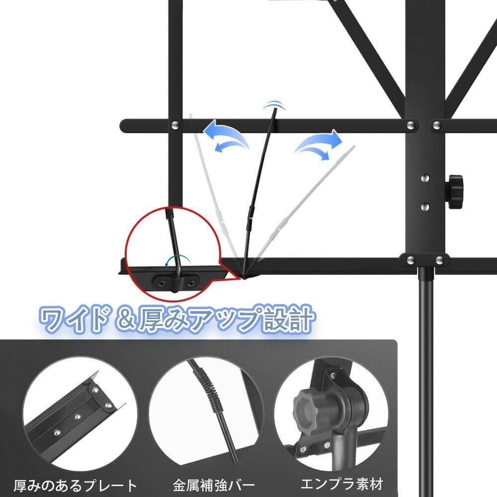 New Bee 譜面台 折りたたみ 楽譜スタンド 高さ70~135cm 調節可能 デスクトップスタンド 楽譜クリップと収納袋付 黒 MS21