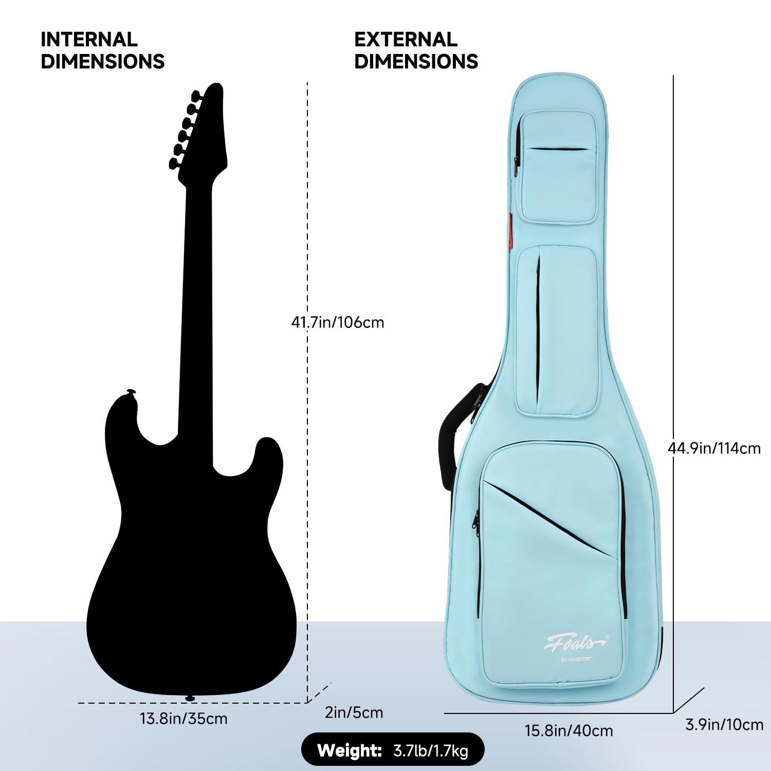 GHOSTFIRE カラフル ギターケース 超厚 耐衝撃 収納スペース付き ファントムシリーズ (ライトブルー/エレキギター)