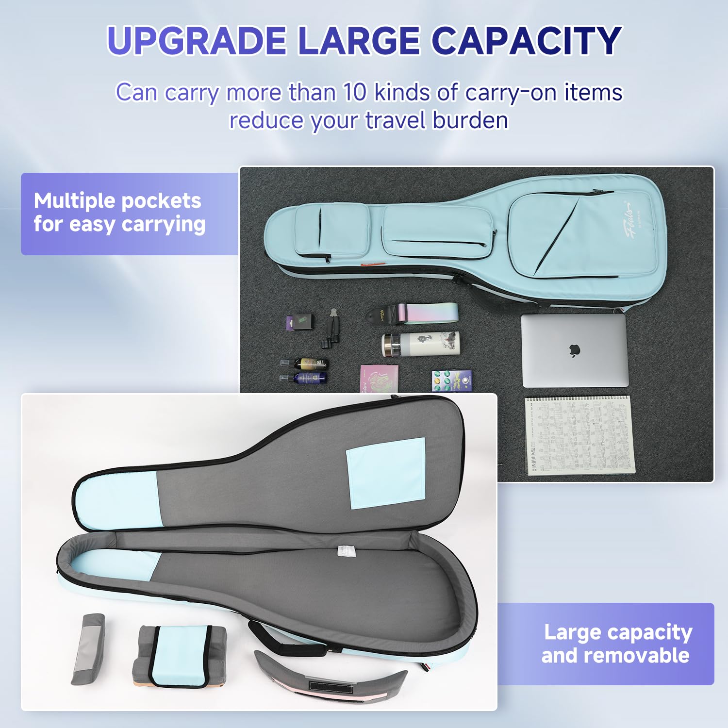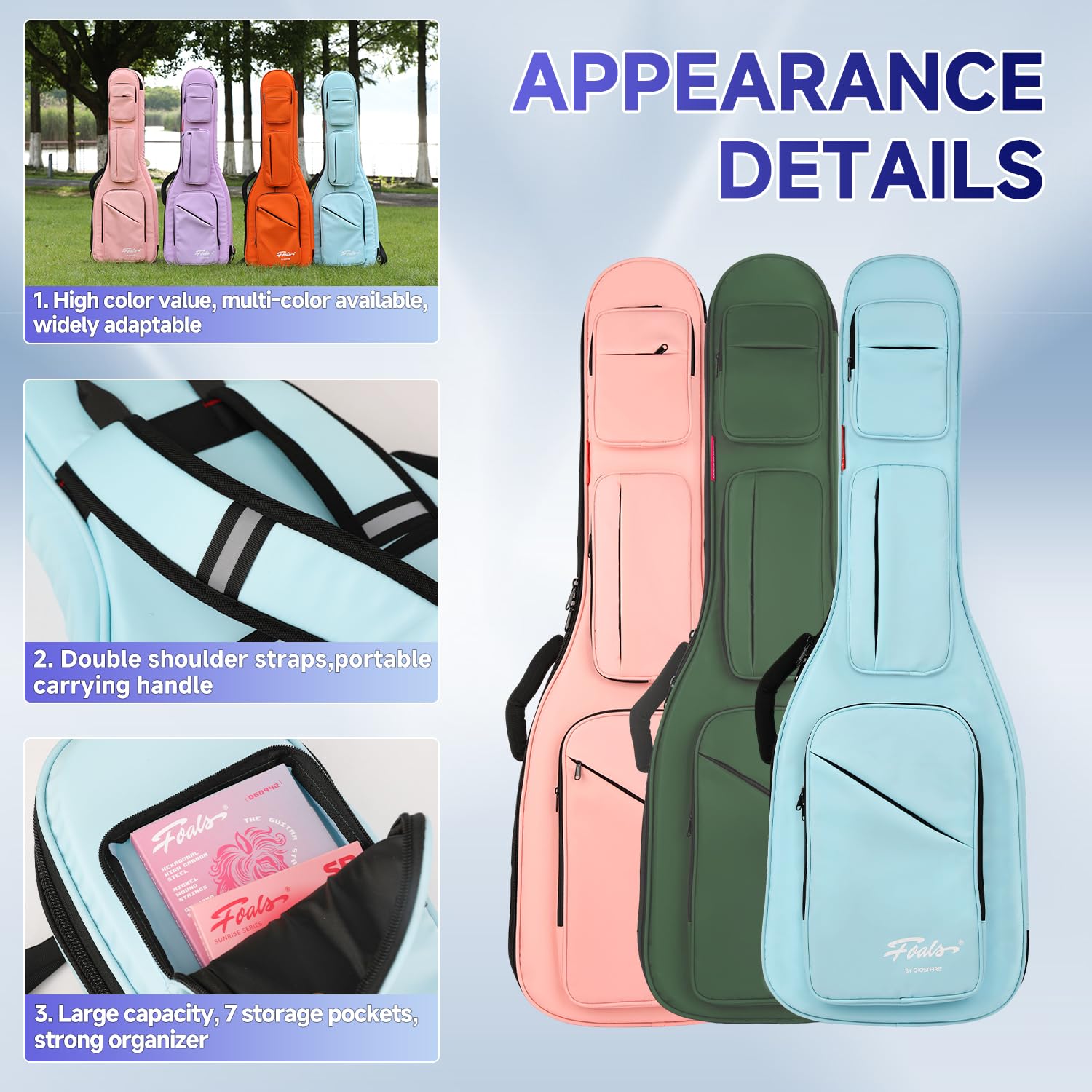 GHOSTFIRE カラフル ギターケース 超厚 耐衝撃 収納スペース付き ドリームバーブルシリーズ (ライトブルー, エレキギター)