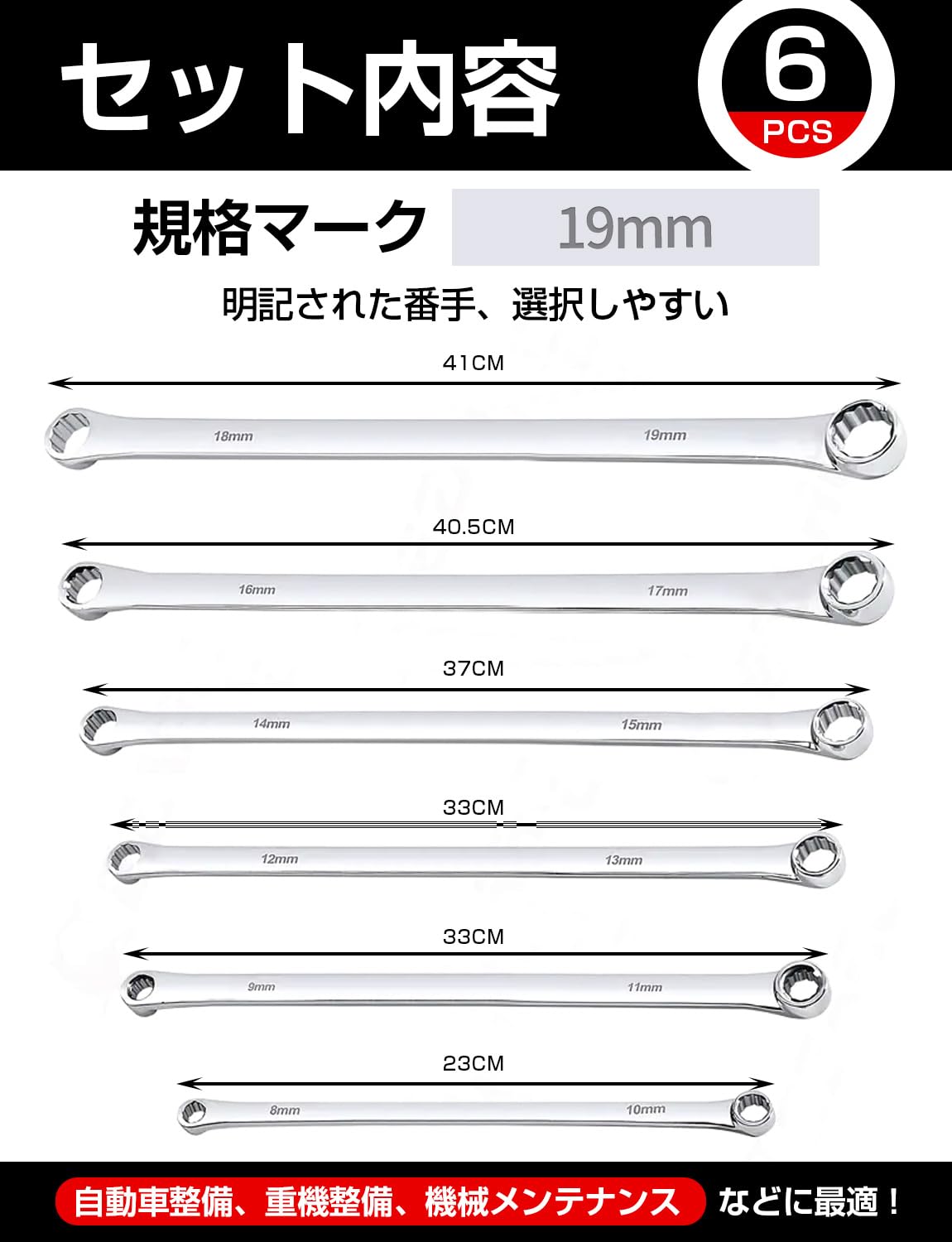 AOSEL メガネレンチ 超ロングストレート メガネレンチセット ミラー仕上げ 六本組 収納ケース付き