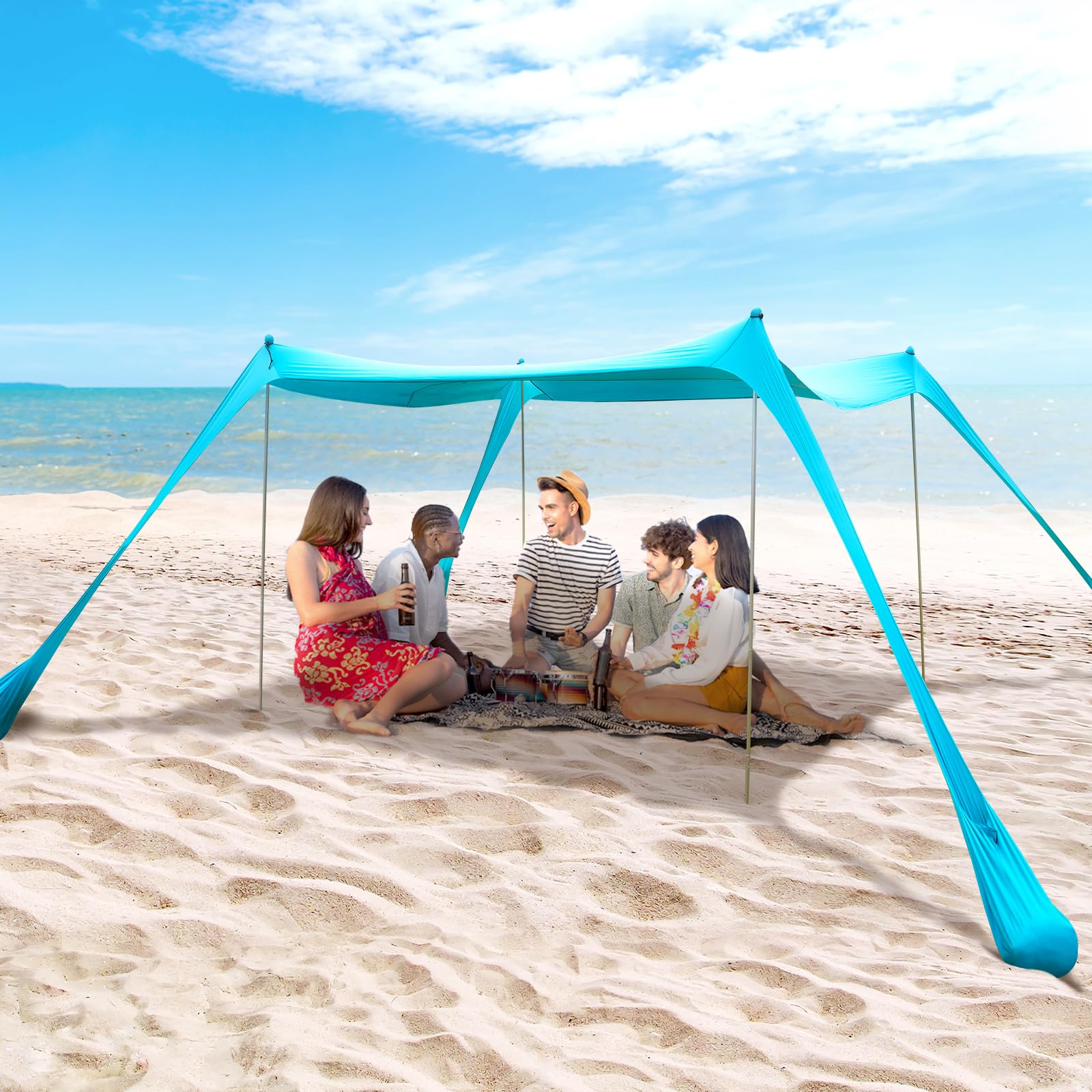 BOTINDO ファミリービーチテント キャノピー サンシェード ポップアップ グランデ ビーチテント サンシェルター 安定性 4極 ポータブルキャリーバッグ アウトドアシェード ビーチ釣り 裏庭 キャンプ ピクニック用