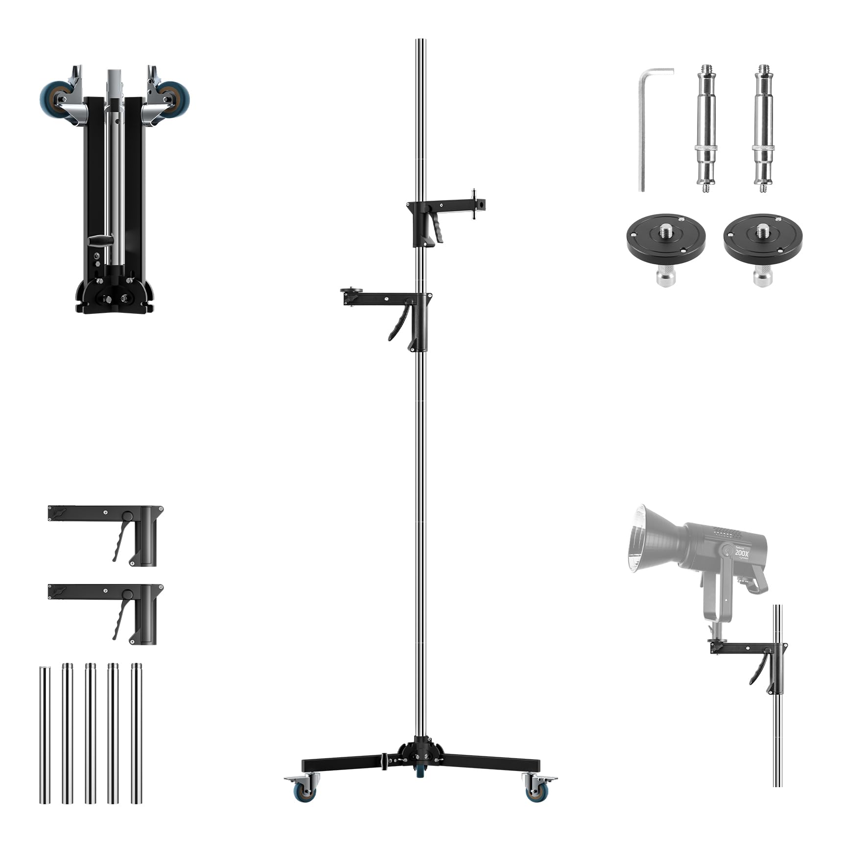 Selens ヘビーデューティライトスタンド 280cm ブームアーム両用設計 エアクッションタイプ 1/4と3/8ネジアダプター 高さ調整可能 角度変換 ソフトボックス スピートライト リフレクター アンブレラなど対応