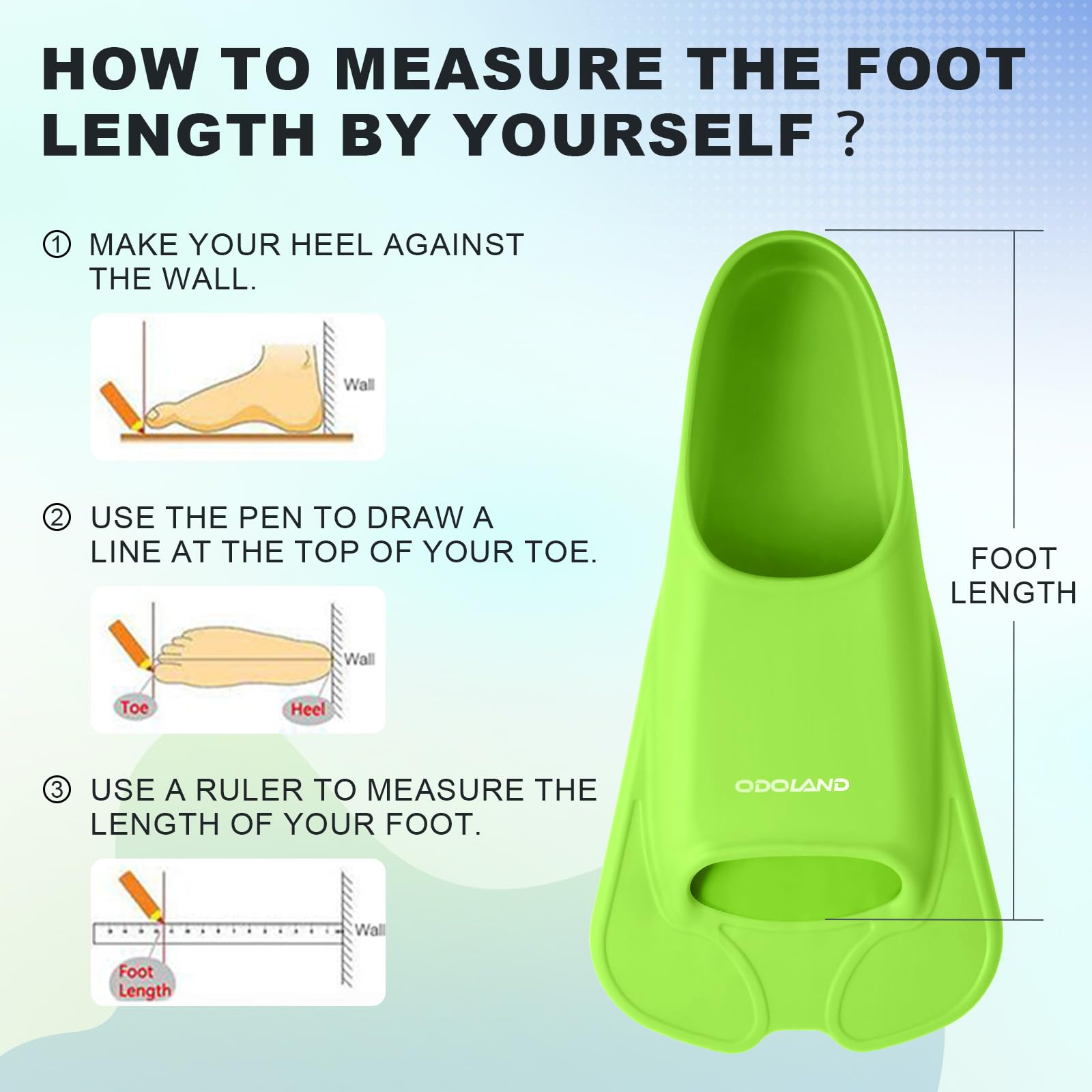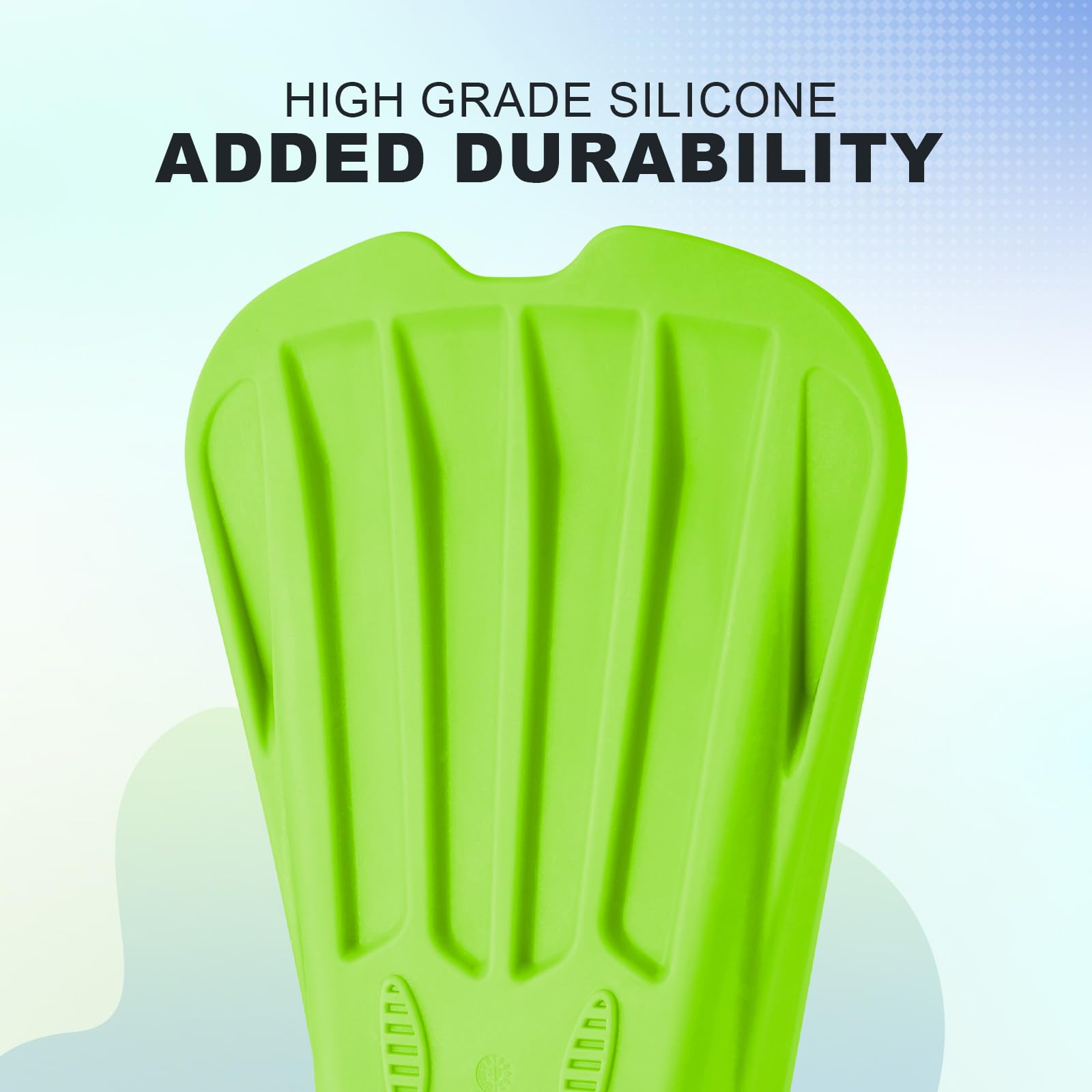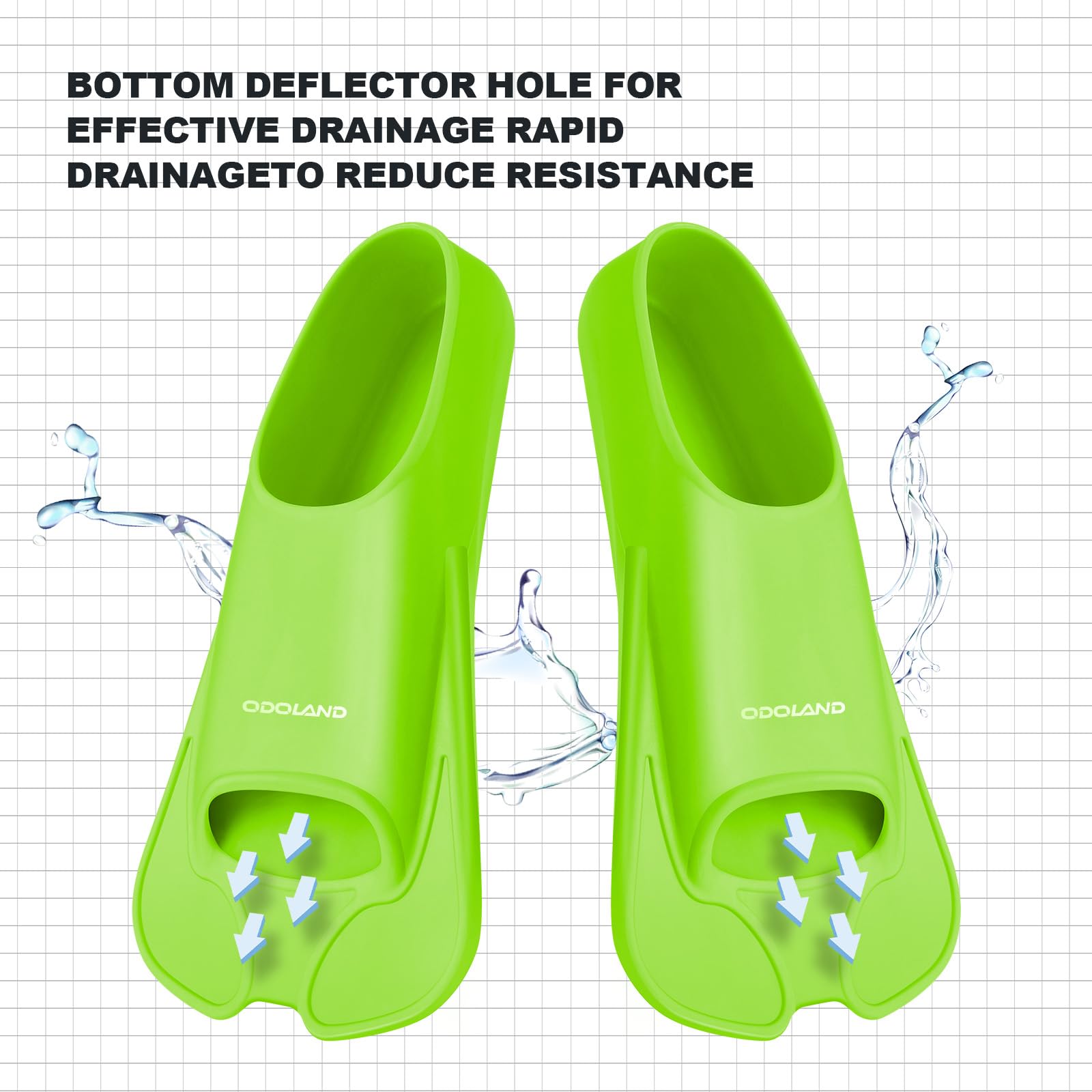 Odoland スイム フィン ダイビング トレーニング用 ショートフィン シリコンフィン シュノーケリング 水泳用 軽量 調節可能 ユニセックス 大人用(グリーンS)