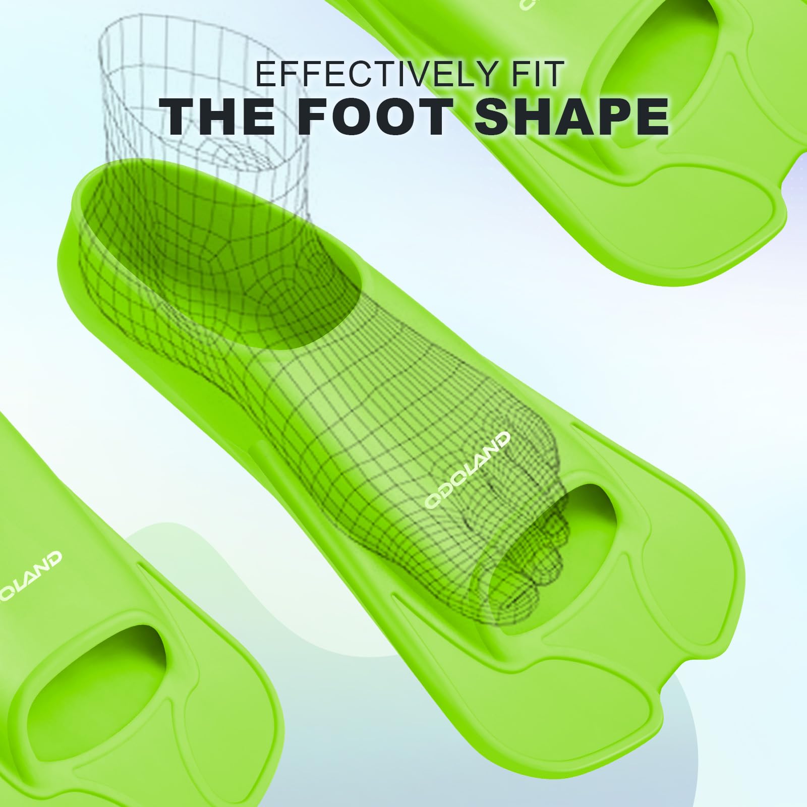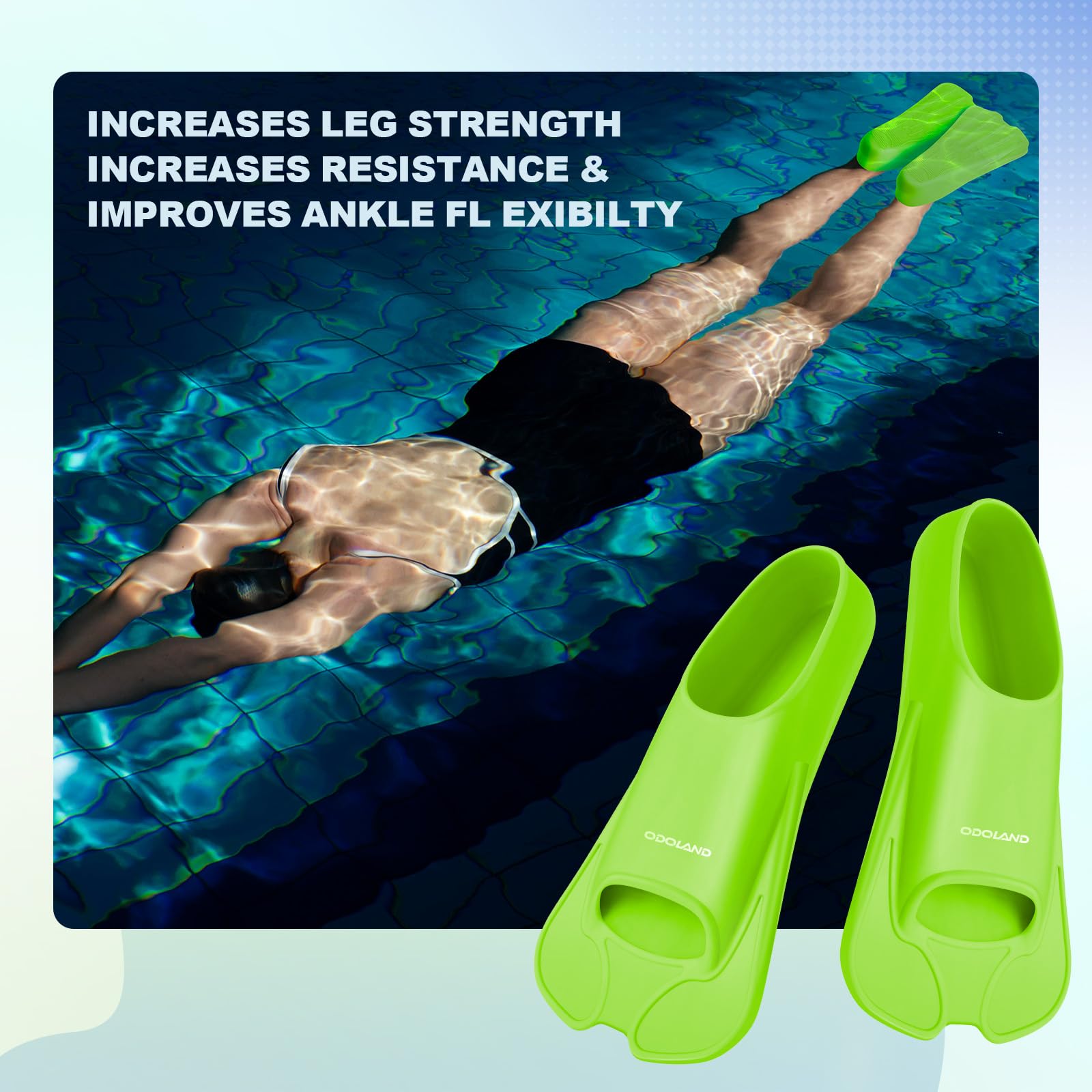 Odoland スイム フィン シュノーケリング フィン ショートブレード フルフット 調節可能 足ひて 足ヒレ 軽量 シリコンフィン ダイビング 水泳 トレーニングフィン 大人用(グリーンM)