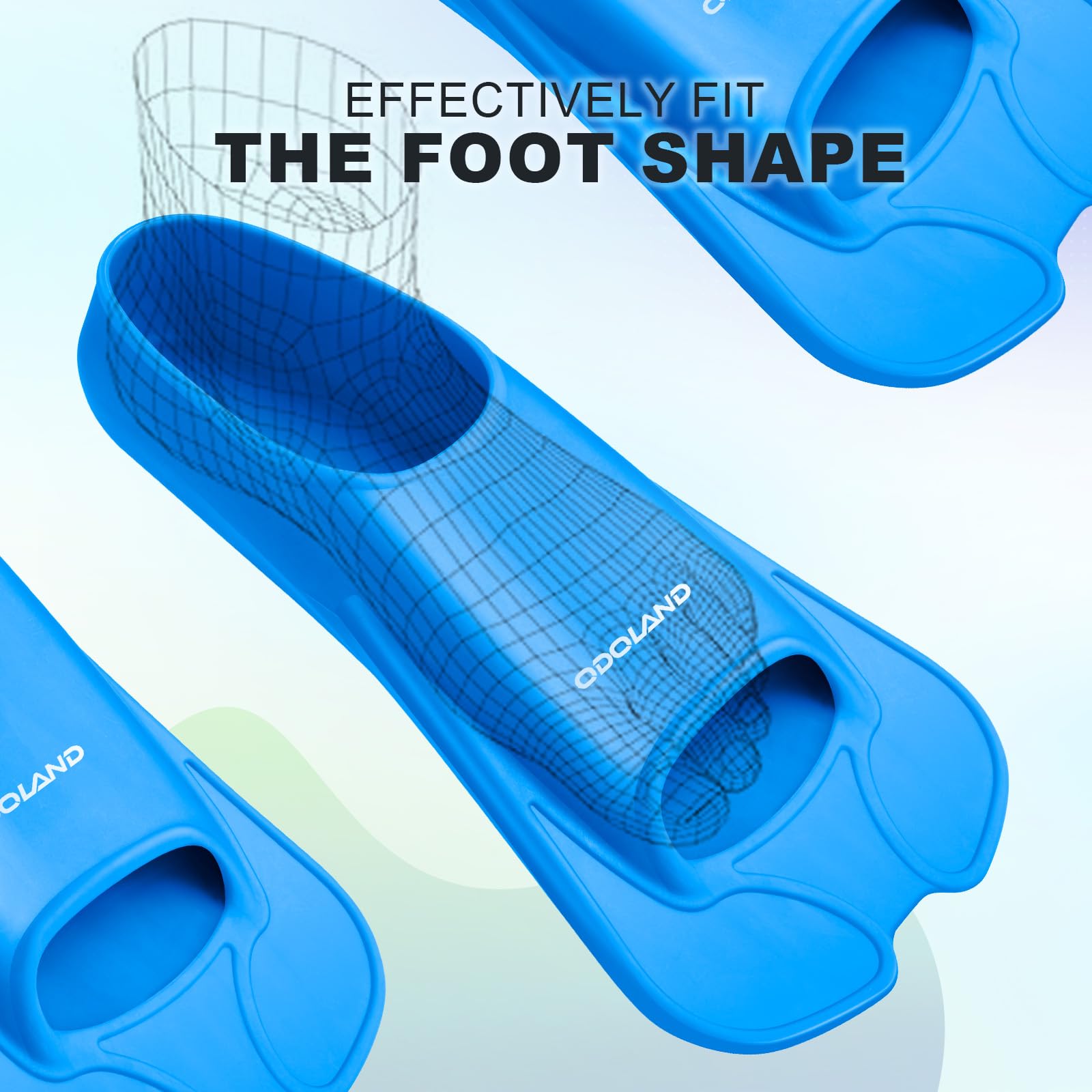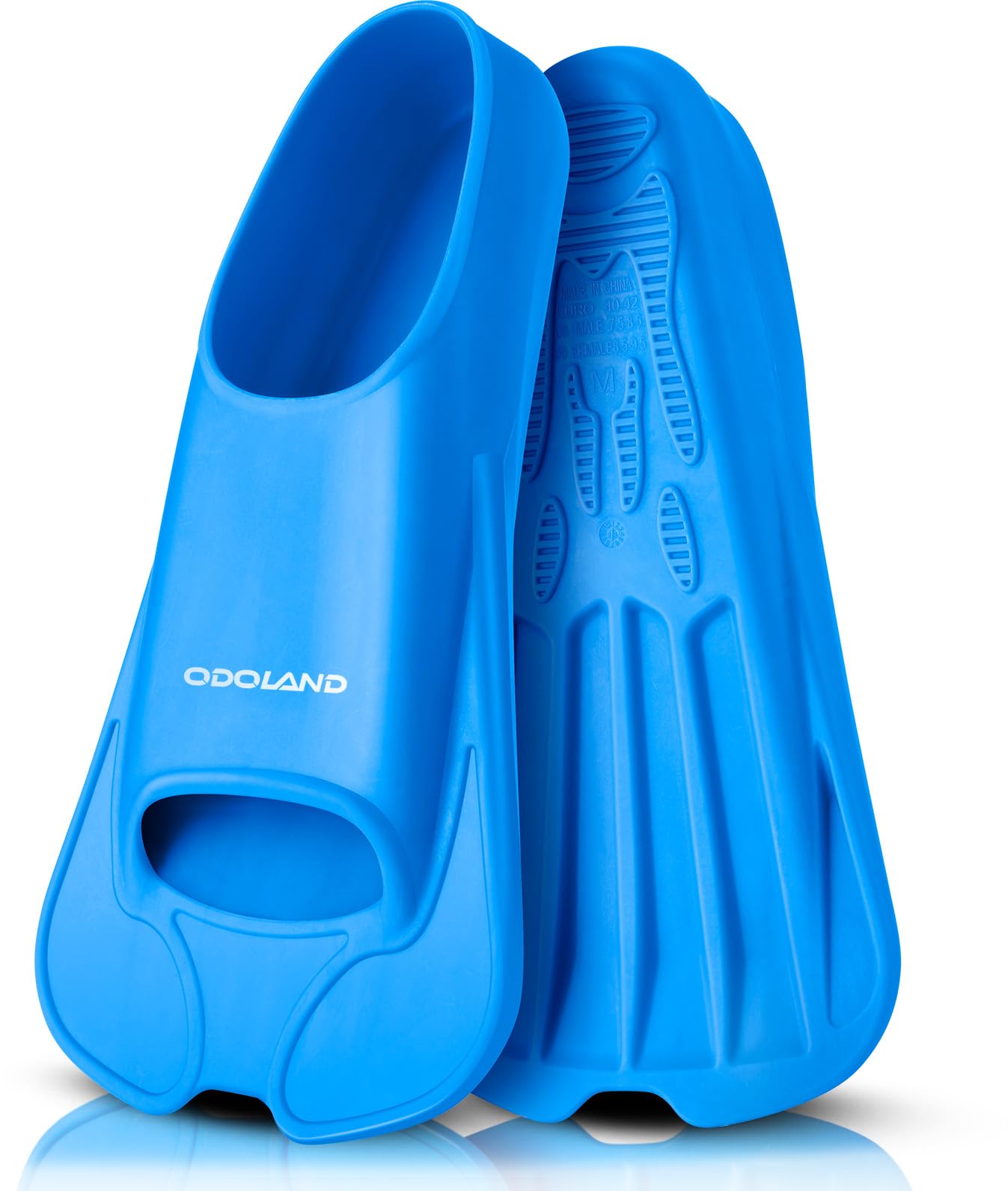 Odoland スイム フィン シュノーケリング フィン ショートブレード フルフット 調節可能 足ひて 足ヒレ 軽量 シリコン ダイビング 水泳 トレーニング 大人用(ブルーXL)