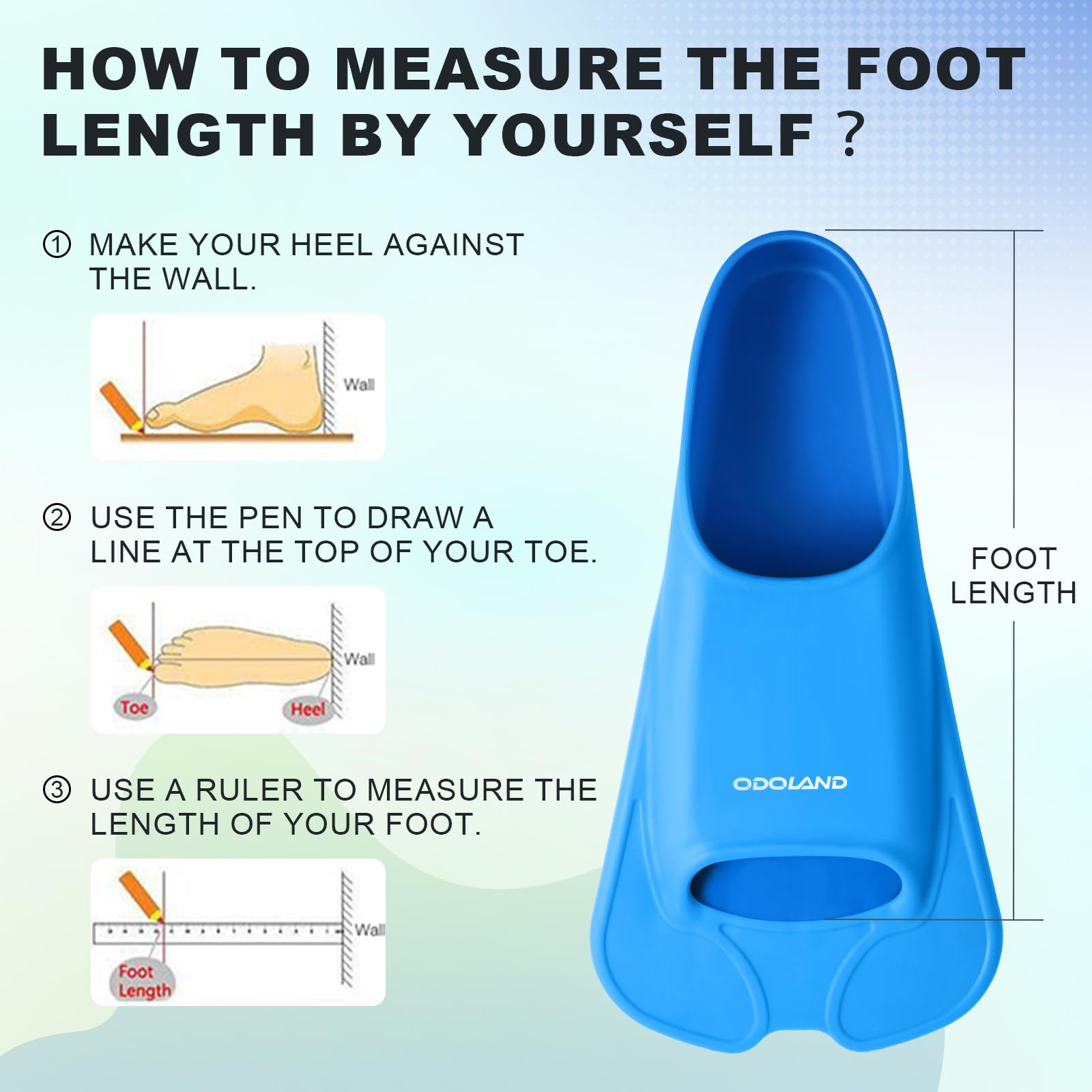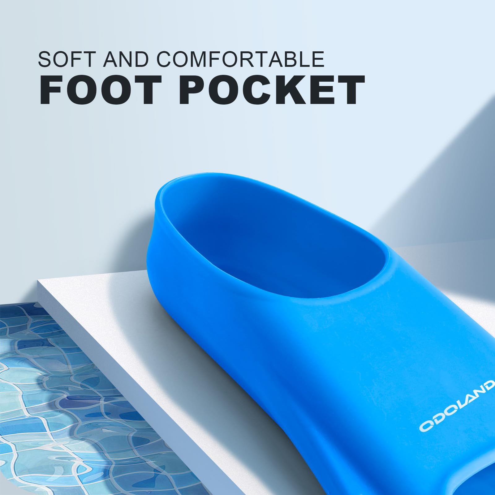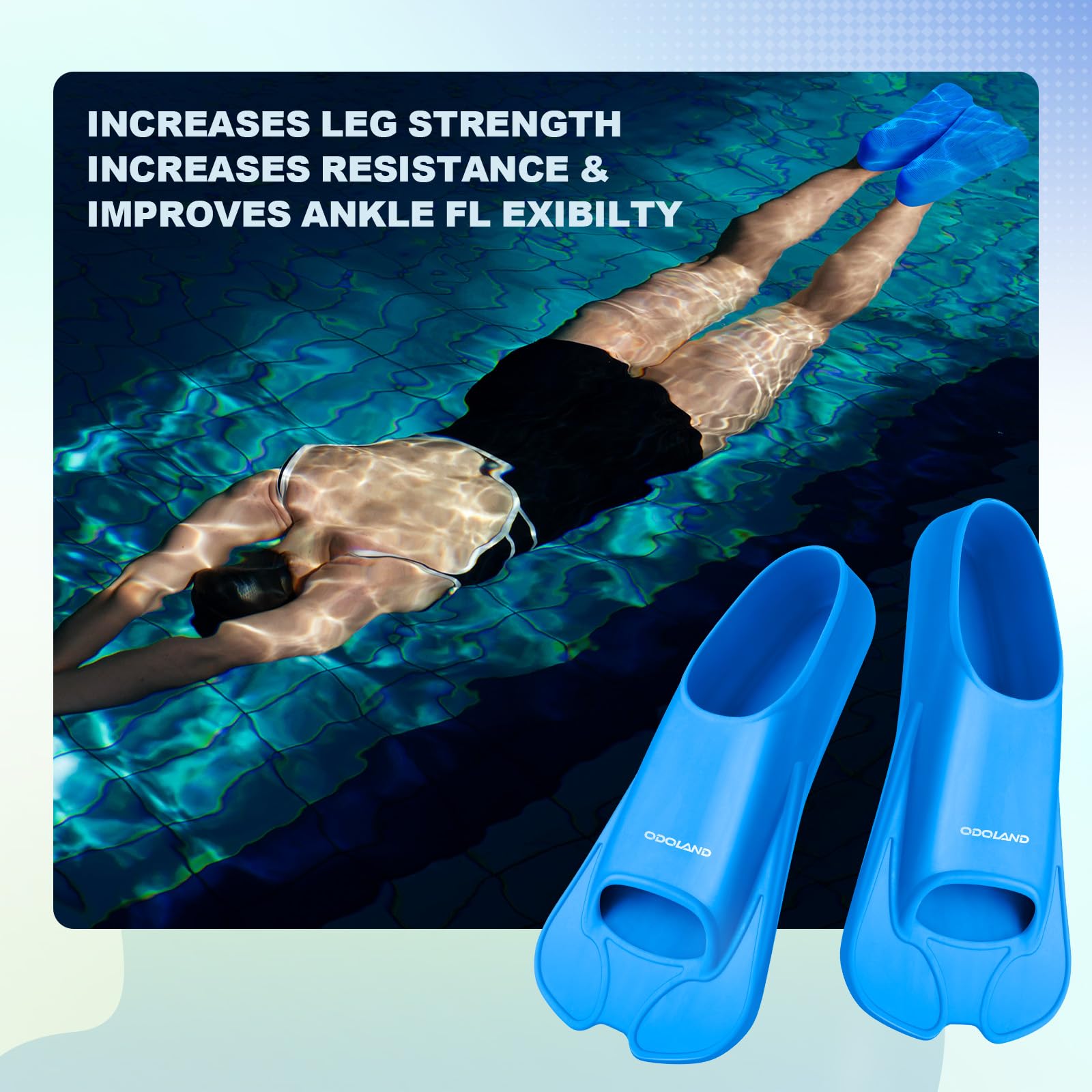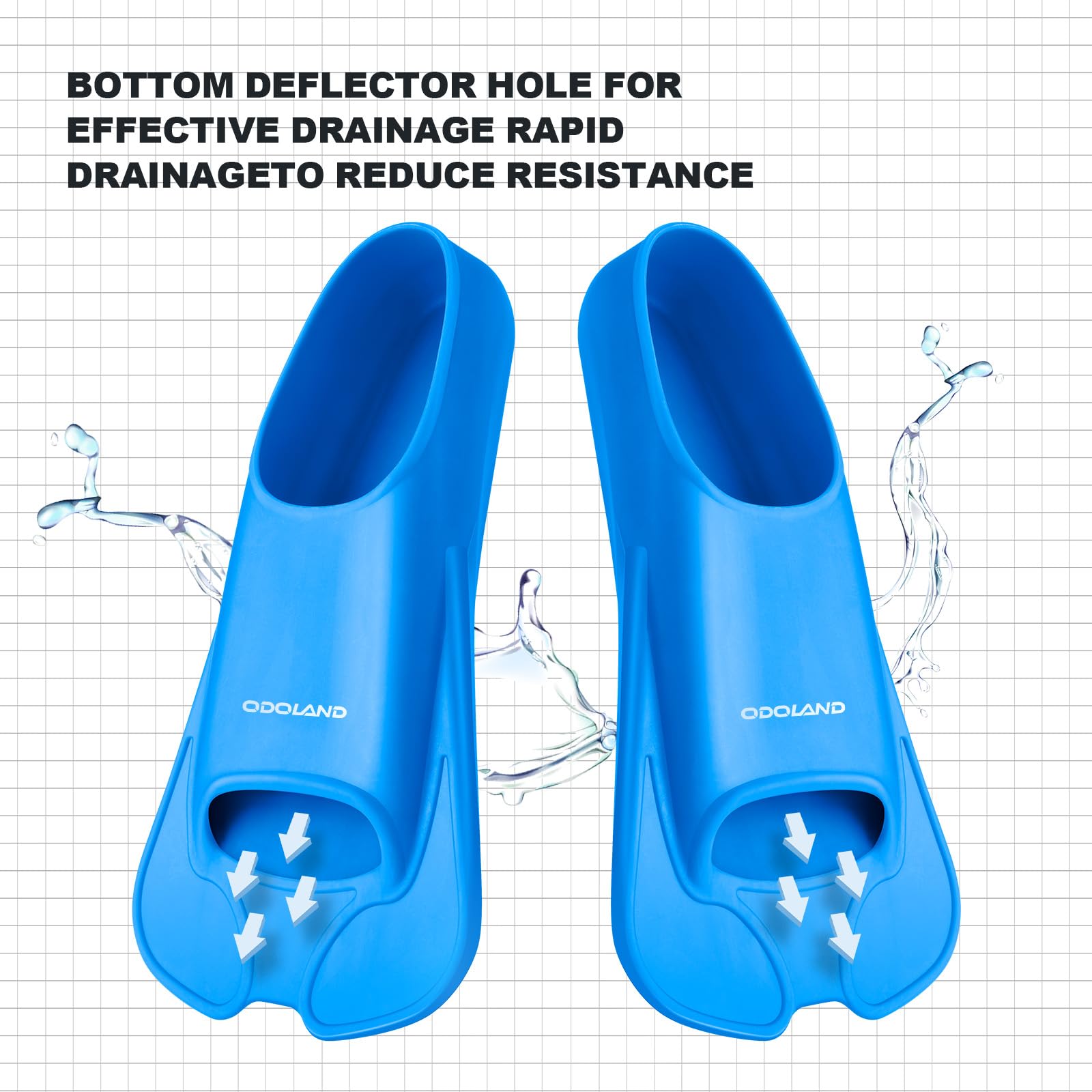 Odoland スイム フィン ダイビング トレーニング用 ショートフィン シリコンフィン シュノーケリング 水泳用 軽量 調節可能 ユニセックス 大人用(ブルーS)
