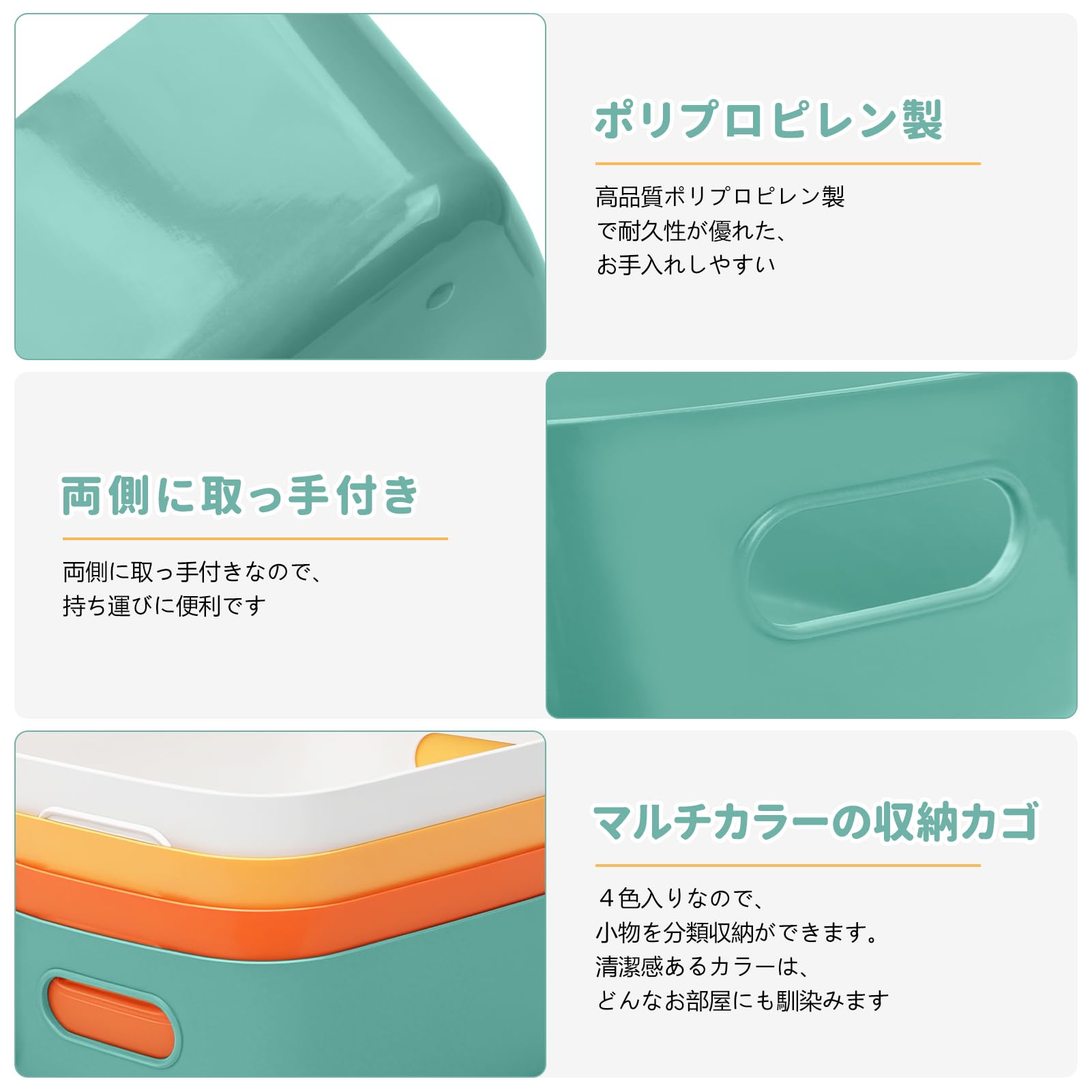 RAIN QUEEN 収納ボックス 小物入れケース 白 収納ケース プラスチック ポリプロピレンケース 収納カゴ 収納バスケット ホワイト 8個セット 雑貨整理 卓上収納 取っ手付き 小物 整理整頓 衣類収納 卓上収納 クローゼット 押入れ/洗面所/リビング/キッチン収納
