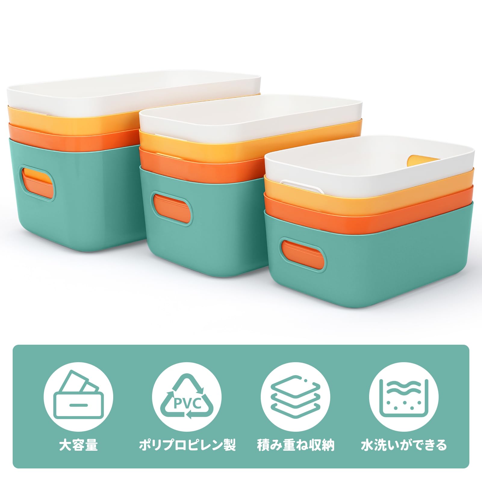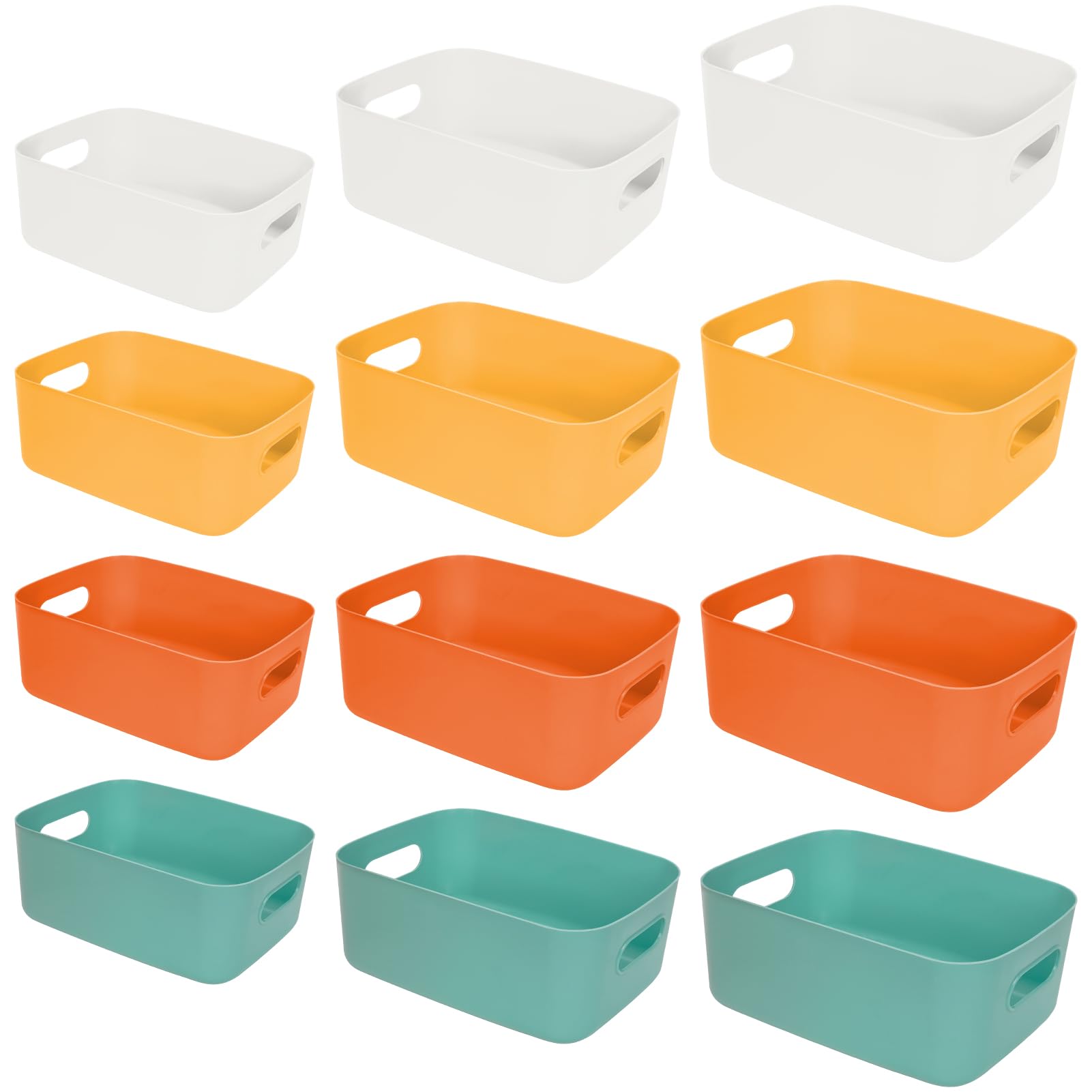 QYONLINE 収納カゴ 白 収納ボックス 小物入れケース ポリプロピレンケース 12個セット 収納バスケット 卓上収納ケース グレー 取っ手付き 小物 整理整頓 キッチン収納 押入れ収納